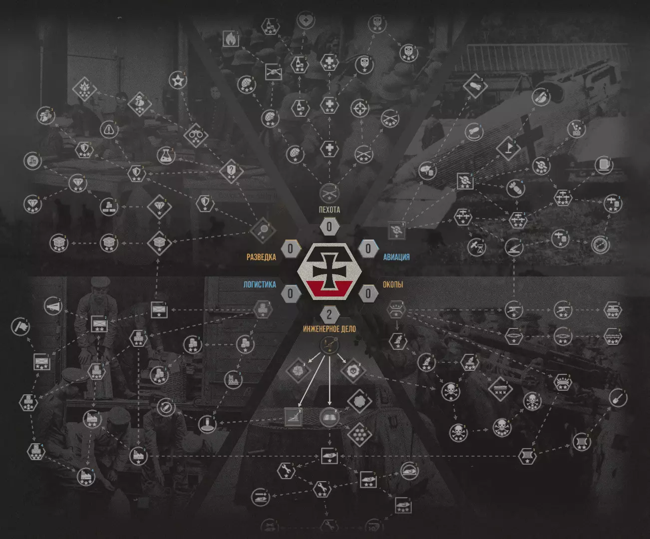 工程学 这是一个非常有趣且实用的部分,在战争的各个阶段——从开始到结束都至关重要。它能显著提升炮兵实力,甚至能召唤钢铁巨兽投入战斗!在我看来,这是进行战争最重要的部分之一。 炮兵 目前有几项增强炮兵的改进。它们是后续升级所必需的,因此应该优先选择它们。坦克 这是游戏的后期阶段。坦克是步兵的强大支援力量——它们能够承受巨大伤害并对敌人造成巨额伤害。是进攻的绝佳工具。 技能 技能指的是各种类型的炮兵弹药:烟雾弹、毒气弹等。在不同情况下非常有用。至少可以使用烟雾,这样你的部队就能更少地受到机枪和敌方步兵的伤害。 攻城 artillery(攻城火炮)是一种具有情境性的装备,但如果使用得当,可能会非常有用。它能够严重破坏敌方防御工事,不过需要大量的资源和补给。