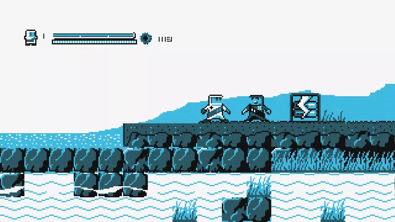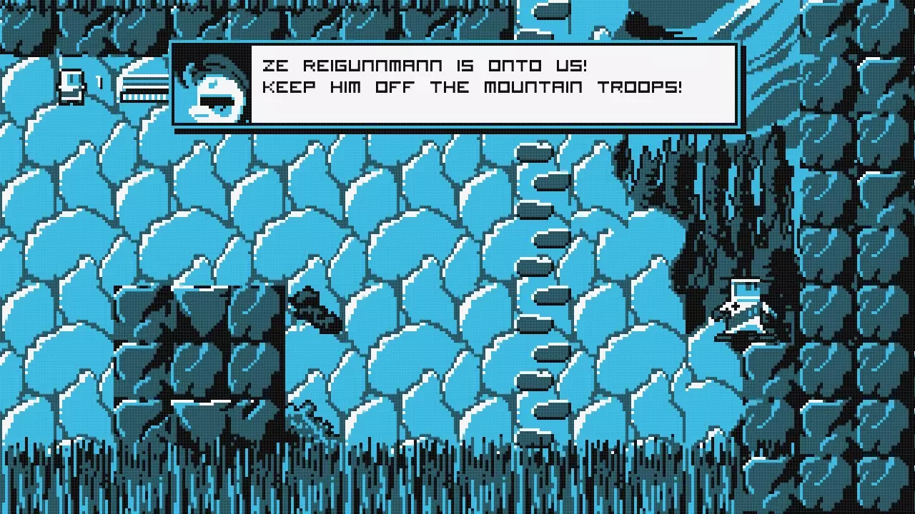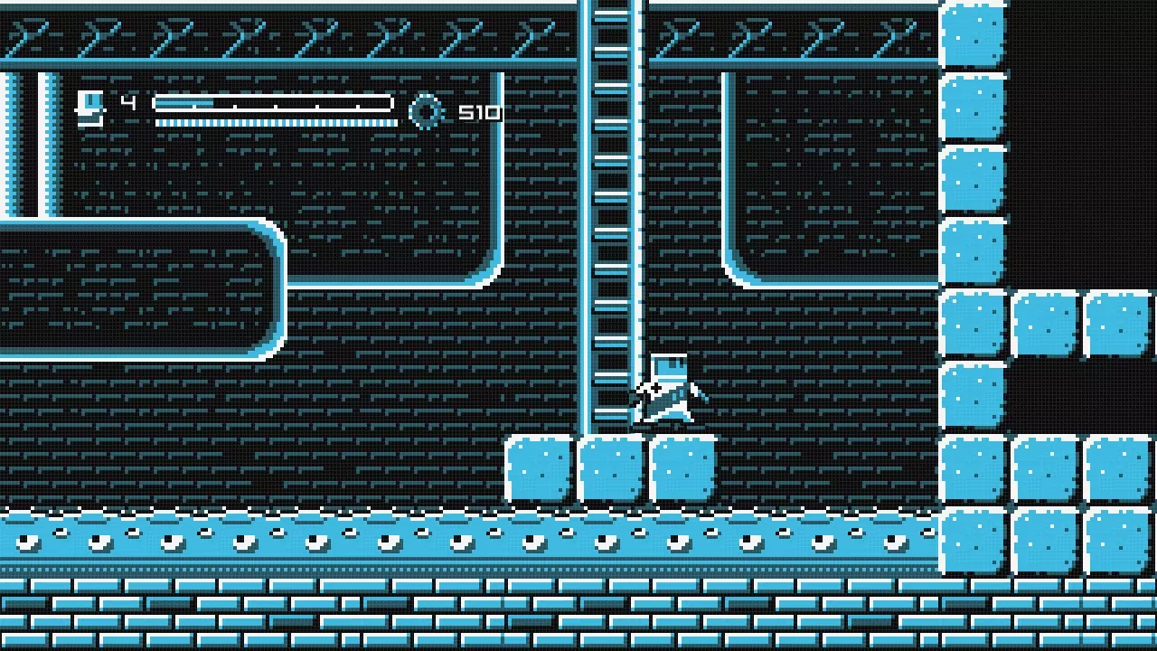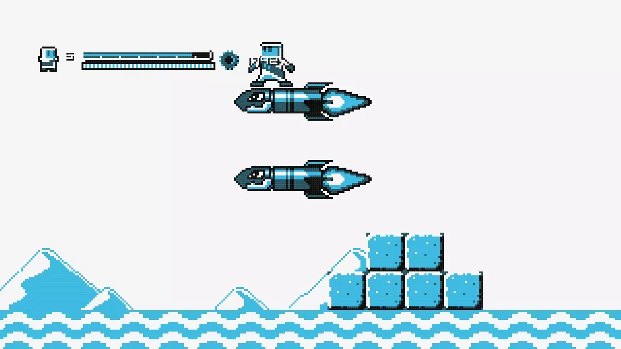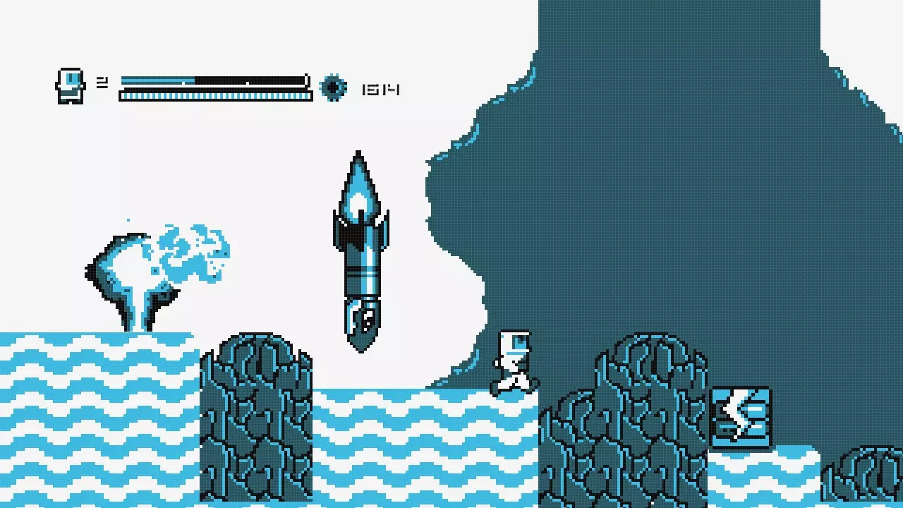 向右走直到你到达火箭处,乘坐火箭向左移动,直到你抵达一堵可以跳过的墙。