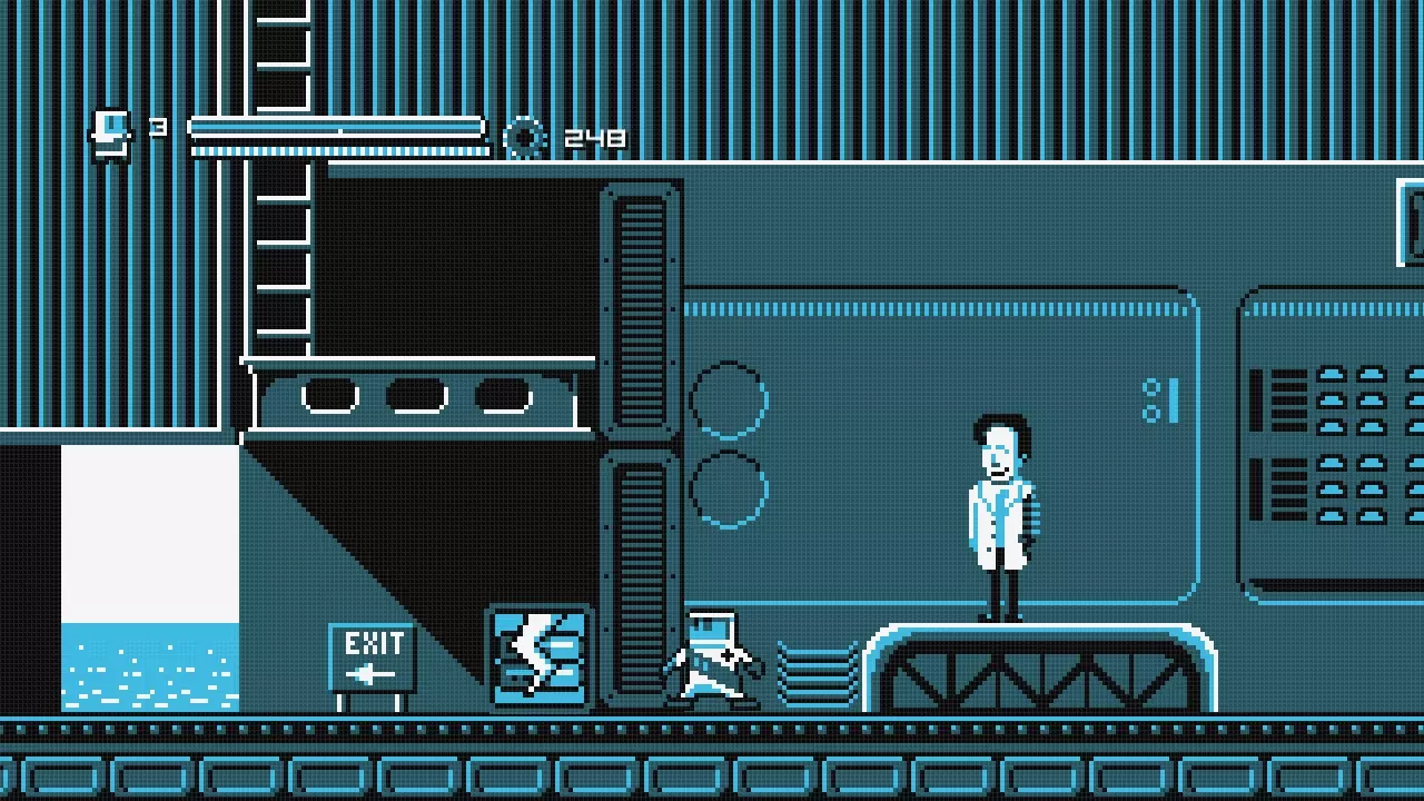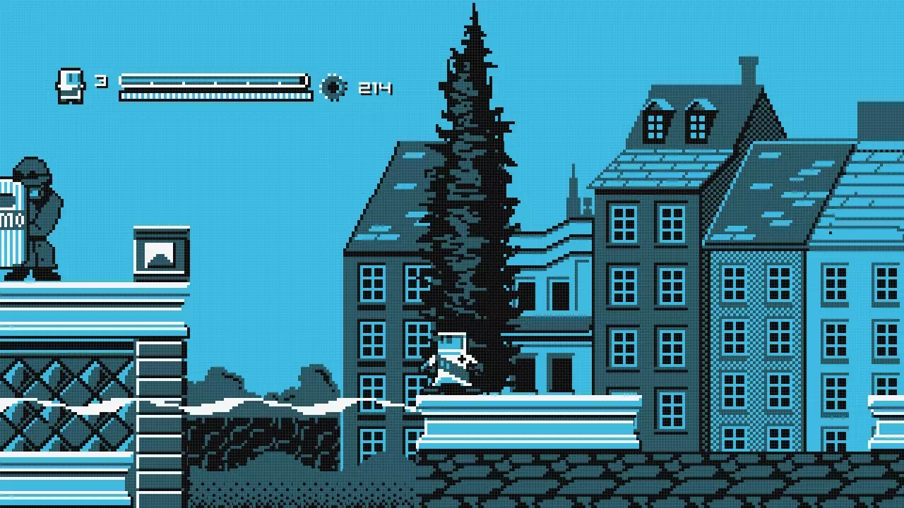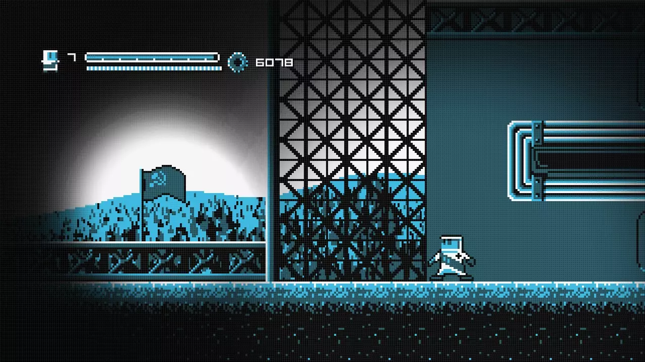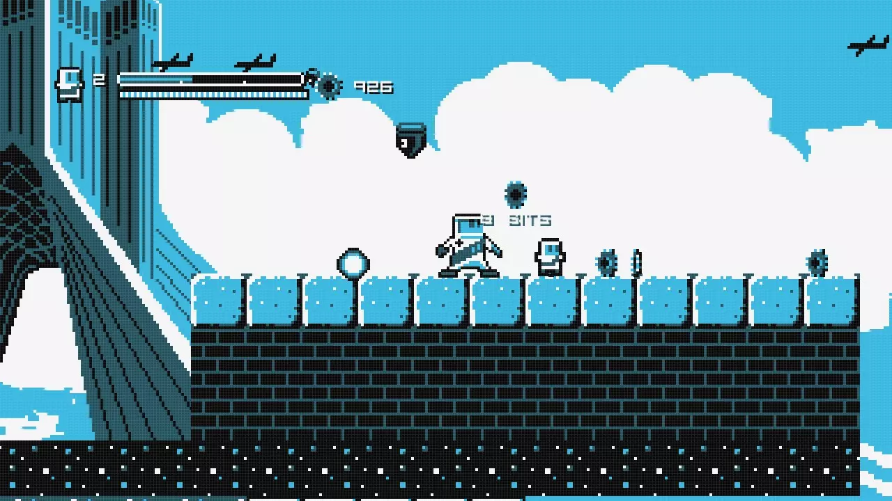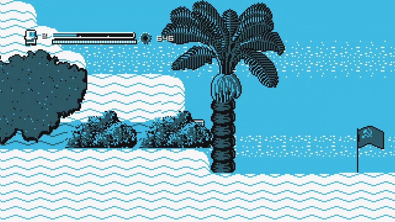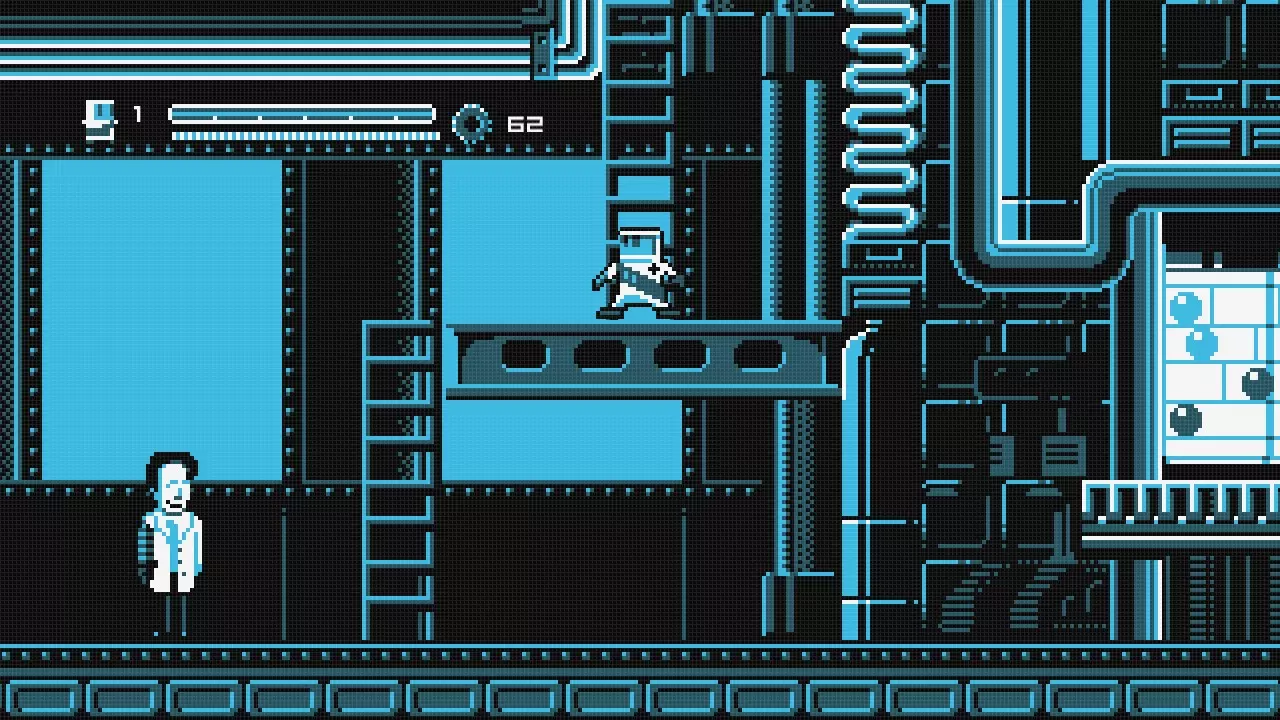 向右走直到你到达火箭处,乘坐火箭向左移动,直到你抵达一堵可以跳过的墙。