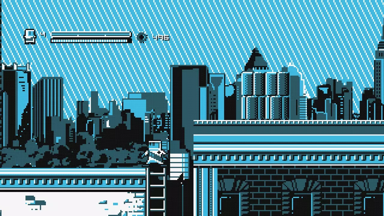 当你到达底部屏幕时,留在梯子上,结合使用二段跳和后 dash(敏捷度必须设置为 3 级)向左移动 纽约