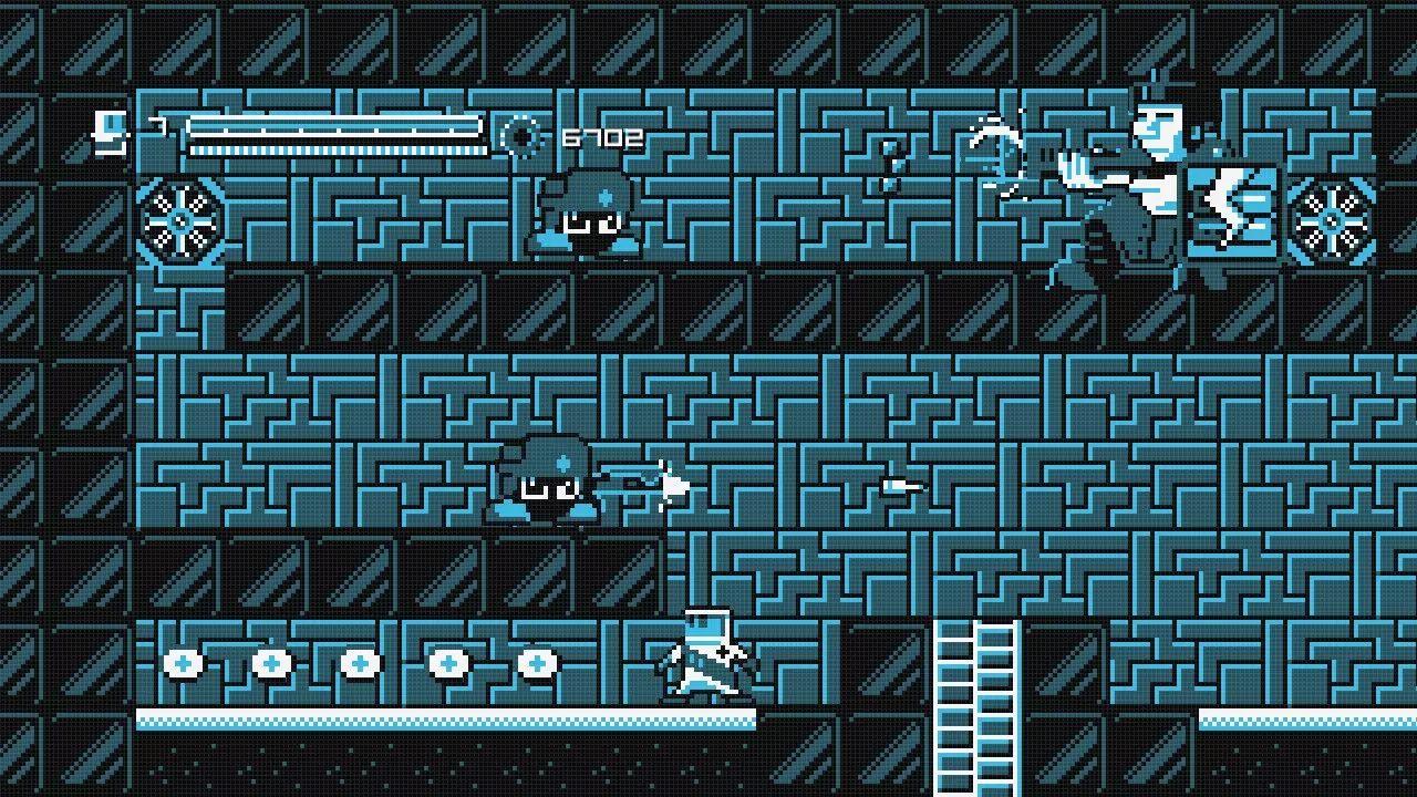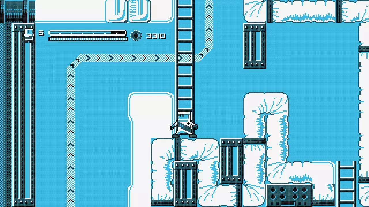 在这个梯子顶部,向右跳跃,向左转身并快速后冲(必须将敏捷度设置为3级),然后尽可能向右二段跳,再爬上梯子。