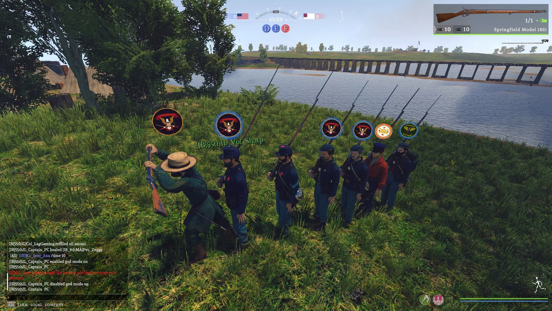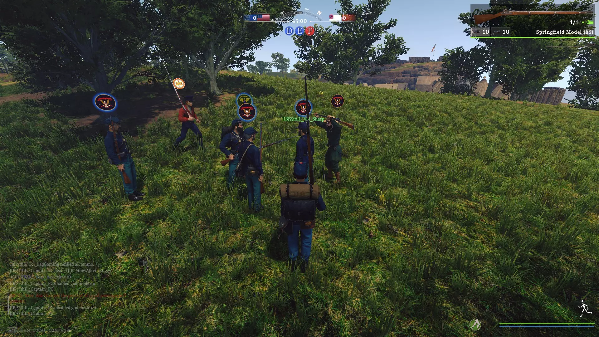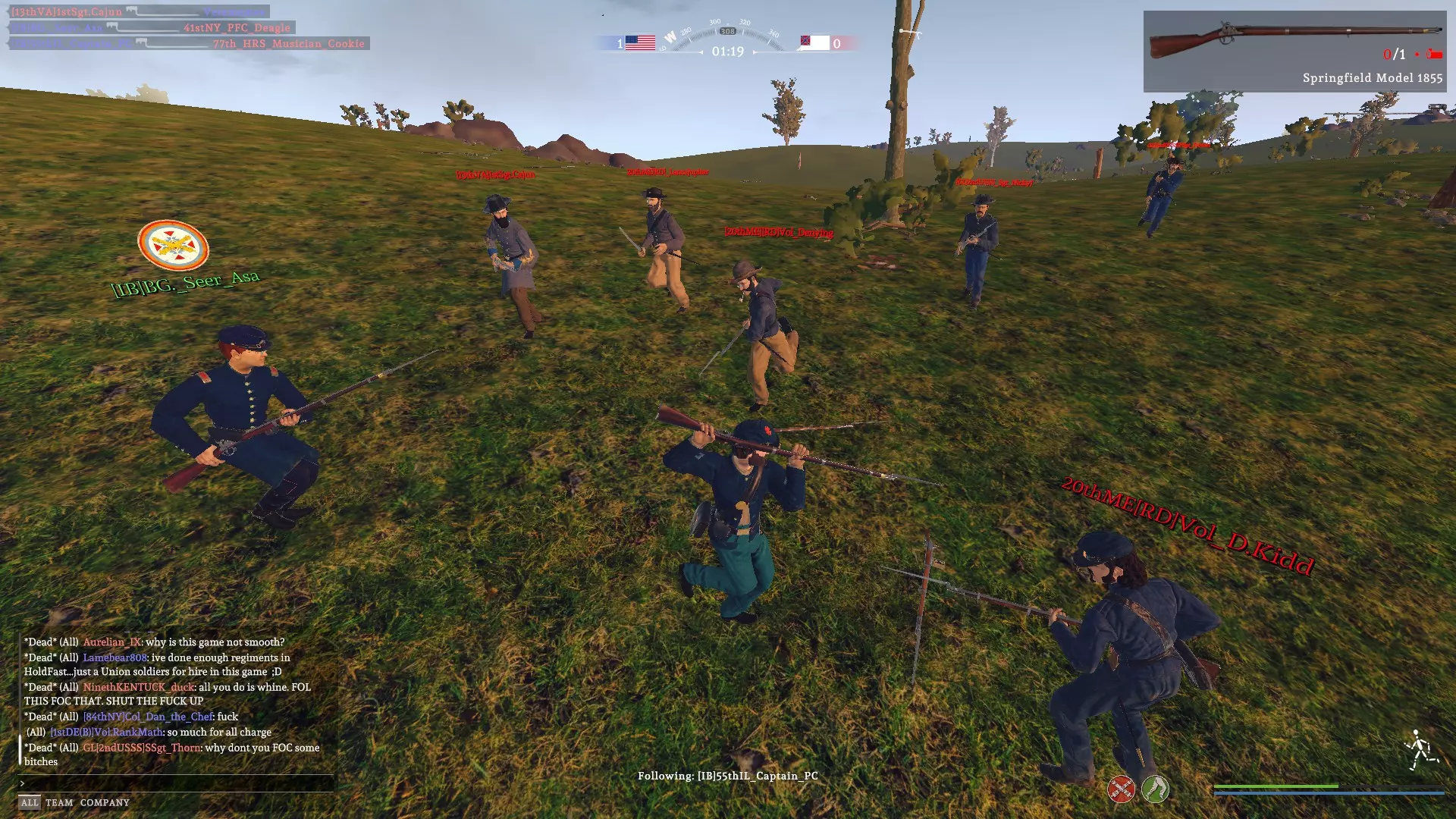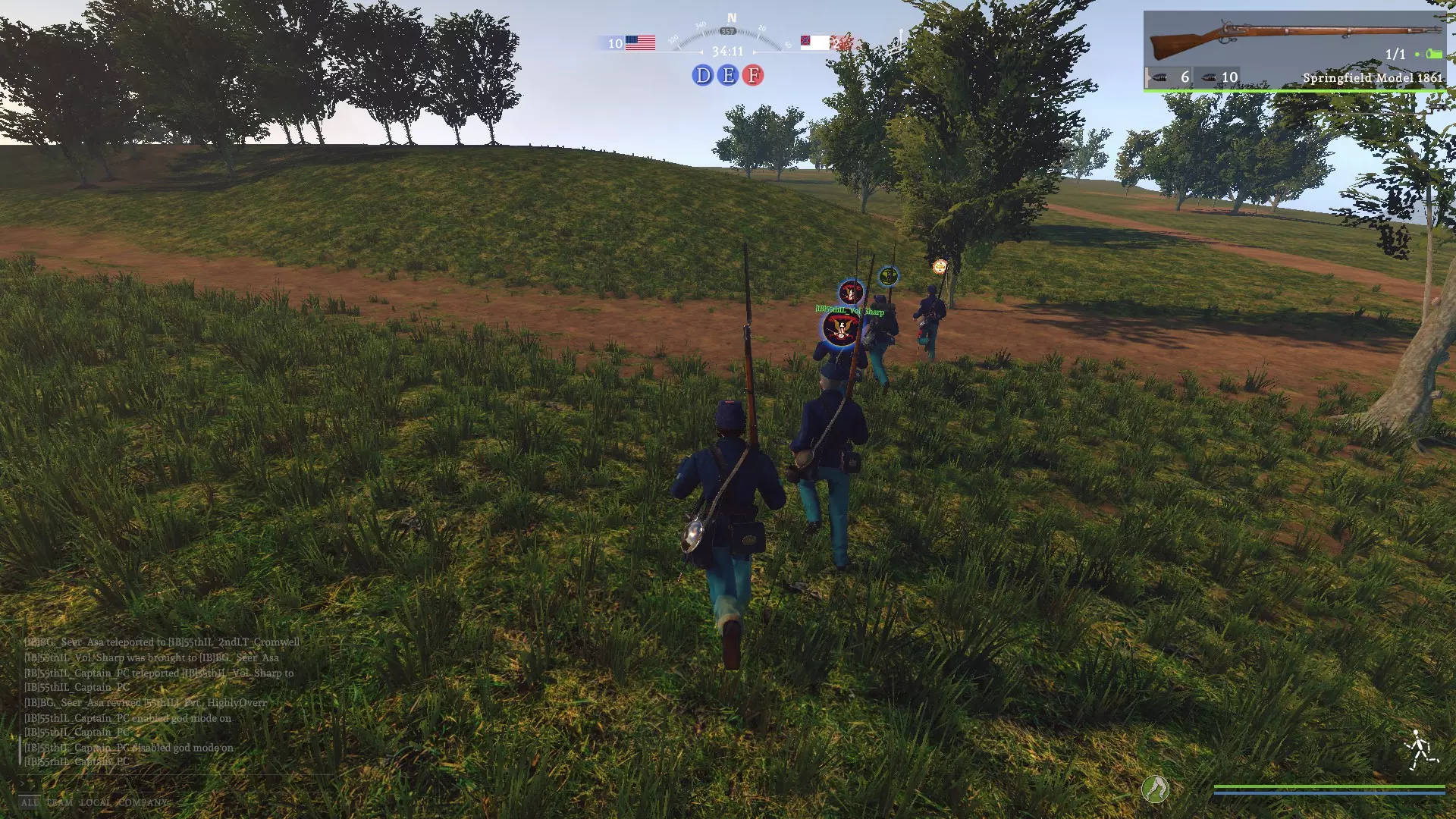 活动使用指南 入门说明 活动通常在整点准时开始。若活动尚未开始,你可以选择任意队伍和单位尽情游玩,直到管理员将所有人切换为观察者模式。 当所有人都被分配为观察者后,请保持观察者状态。管理员会为了保持游戏平衡,逐一为每个 clans( clans)分配队伍。如果你未加入 clans 就参与活动,很可能会在最后被分配。 一旦你被分配了队伍,请选择指定的队伍。除非特别指定为炮兵、散兵或骑兵,否则你就是线列步兵。你的指挥官会决定你所属的具体团和连。此时,如果你有偏好,也可以选择具体的武器。线列步兵不允许使用部分武器,例如密西西比步枪。不确定时:选择斯普林菲尔德1861型步枪。