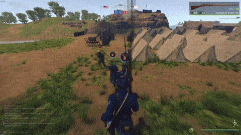 如果你不确定远处的人是友军还是敌人,可以查看他们头顶的旗帜。如果有旗帜:那就是友军。如果看不到旗帜,那就查看他们制服的颜色;蓝色代表联邦军,灰色代表邦联军。 最后,注意不要在队列外重新装弹。这条规则可能会因活动而异,但通常是不允许的。 冲锋 冲锋时,所有秩序往往会瓦解。不用担心,这本就该如此。尽量待在你的队伍附近,依靠人数优势。这和技巧同样重要。但不必在意保持队列,融入集群就好。