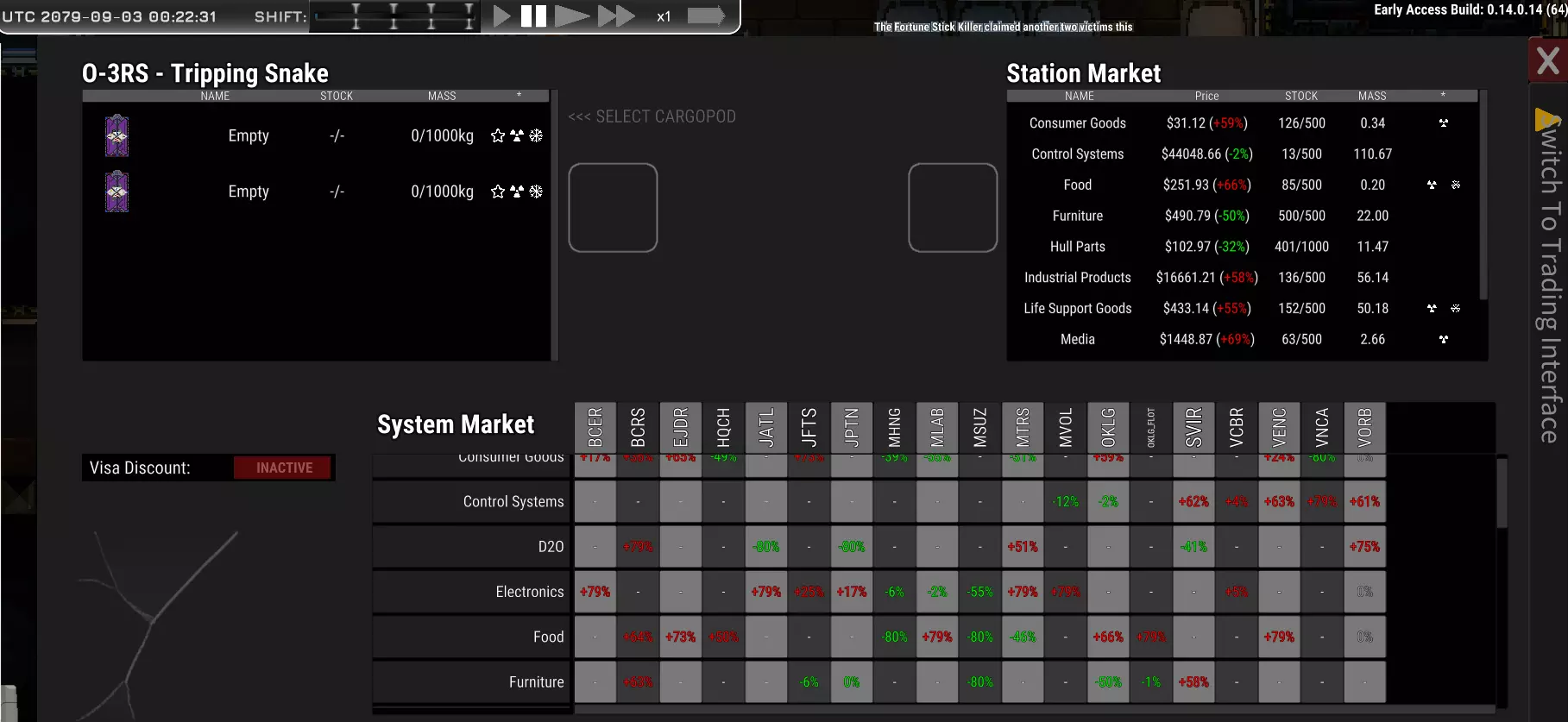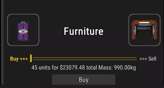 你首先可能会注意到,在空间站拥有签证(居住权/公民身份)可以享受折扣。由于我没有这些,所以无法告诉你具体折扣力度,但这是需要记住的一点。 在任何经济模拟游戏中,你的目标都是低买高卖。你会发现有些地方不经营特定商品,这些商品会用灰色短横线标注。图中的空间站市场显示,OKLG空间站的家具售价低于全星系平均价格的50%。 因此,如果我们在OKLG以490.79美元的价格购买家具(这比星系平均价格低50%,490.79美元+50%=736.18美元),然后在BCRS以高于星系平均价格63%的价格出售(736.18美元+63%=1199.98美元),换句话说,每单位价格翻了一倍多。我希望我的计算能得到纠正,手下留情。质量与价值:万物皆需平衡。