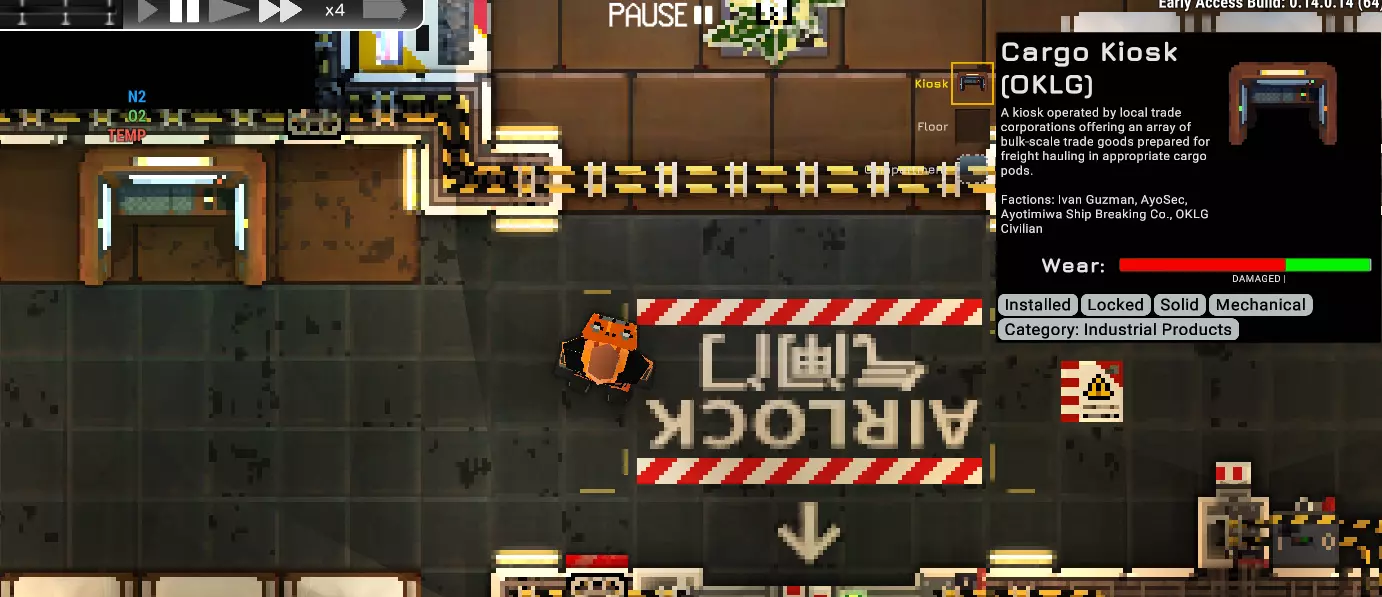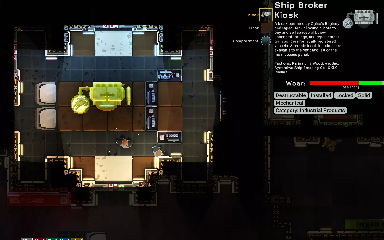 我撰写本指南的目的是帮助新手弄明白那些我花了很长时间才学会的东西。我主要侧重于飞船建造以及聚变引擎的使用方法,但也会穿插一些其他小技巧。 简介 为了庆祝0.14版本的发布,我决定撰写一份更全面的游戏指南。 几点声明: 1. 本指南是基于0.14早期访问版本的公开测试版撰写的。游戏内容未来可能会发生变化,但这份指南足以帮助你入门。 2. 我绝不是这款游戏的专家。我仍在不断学习新东西。我会尽力更新本指南。首先我想先提几个基础要点,因为如果你和我一样,任何新手都会直接查看本指南: 1:角色创建的背景故事是最重要的。在我看来,获得一艘完全属于自己(无债务)的飞船是最有益的事情之一。选择【棺材】或【扑克游戏】背景。有一些指南可以帮助你,不过要注意这些指南比较旧,可能已经过时。 2:阅读关于指令和安装系统的指南。 3:阅读关于人际关系的指南。 获取比初始飞船更好的飞船:购买一艘二手飞船。前往商业区,找到船舶经纪人 kiosk。它看起来是这样的: