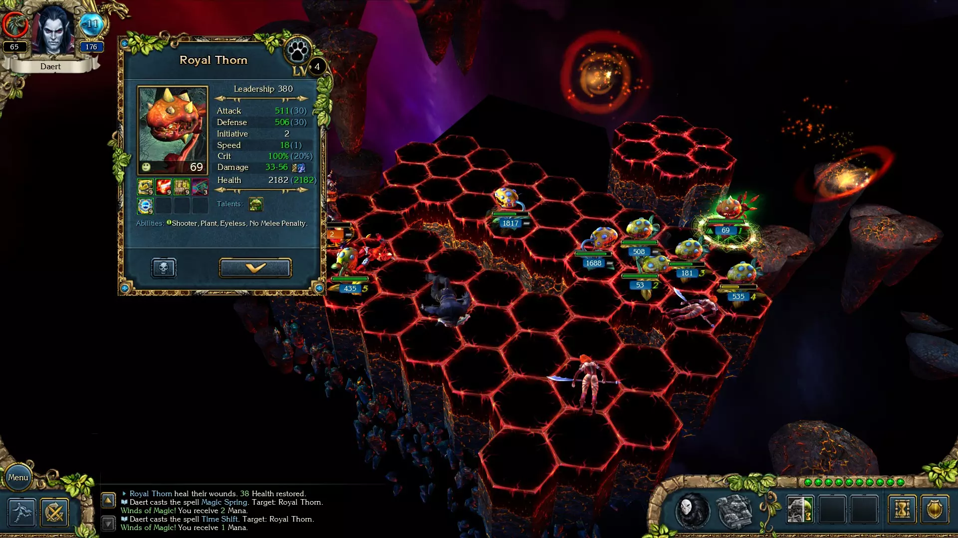我最爱的老牌单位。虽然容易被变羊这类讨厌的法术影响,但这家伙在战场上表现超棒。而且皇家荆棘的生命值能变得很高,不过这在更大程度上要靠运气。在游戏后期,我的皇家荆棘生命值在1k到8k之间浮动。它不仅是优秀的射手,还能召唤小荆棘。这些小荆棘集干扰、输出和扩充军队于一体。我通常会给它们施加【最后的英雄】法术,让它们处于无敌状态,然后让它们在阵亡部队身上播种,再进行攻击。另外,皇家荆棘是植物,拥有10%的生命 regeneration。 ++ 召唤能力 + 生命值 + 10% 生命 regeneration + 远程攻击 + 伤害值 - 4级 - 主动性 远古吸血鬼这些家伙的生命值还算可以,但仍能被提升到极高的数值,而且在回合开始时能恢复满血。如果它们确实遭受损失,它们可以使用招募能力,或者变成蝙蝠并吸取大量生命。但请注意,在变形期间增益效果将会消失。 ++100%再生 ++复活 +暴击闪避 +主动性 -等级4 -生命值 -伤害 背叛者版本的树人 虽然不如远古树人,但它们仍然是非常优秀的单位。它们拥有几乎相同的特性。 +生命值 +10%再生 +远程能力 +伤害 -等级4 -主动性 大恶魔 大恶魔能在这个位置占有一席之地的原因是,它们在回合开始时会清除自身的减益效果。不会受到讨厌的燃烧、冰冻、中毒或流血伤害。它们的高生命值应该能让它们在几乎任何情况下都能存活。若有疑问,你也可以对它们使用【宁静】,这样它们就真的无敌了 ++生命值 ++驱散负面效果 +召唤 +5级 +主动性 +远程能力 -伤害 --再生 其他值得注意的单位: 巨魔(夜晚/洞穴中完全恢复) 吸血鬼(完全恢复,蝙蝠形态下100%生命吸取) 狼人精灵(完全恢复) 巨人(10%生命窃取) (被诅咒的)幽灵(25%灵魂汲取) 法术使用 法师职业若使用低于20点法力值的法术,每回合可施放两个法术,持续6回合。 混沌吐息 神圣护甲 宁静 混沌武器 (可重复使用)混沌吐息 (可重复使用)时间扭曲 (可重复使用)自由选择,但注意你的法力值-->魔法源泉/平息怒火