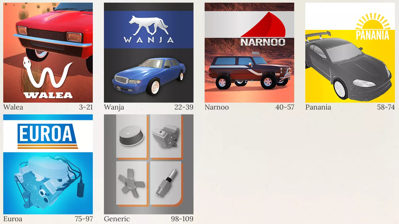 基思商店位于古塔赛道附近,售卖瓦莱亚、万贾、纳努和帕纳尼亚的零件,以及欧罗亚(改装品牌)和通用零件。