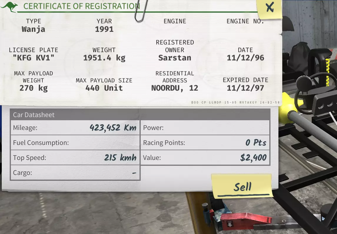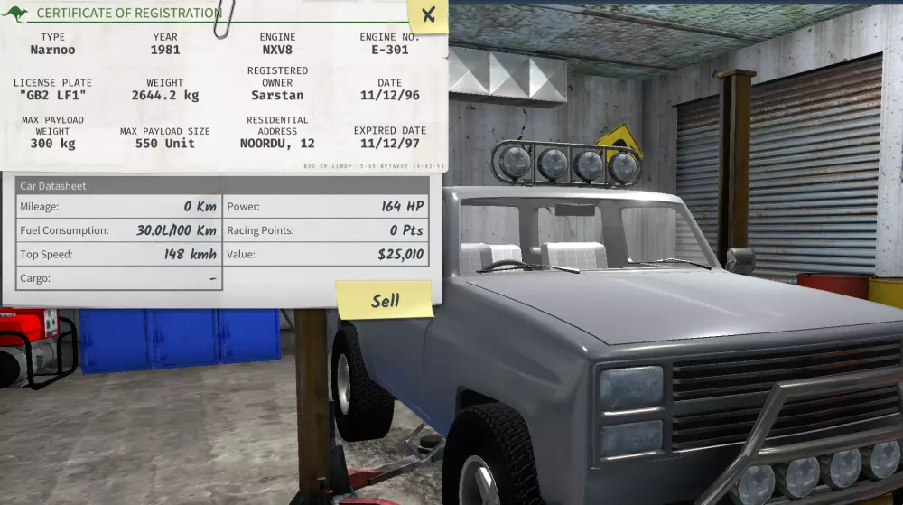 她已经完全修好了,而且还赚了一笔可观的利润!再说一次,你可以随意保留你想要的东西。不过我打算把这个卖掉。另外,考虑清理一下你的库存。游戏中对库存管理进行了一些改进,但它还是很快就会变得乱糟糟的。 拖车 查理不是说过如果看到车,就把它们拖回车库吗?但我没有拖车! 不过你可以拥有一辆。你要么需要在报纸上直接购买一辆拖车,要么自己组装一辆。自己组装需要三样东西:一辆合适的车辆(纳努皮卡车或金谷皮卡车)、一个合适的拖车底座,以及该品牌的拖车附件。 我找到了一辆破旧的金谷皮卡车。从车身部件里加装一个拖车底座,再从车身部件里加装一个金谷拖车附件。床和拖车附件是两种【不能混合品牌】的物品,因此购买时需注意。 值得注意的是,【Jingu】在原厂发动机状态下确实相当乏力,而且这样的话拖挂能力也很差。考虑在引擎盖下安装更强劲的发动机。我换装了【Narnoo V8】发动机,情况略有改善。加装一些性能部件也能有很大帮助。 希望后续还有更多内容 本指南仍在制作中,这也是我制作的第一个指南。我之前在这个阶段停了一段时间,没有继续下去,但我不想让它就这么被搁置。所以我决定按现状发布。希望上述信息至少能帮助你初步了解这款游戏的一些内容。尤其是当你想到游戏中有一个广阔的世界和各种各样的赛道(我特别喜欢采石场赛道),以及你可以对车辆进行各种有趣的改装时。那就出发去探索吧!