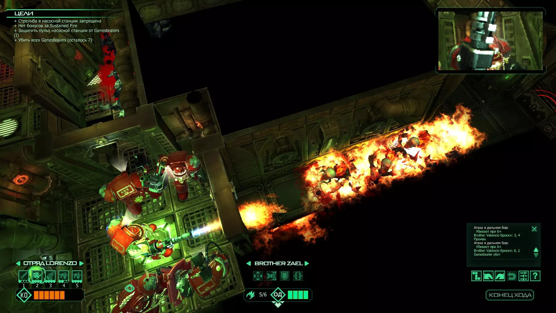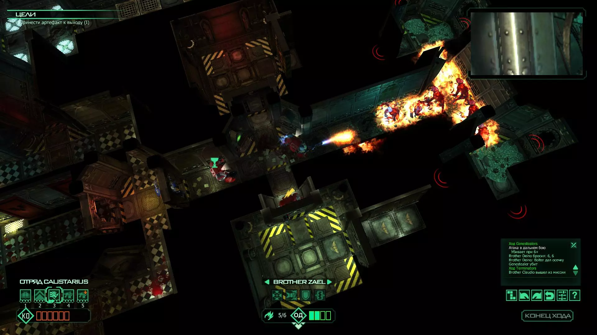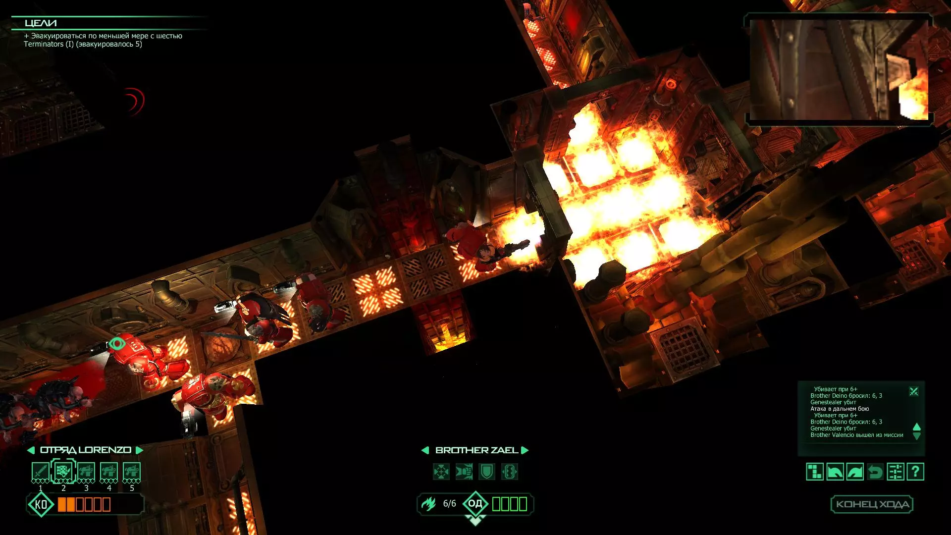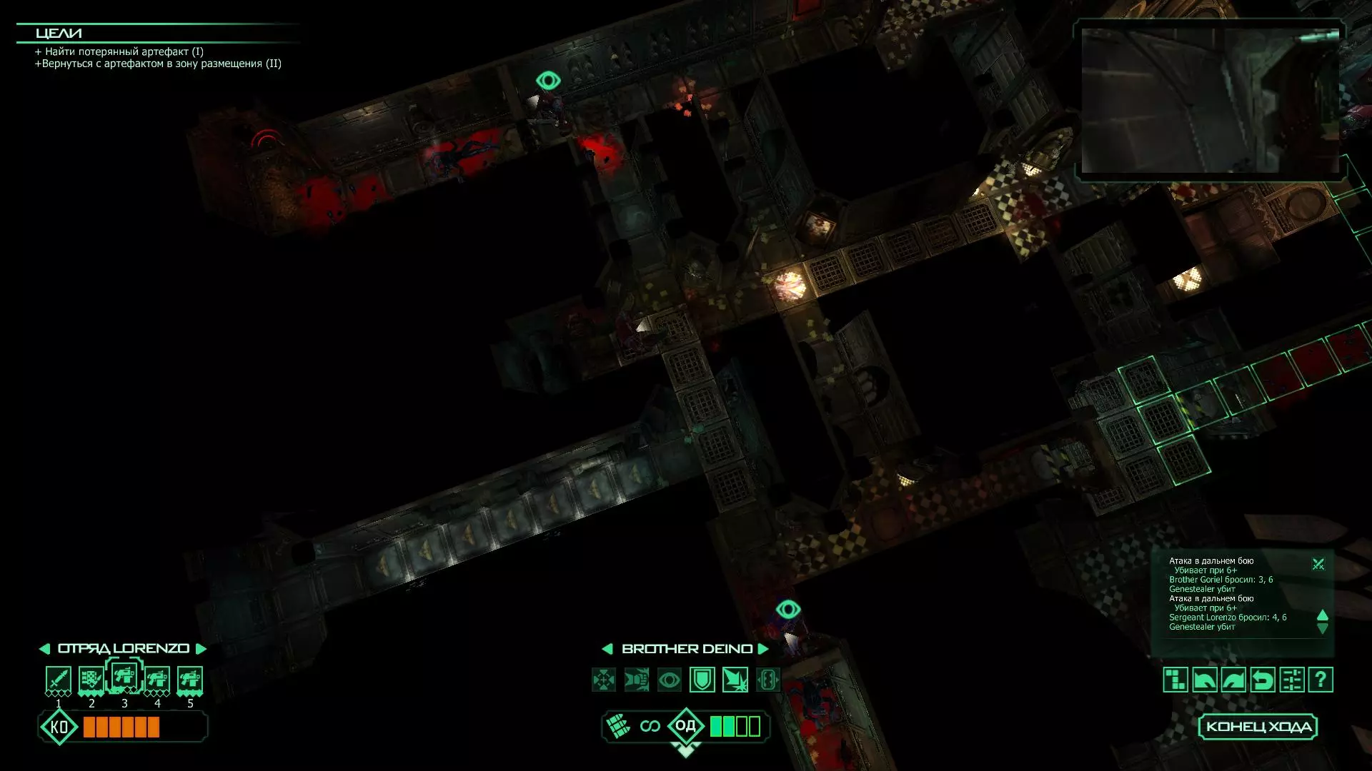 扎埃尔兄弟能很好地守住一个方向,而断后的卡利斯塔里( Калистарий )则负责另一个方向(是的,要达成成就需要他存活下来,但这并不意味着要极力保护他,因为他可以轻松地设置能量屏障,而且只要他还有灵能,他就是不可战胜的)。 不要忘记“返回”按钮,它能帮助你有效地对付基因窃取者和破解门。