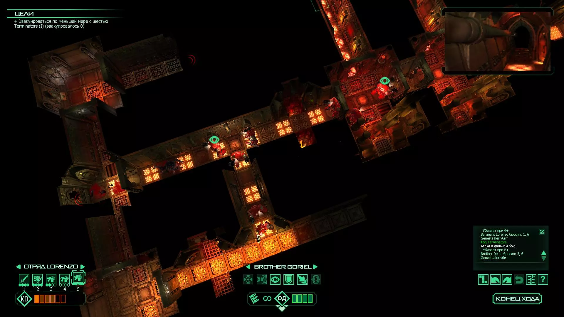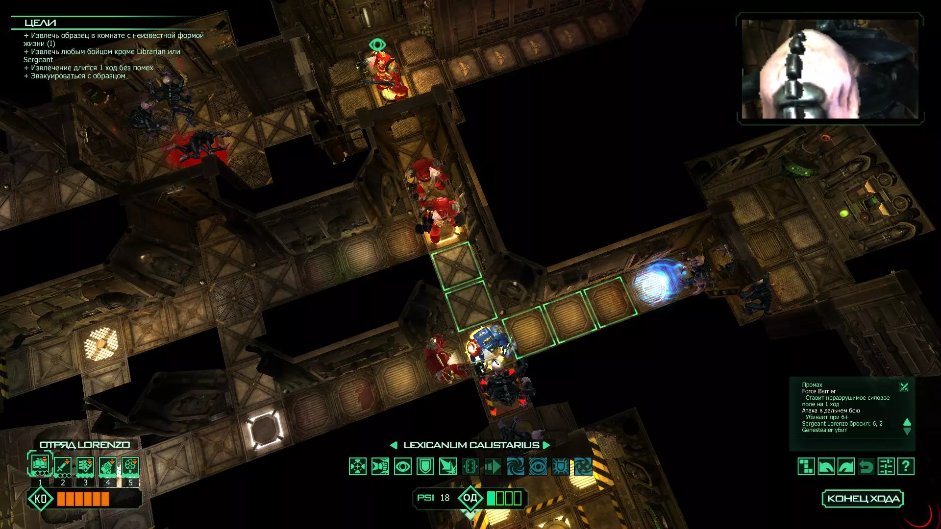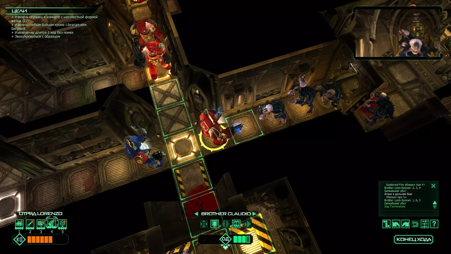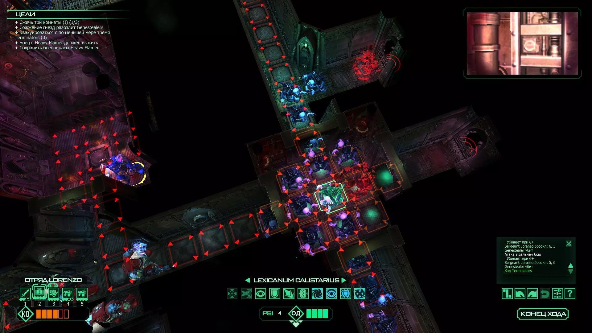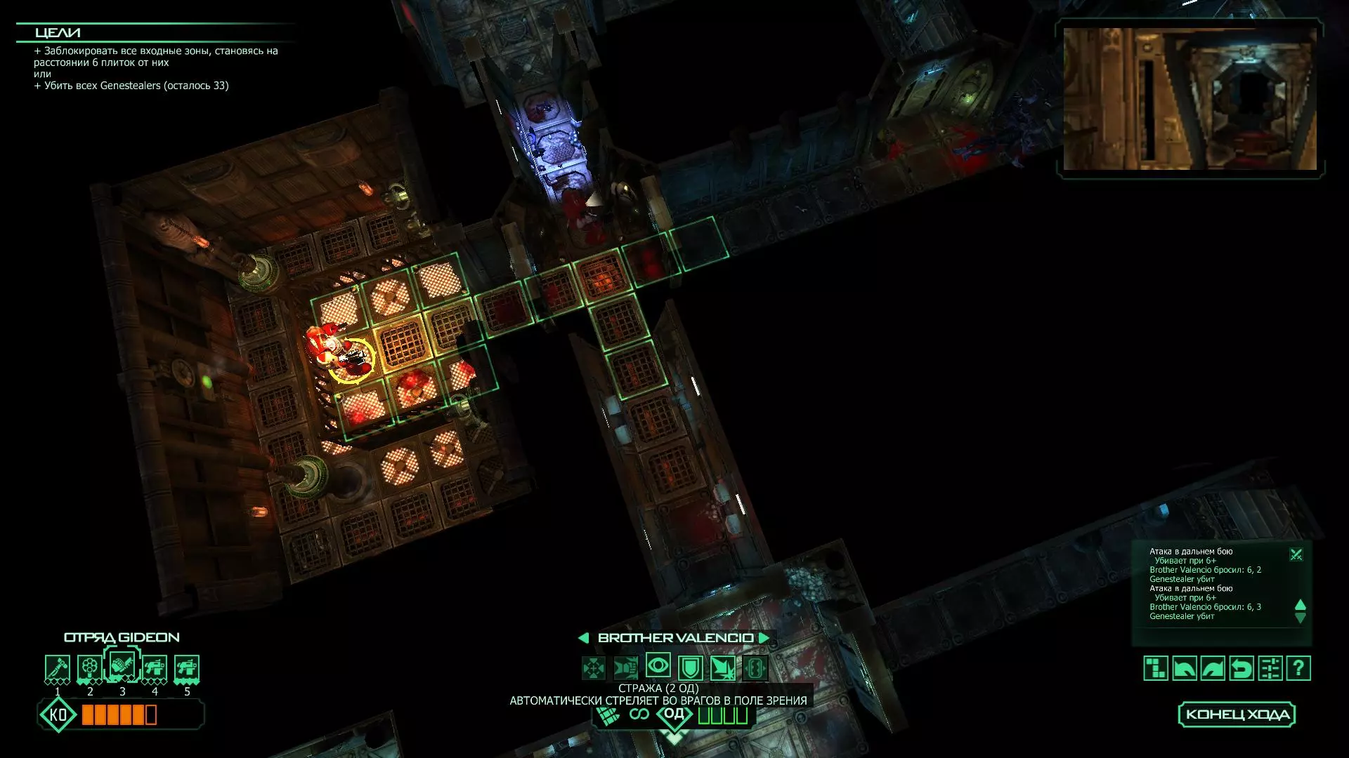 扎埃尔兄弟能很好地守住一个方向,而断后的卡利斯塔里( Калистарий )则负责另一个方向(是的,要达成成就需要他存活下来,但这并不意味着要极力保护他,因为他可以轻松地设置能量屏障,而且只要他还有灵能,他就是不可战胜的)。 不要忘记“返回”按钮,它能帮助你有效地对付基因窃取者和破解门。
