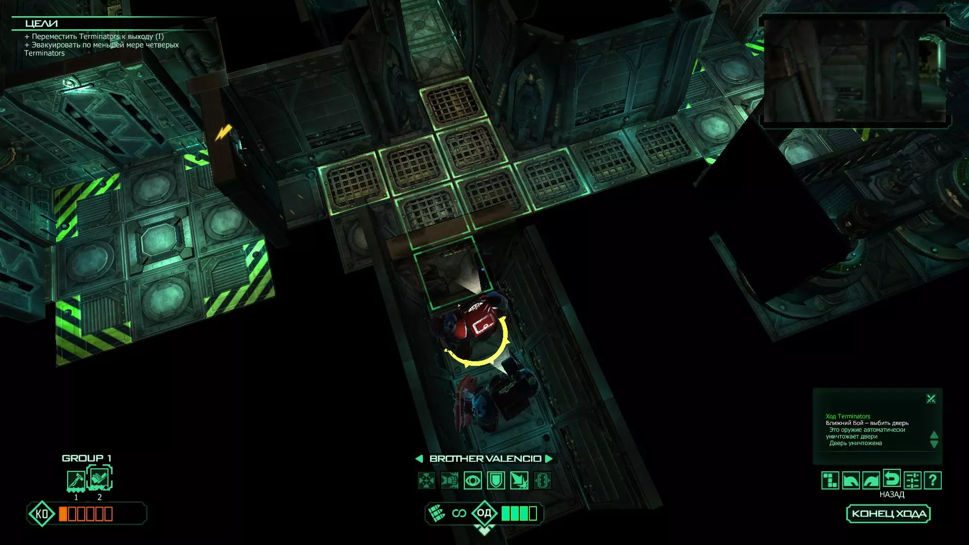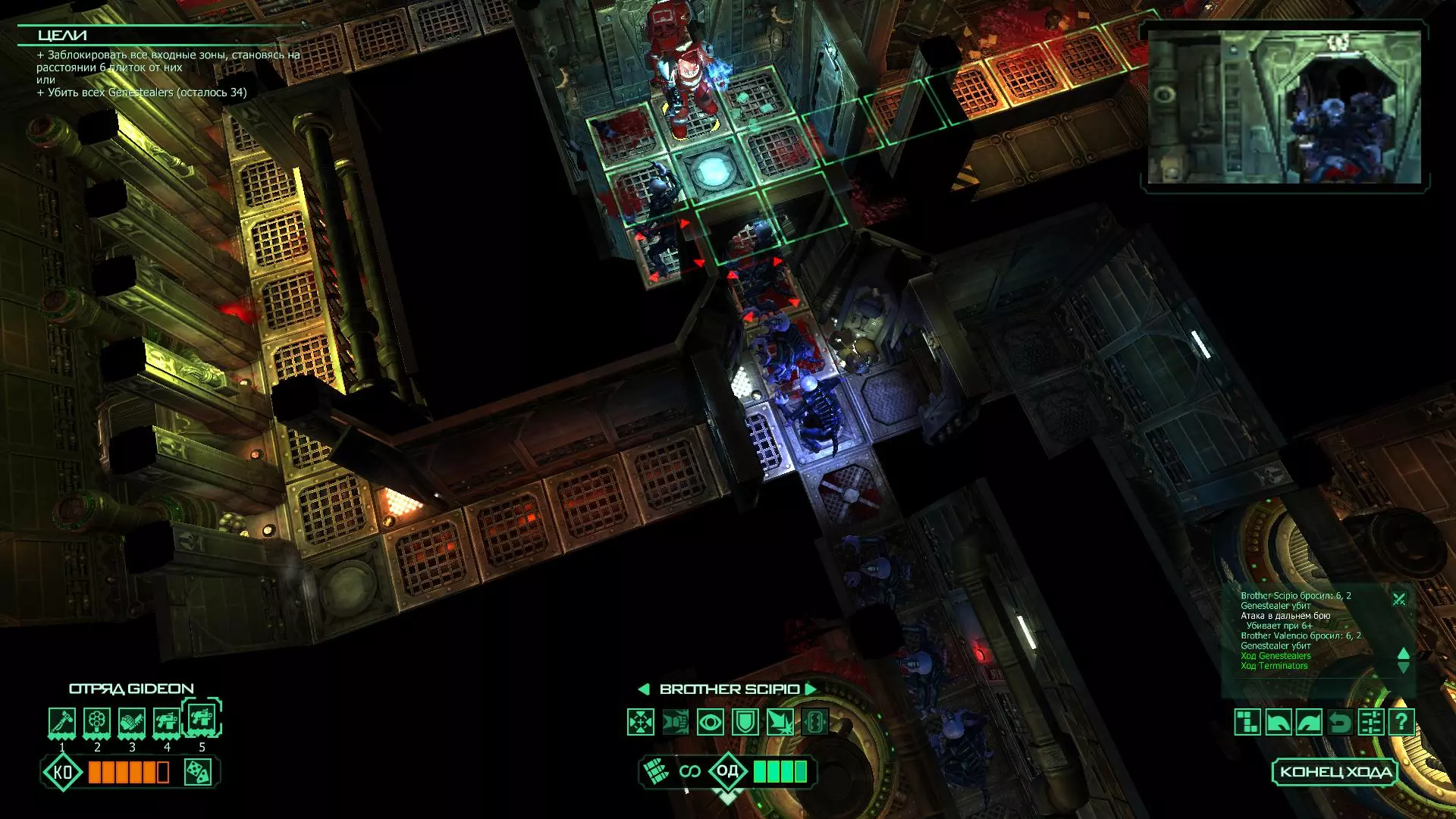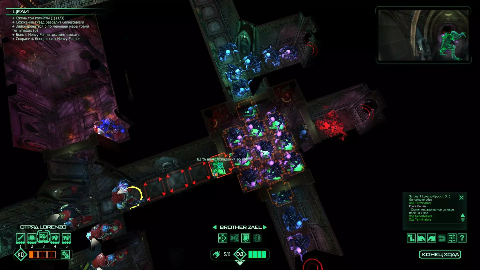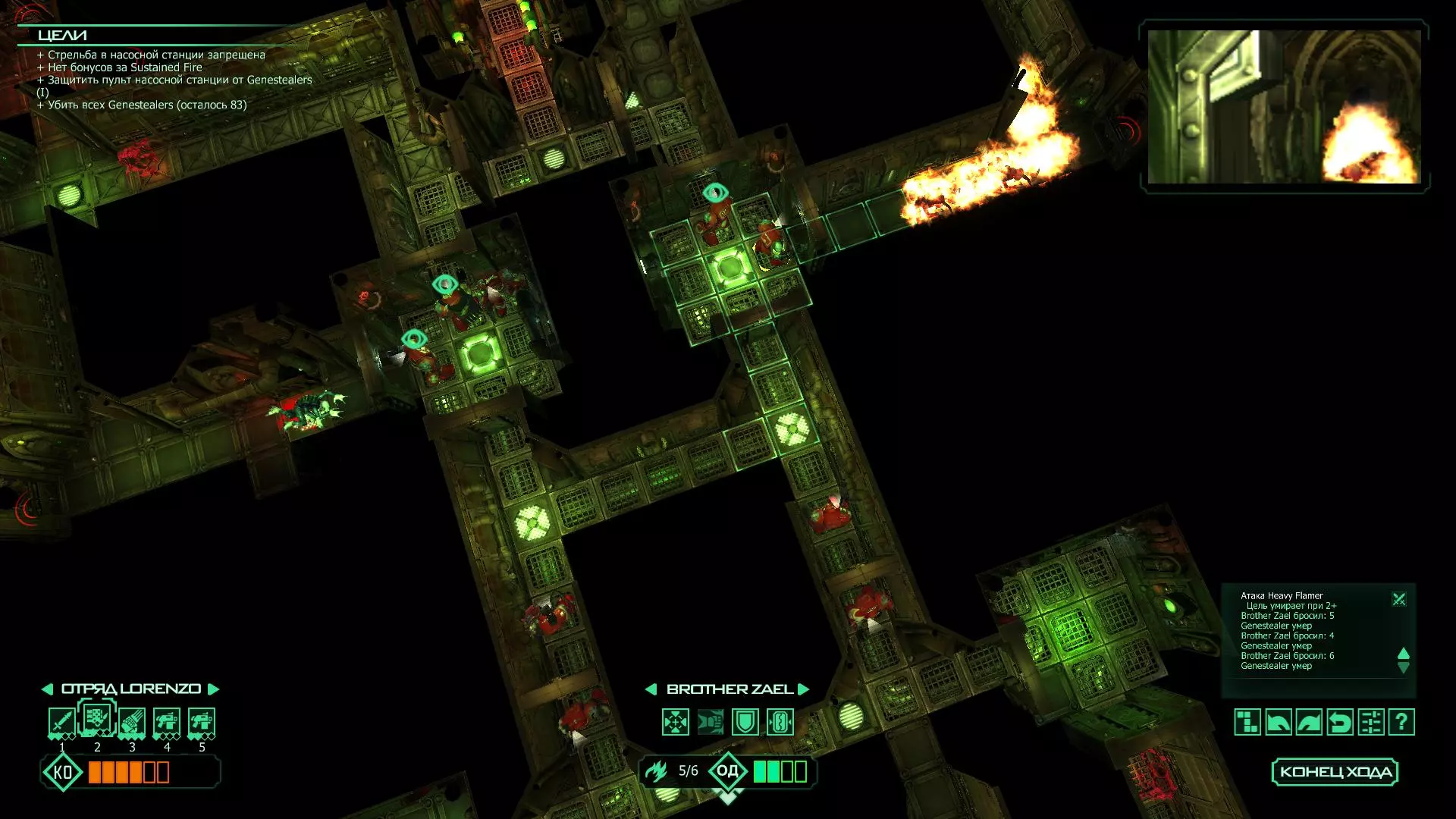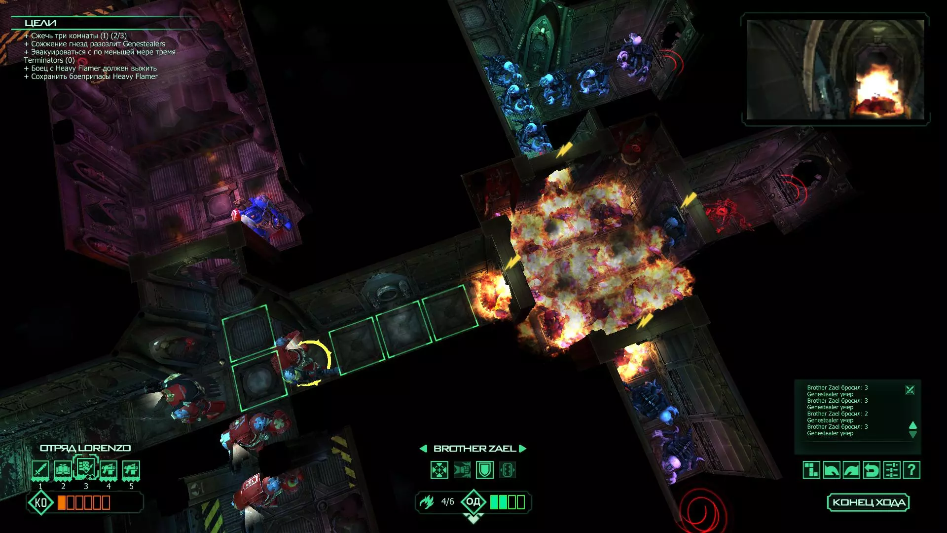 扎埃尔兄弟能很好地守住一个方向,而断后的卡利斯塔里( Калистарий )则负责另一个方向(是的,要达成成就需要他存活下来,但这并不意味着要极力保护他,因为他可以轻松地设置能量屏障,而且只要他还有灵能,他就是不可战胜的)。 不要忘记“返回”按钮,它能帮助你有效地对付基因窃取者和破解门。
