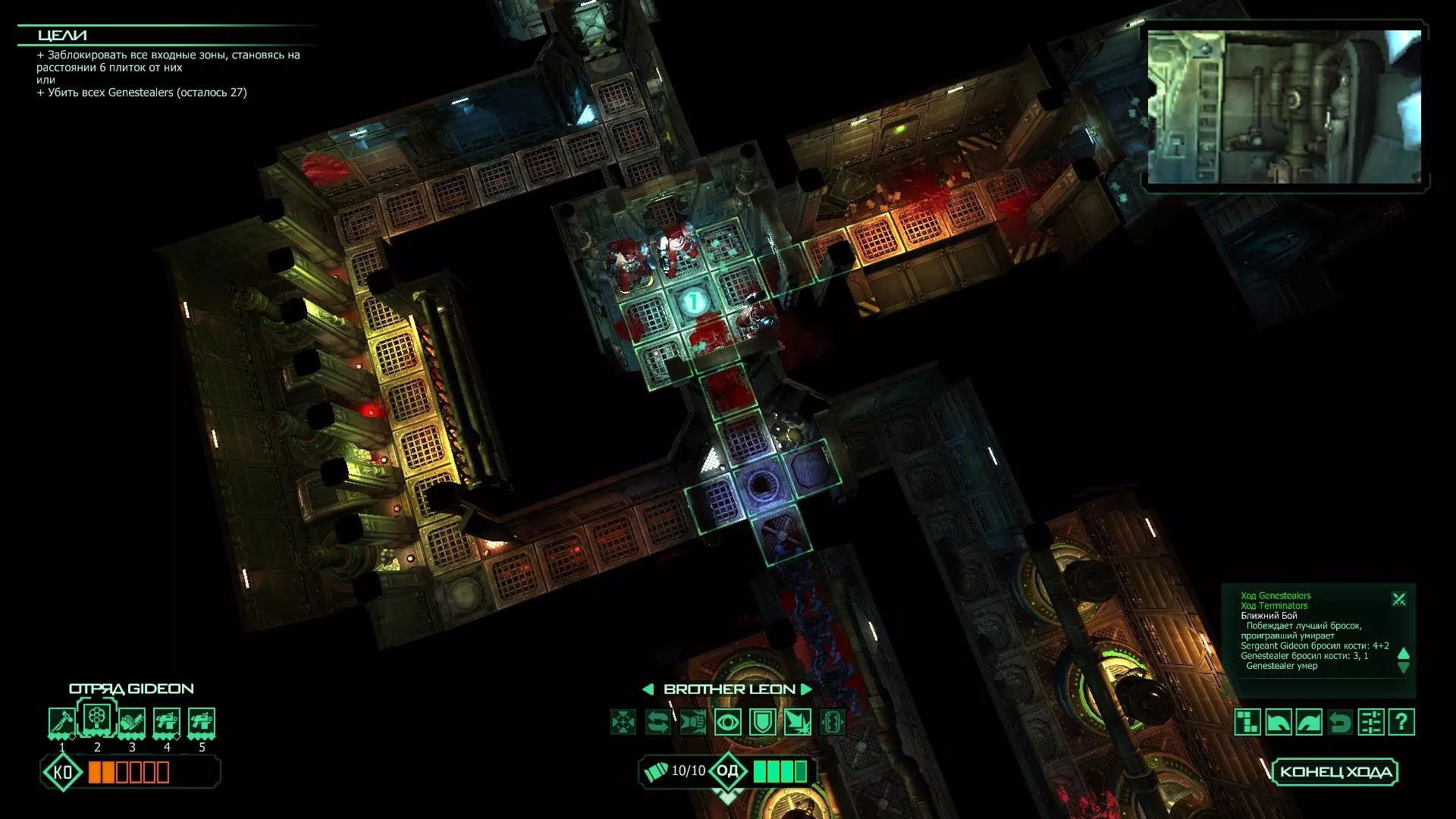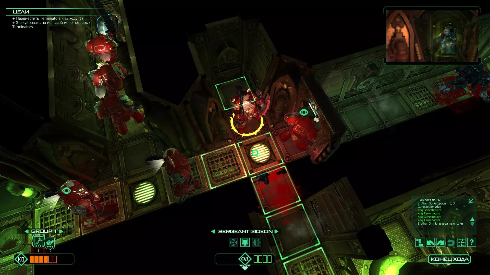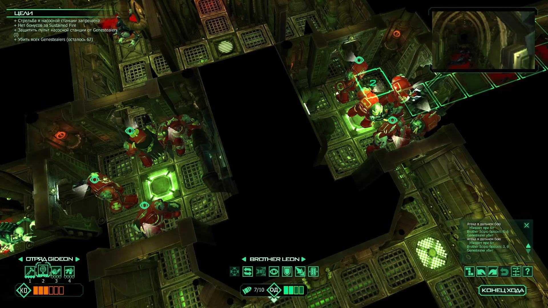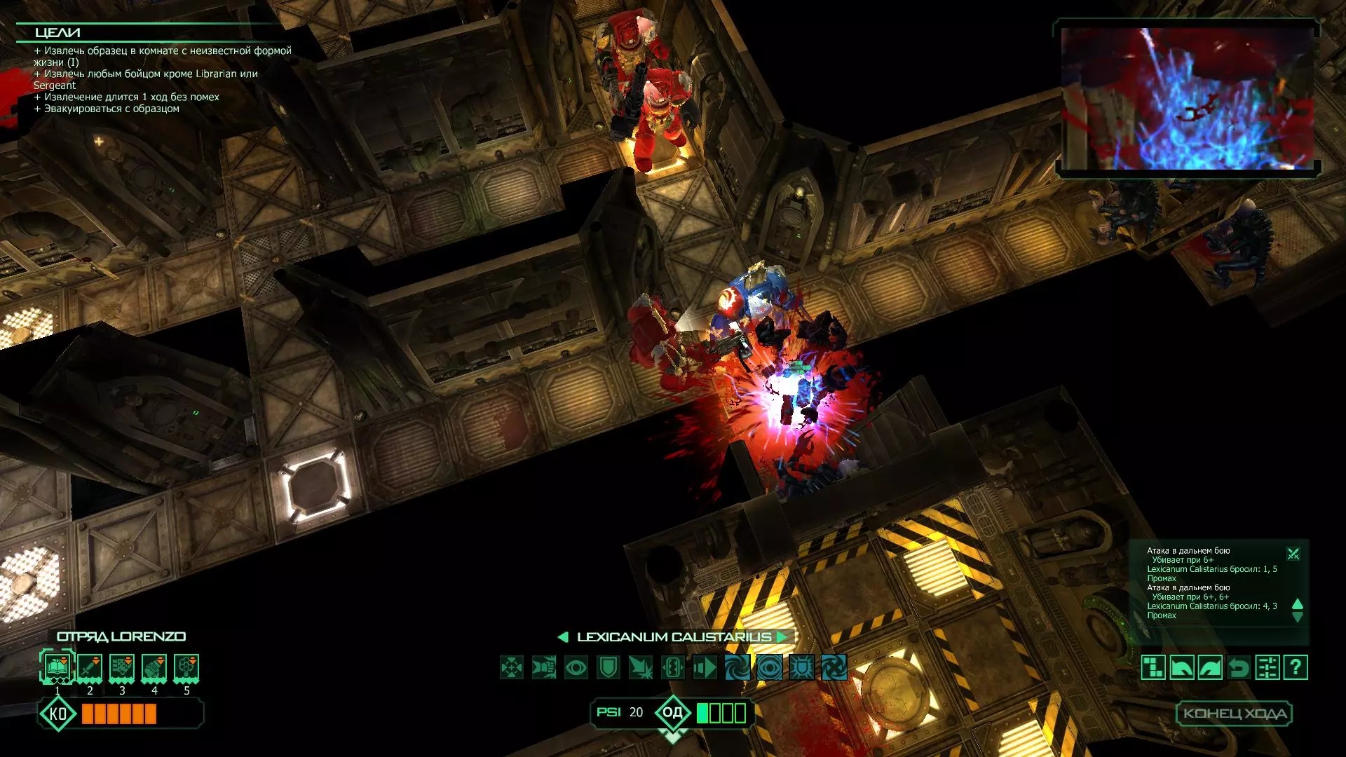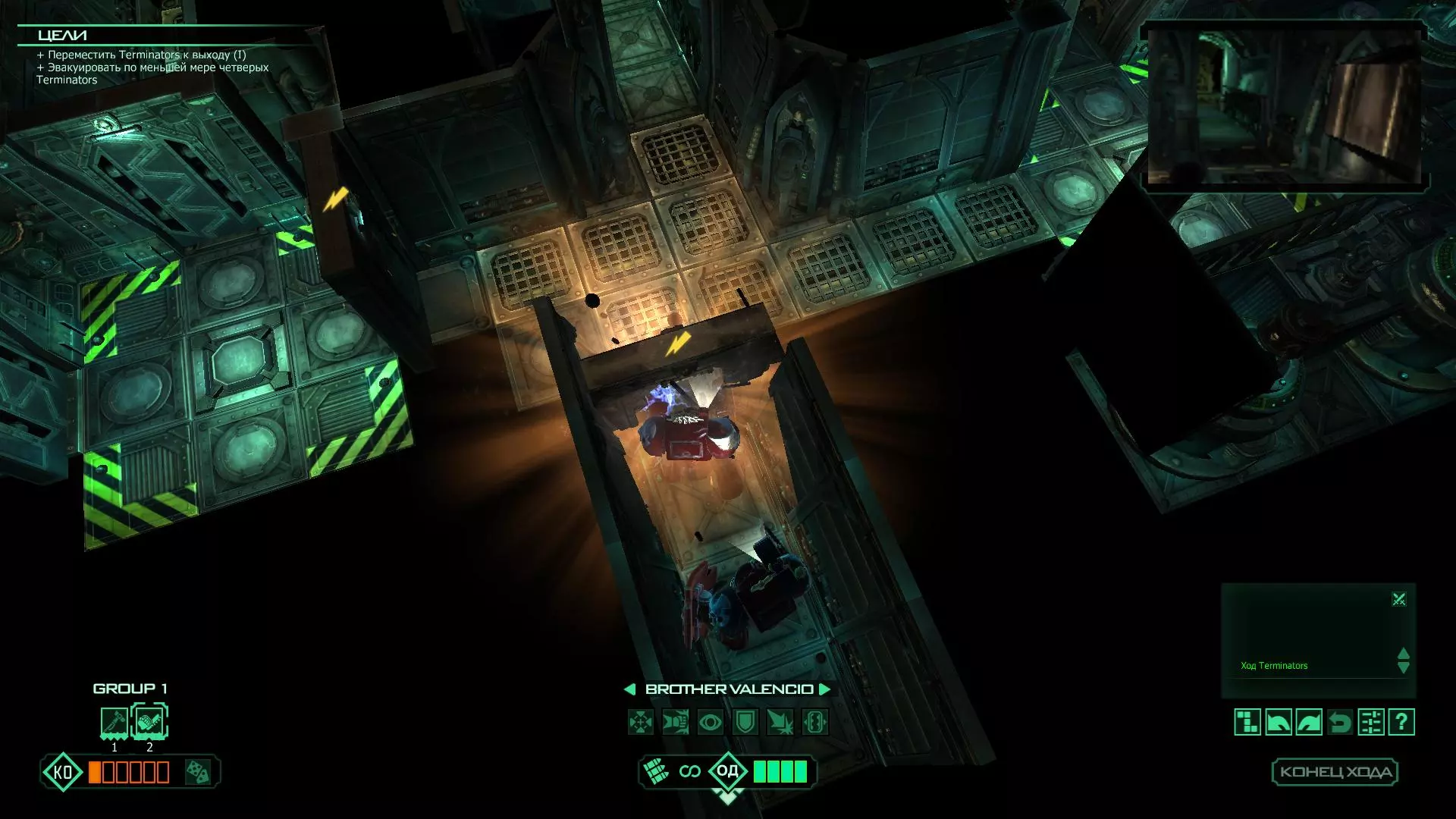 扎埃尔兄弟能很好地守住一个方向,而断后的卡利斯塔里( Калистарий )则负责另一个方向(是的,要达成成就需要他存活下来,但这并不意味着要极力保护他,因为他可以轻松地设置能量屏障,而且只要他还有灵能,他就是不可战胜的)。 不要忘记“返回”按钮,它能帮助你有效地对付基因窃取者和破解门。
