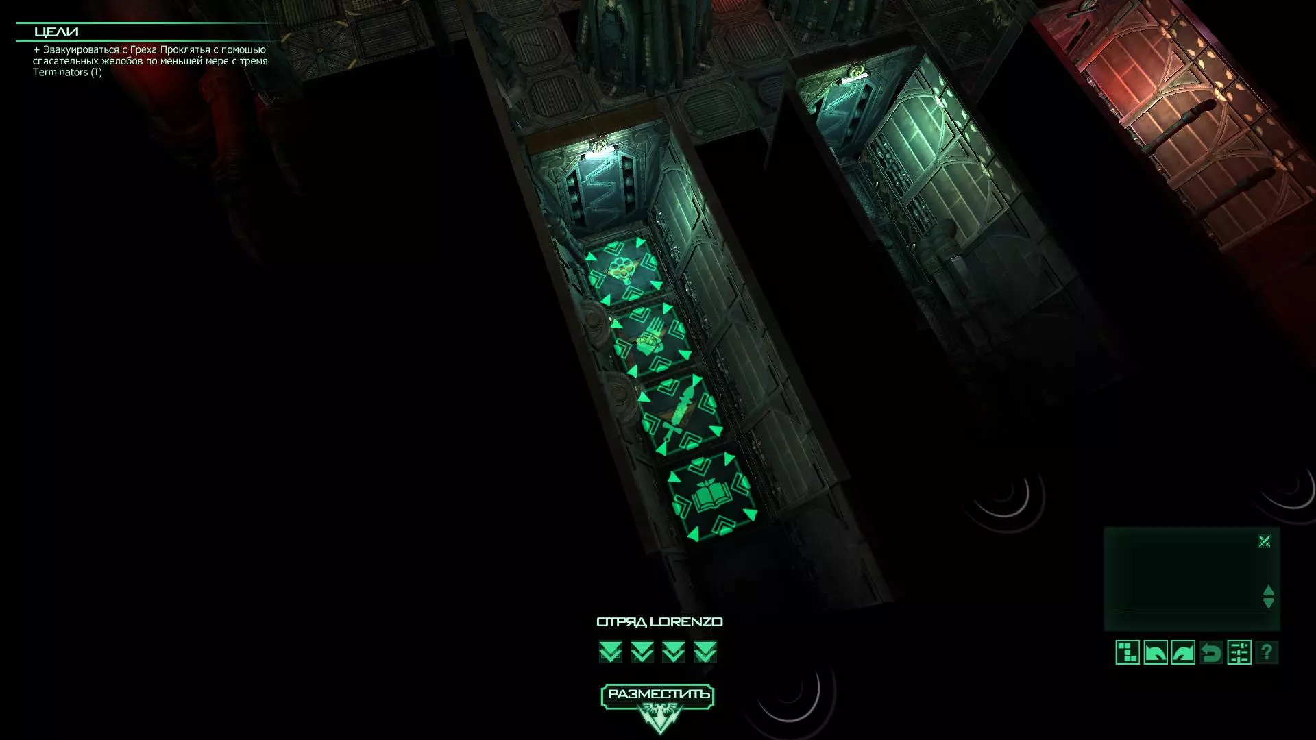 在“Западня”任务中,在第十回合结束前至少派出两名终结者。你在完成“Грех проклятья”战役时很可能已经获得了该成就,如果没有,可按以下方式部署战士: