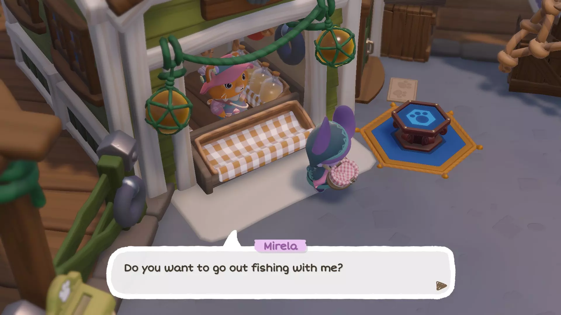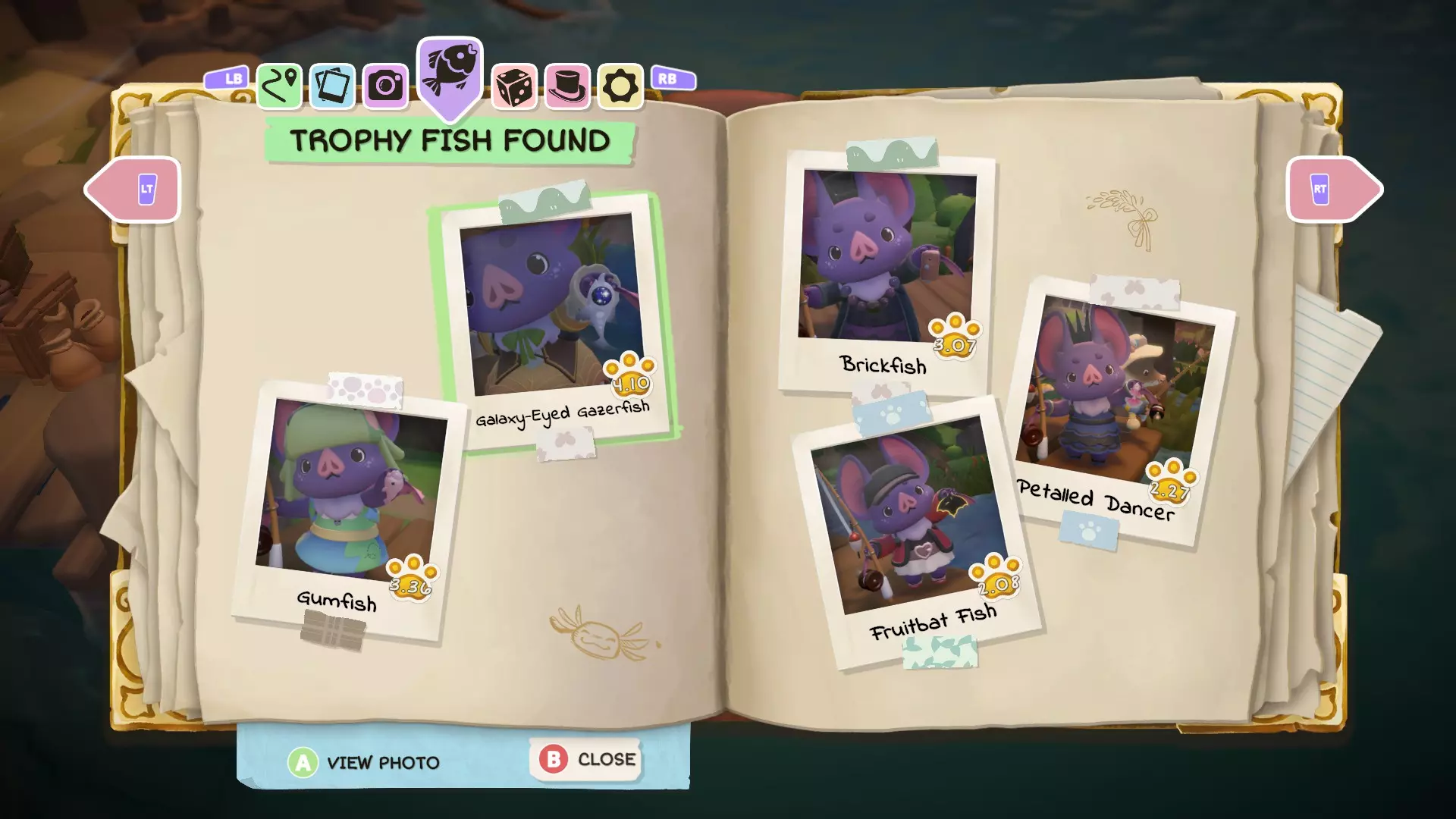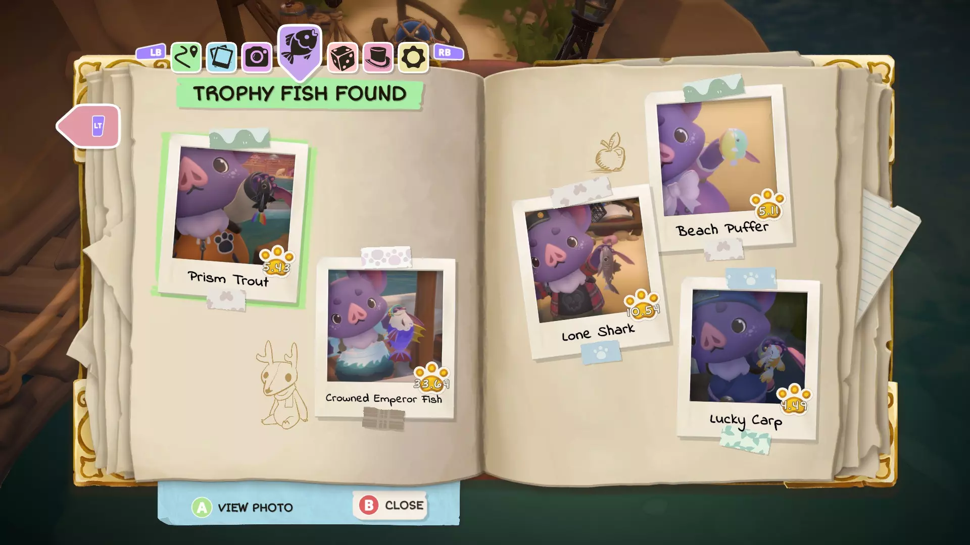 接下来你可以选择抛出鱼钩的方向,同时在抛出过程中还能操控鱼钩(水中的白色X)。我通常会将方向往角色这边拉,这样鱼钩就不会离鱼太远。 通过收线移动鱼钩或未成功的下钩可能会吓跑鱼,所以最好耐心等待。当出现第二次水花且有白色水花溅起后,按下互动(下钩)按钮就能成功钓到鱼。一旦上钩,要立即开始收线,否则鱼可能会逃脱。 你可以钓到三种不同的东西: 垃圾总会被钓出水面,可以交给伦布尔或哈普(砂岩角)来获取爱心。“普通”鱼类可以被捕获并用于食谱,但每个钓鱼点每天只能捕获一条鱼。第二条捕获的鱼必须放生。 “特殊”鱼类如果是你目前捕获过的最大个体,将会被拍照*,然后放回水中。 *出现在你笔记本中的照片会从照片中间裁剪为正方形部分。记住,如果你发现同种类更大的鱼,它将替换你之前为该鱼类保存的旧照片。 你可以随意多次钓鱼,如果你保留捕获物,会出现第三条鱼。不过,如果你在寻找“特殊”鱼类,尝试几次后放弃并改天再试可能会更好。如果你在寻找“特殊”鱼类时遇到困难,卵石镇海滩西侧的拉夫可以给你一些提示。