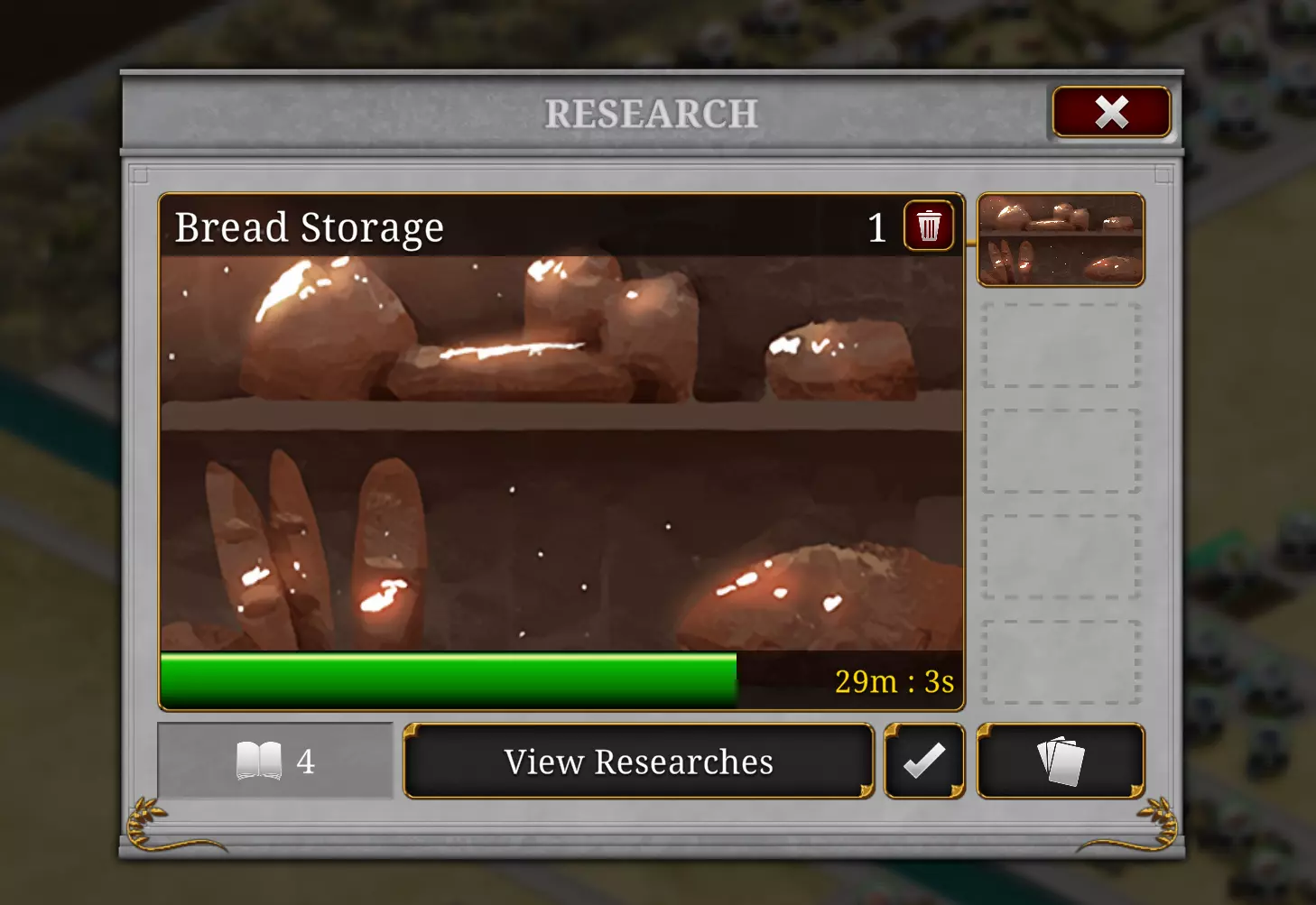 研究 在《罗马:凯撒时代》中,研究非常重要。 研究能为你解锁新建筑、建筑升级、单位升级、资源存储等内容。 记住,当你拥有研究点数时,一定要进行研究。