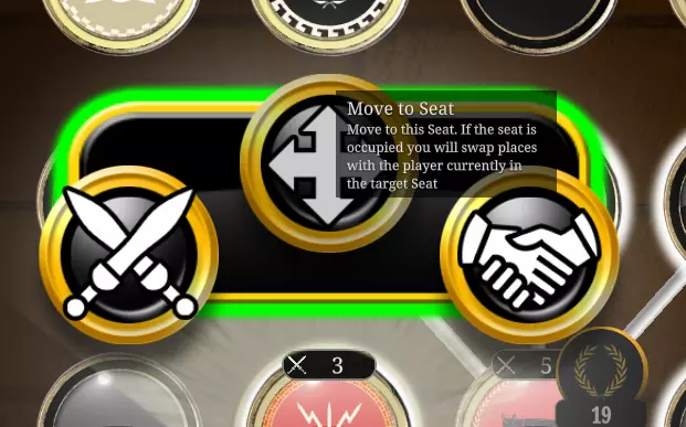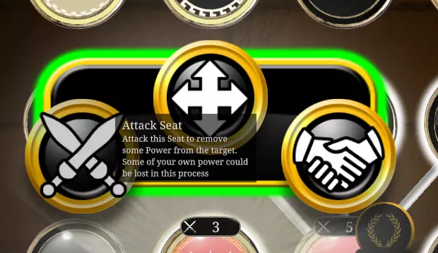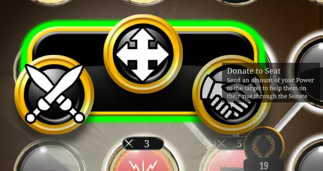 在元老院,你有3种可用于对抗其他玩家的选项,我们从左侧开始介绍。