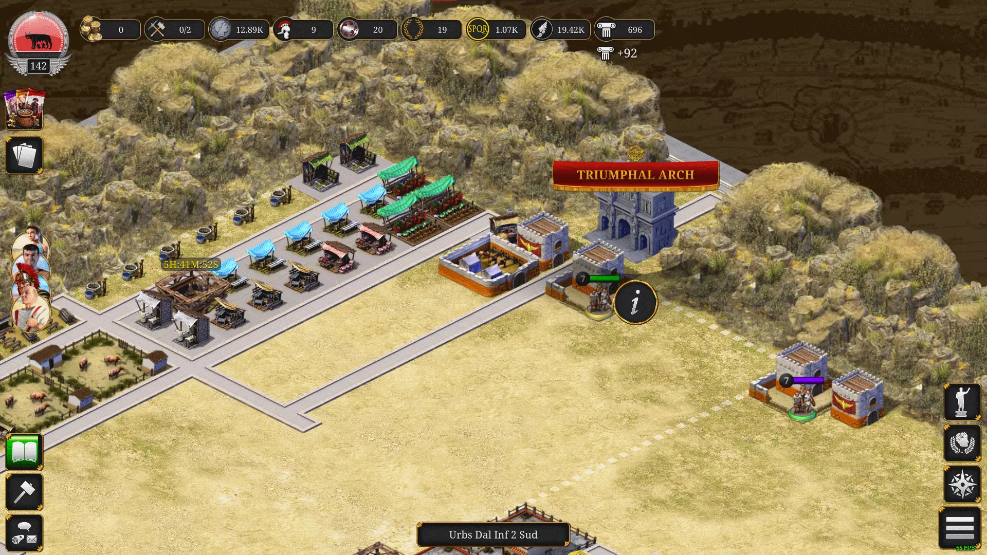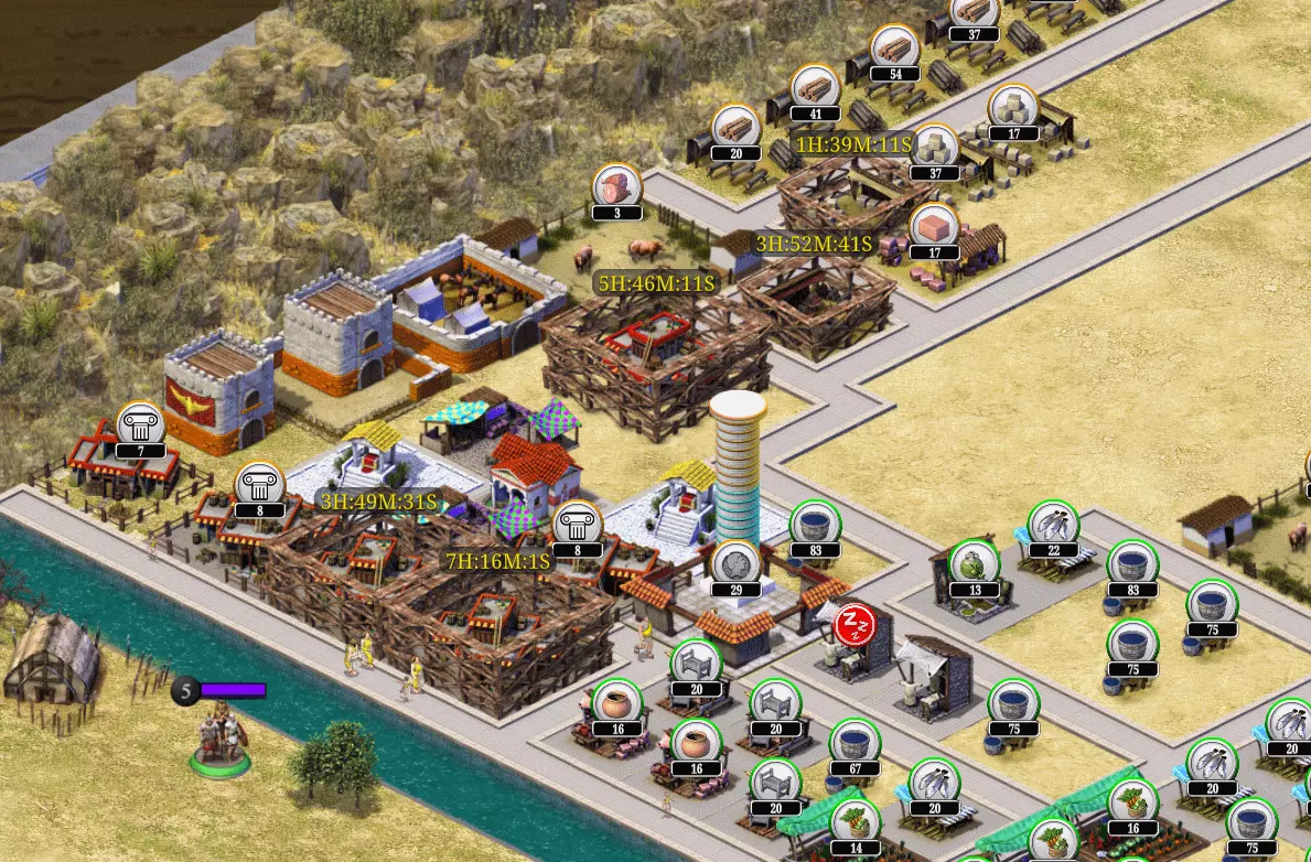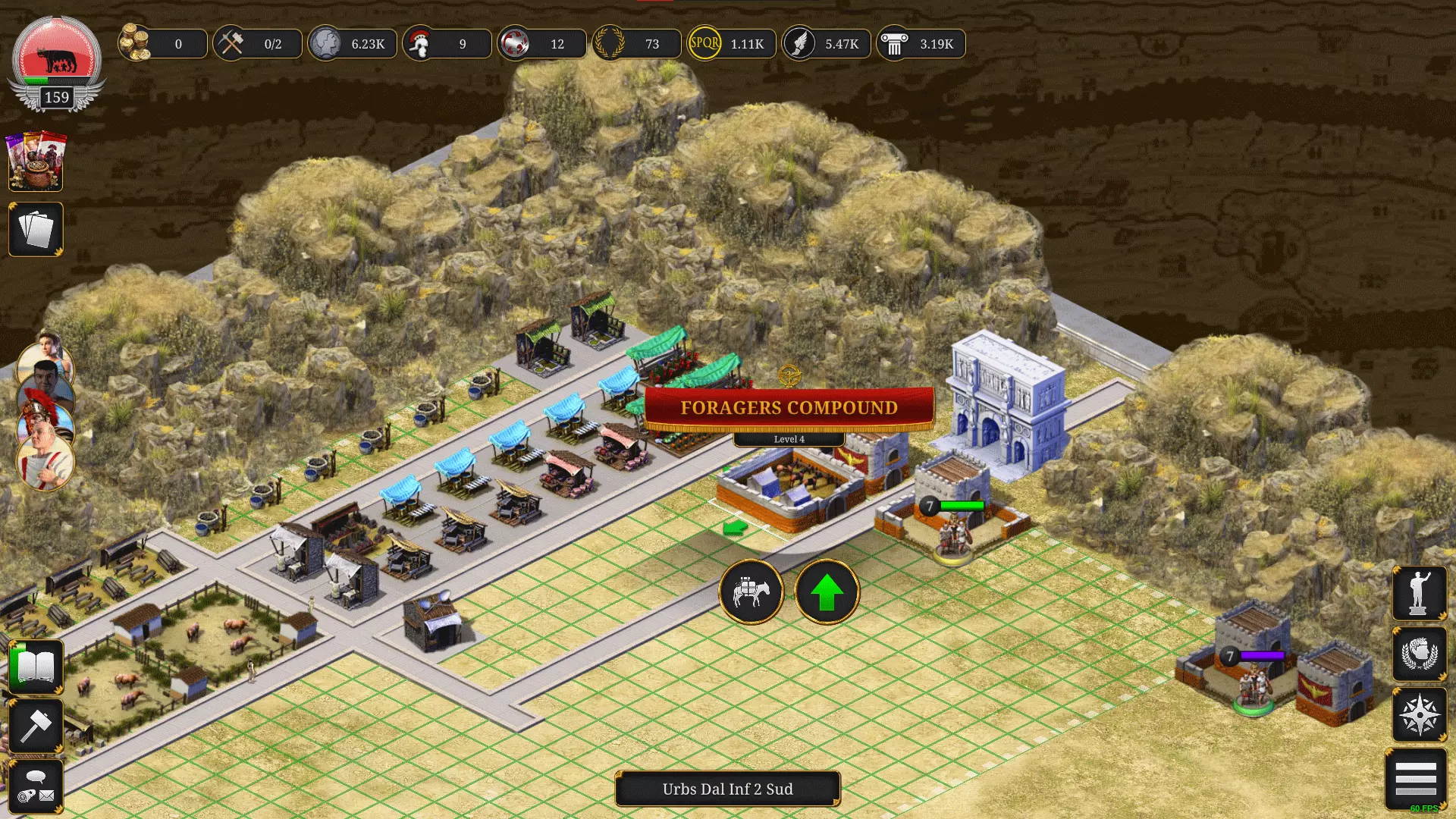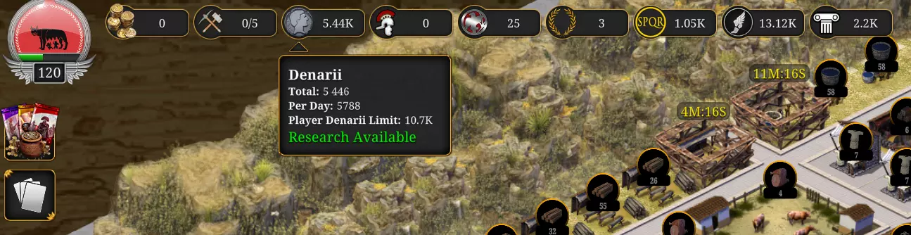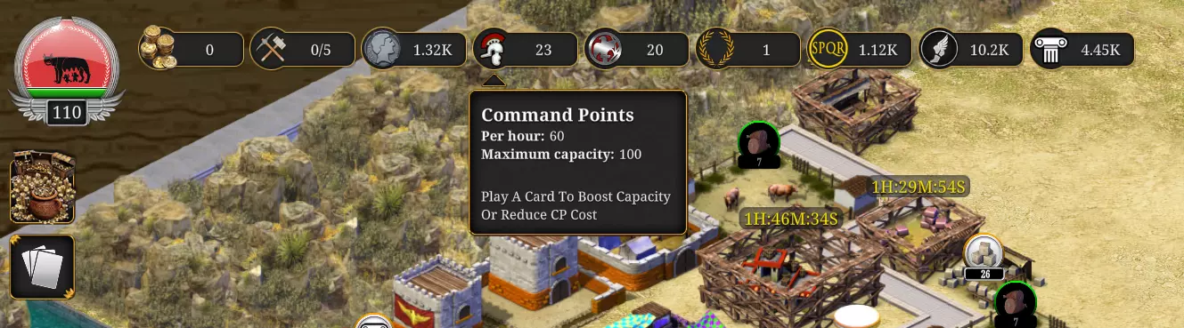 通过研究和升级采集者营地可解锁更多采集者。 升级建筑: 始终升级房屋,它们会产出SPQR、影响力点数和银币! 同时不要忘记升级其他生产建筑。 这就涉及到建筑队伍,若想同时升级2个以上建筑,可使用卡牌来允许最多同时升级5个建筑。