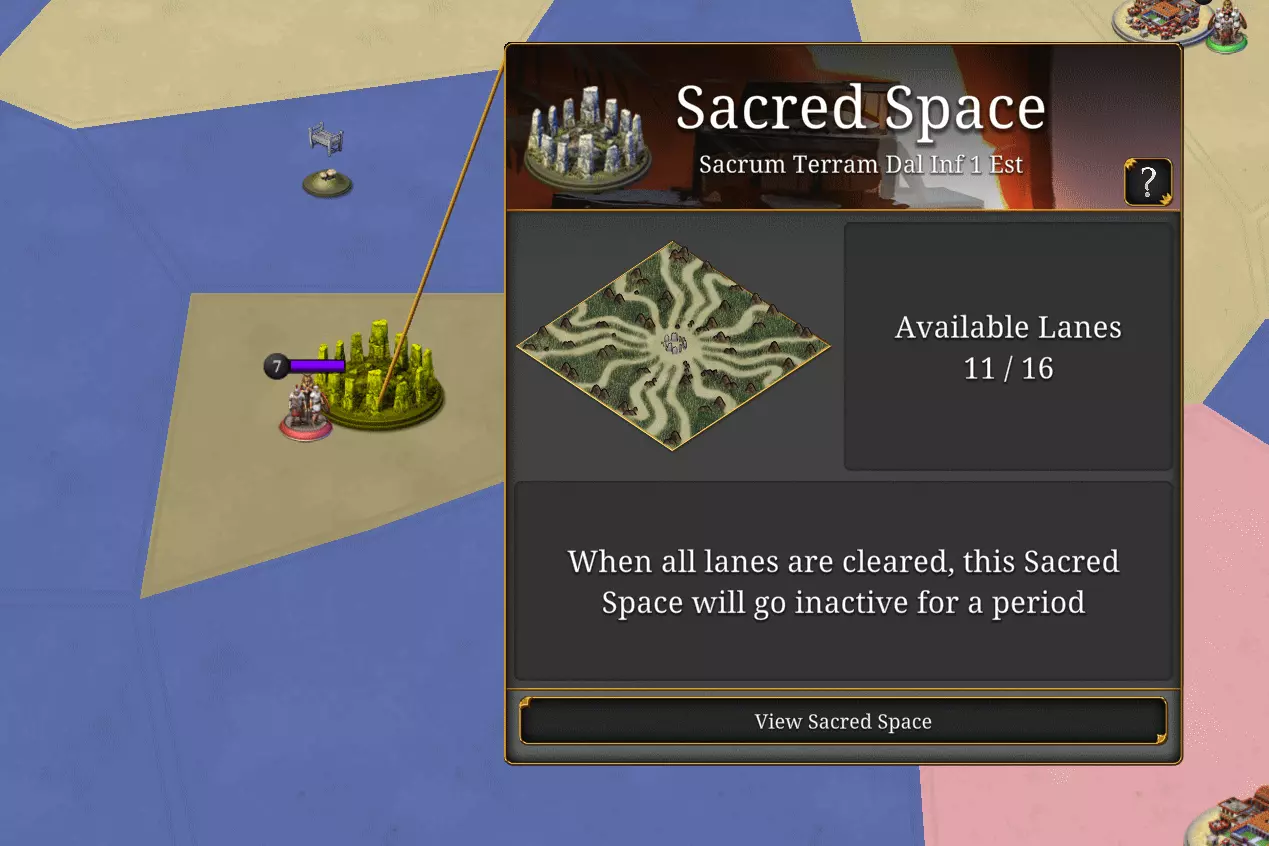 神圣空间 神圣空间为玩家提供击败蛮族的特殊奖励机会。 要攻击神圣空间,你必须派遣军团前往地图。