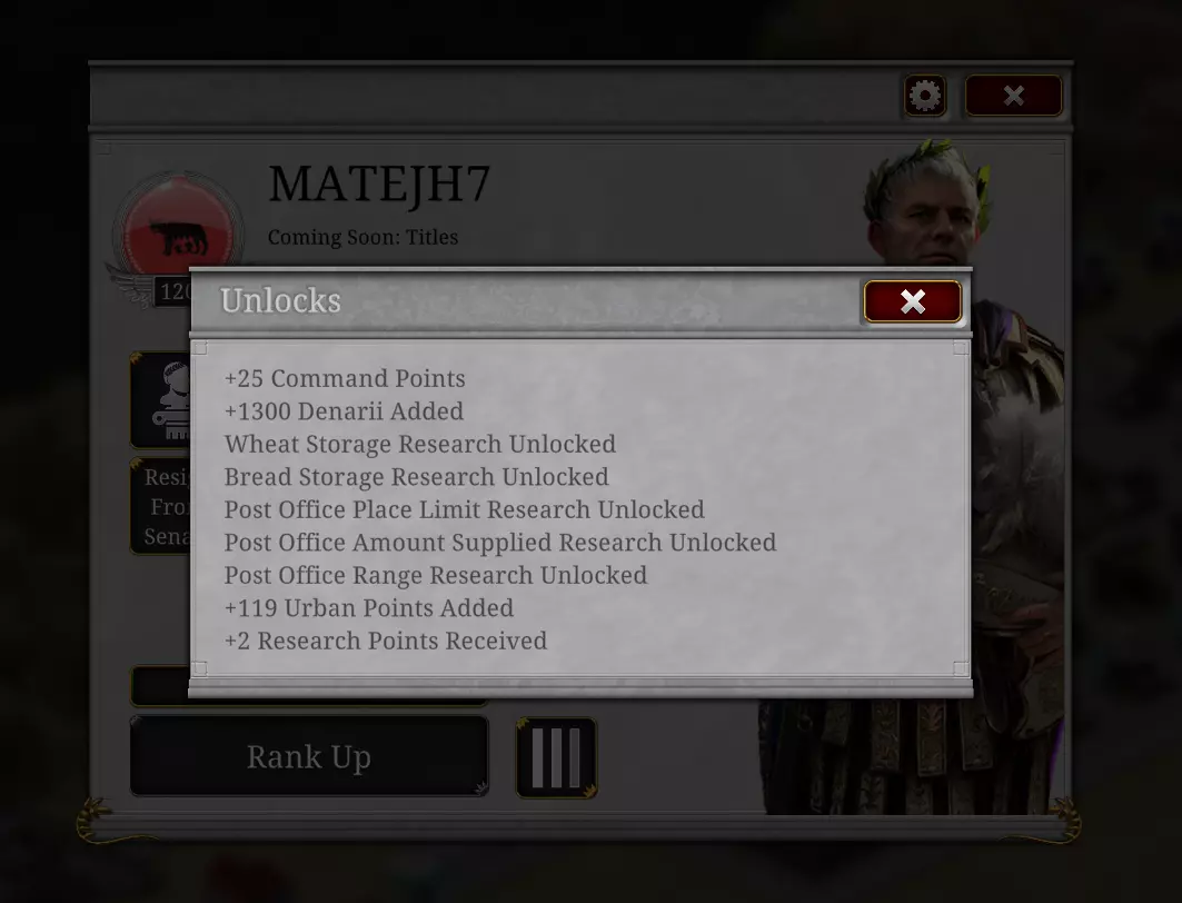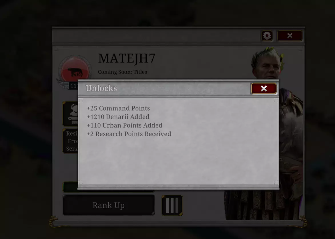 当你升级时,你将获得奖励(研究点、银币、CP和城市点数)