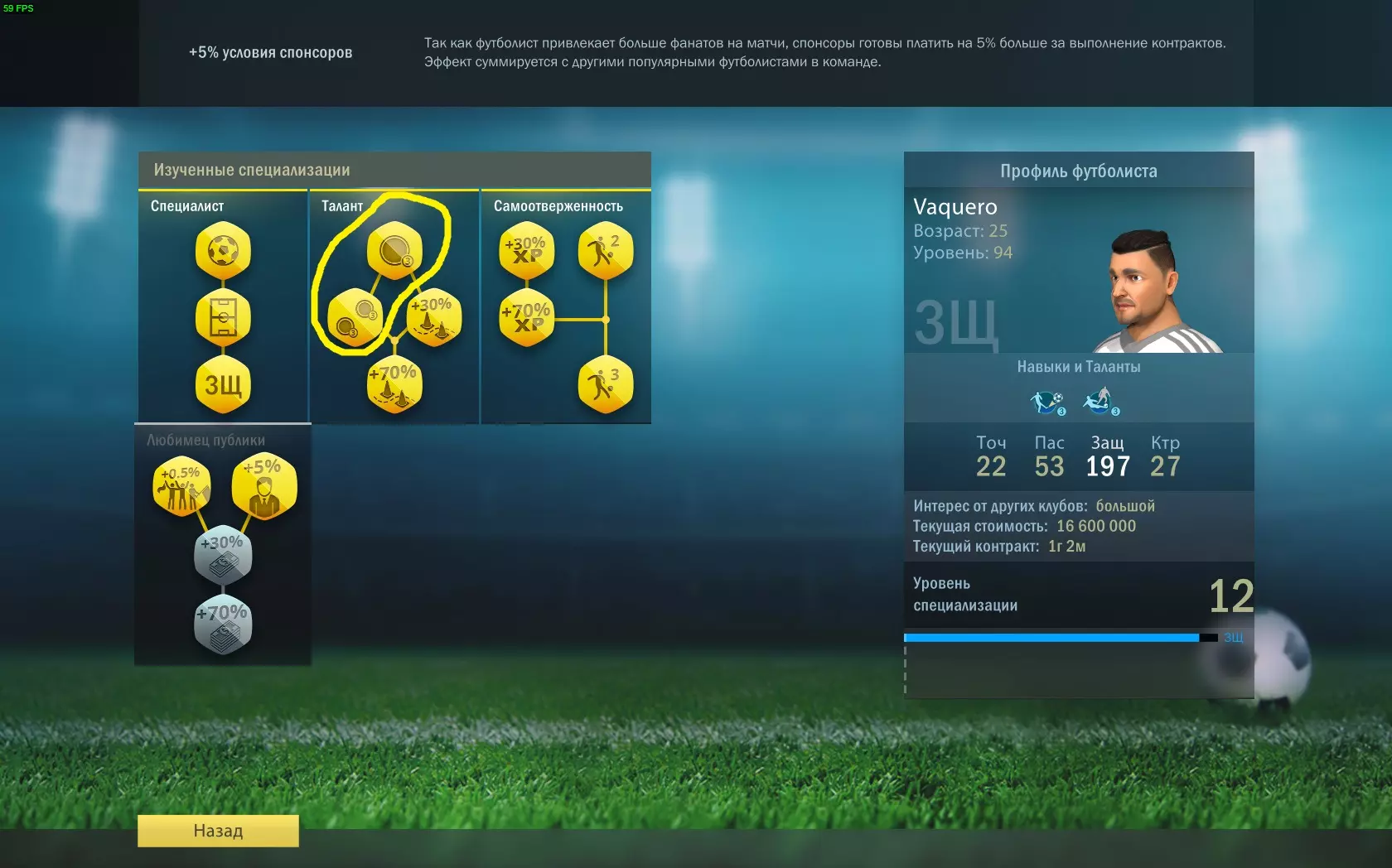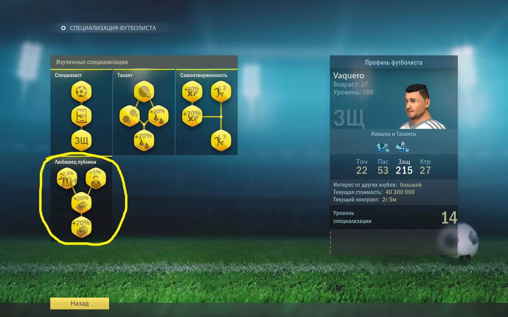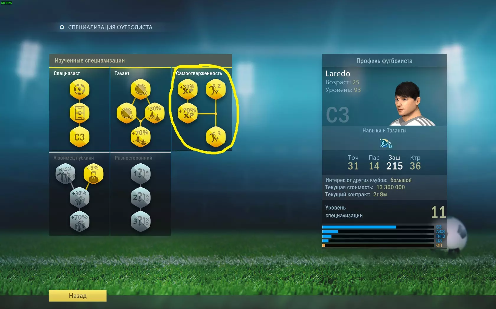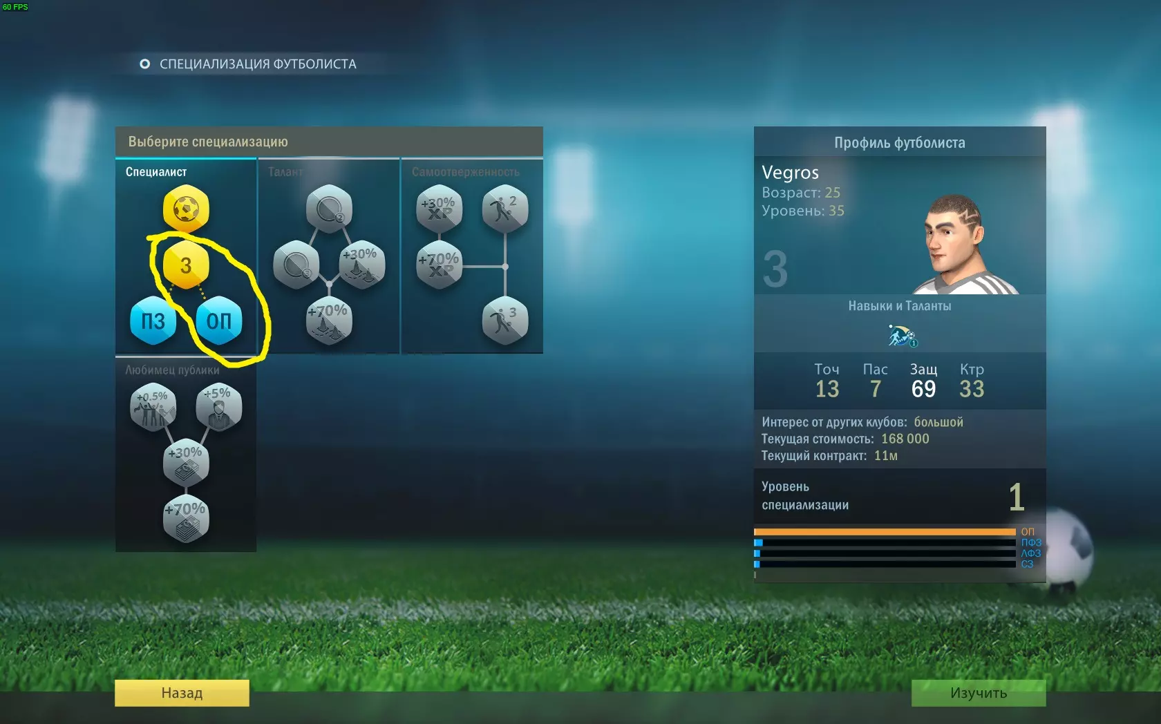 全能型 学习“全能型”专精的全部分支。 专精点数通过特定位置球员的成功行动获得。 需要在不同位置各达到1级专精。提升特定位置的等级后,你将能够在“全能型”专精分支中学习该位置。例如:防守型中场(ОП)、中前卫(ЦП)、左中场(ЛФП)、右中场(ПФП)。