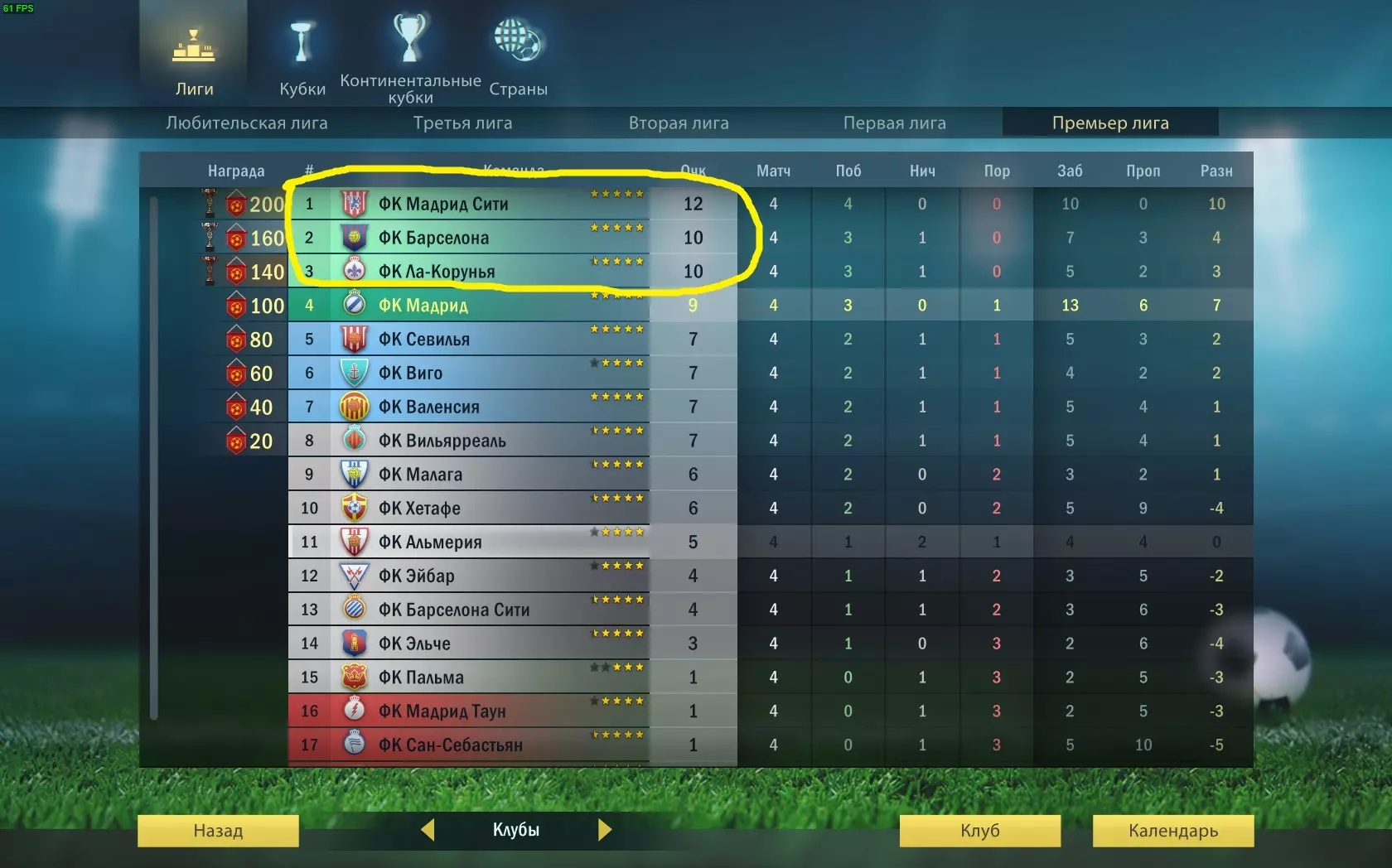 冠军3 在第三联赛获得第一名 参见成就"Владелец трофеев" 冠军2