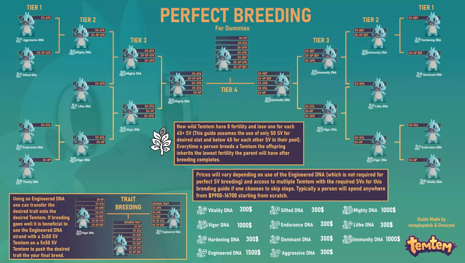 虽然你可以将任意两只腾兽放入培育中心,但必须放入正确的腾兽才能成功培育:游戏中将这两只腾兽称为“兼容”。要达到兼容,腾兽需要满足以下条件: 1. 两只腾兽必须共享一种属性,且只需共享一种即可。例如,巴布瓦(属性为自然和水)与赛帕特(属性为水和格斗)兼容,因为它们都具有水属性。 2. 两只腾兽需要为不同性别。正如腾兽培育师所解释的:“否则它们可能会玩得很开心,但你不会得到蛋。” 3. 两只腾兽都需要具有生育能力。生育能力在你的腾兽图鉴中以花朵图标表示,每当腾兽参与培育,花朵就会失去一片花瓣。当花瓣全部消失后,腾兽将失去生育能力,无法再用于繁殖。游戏机制设定中,拥有更高属性值的腾兽通常繁殖能力更低。 将两只相兼容的腾兽放入繁殖中心后,你需要离开并进行其他活动,经过约25分钟的现实时间,它们就会产下蛋。有趣的是,如果两只腾兽属于同一进化链,这个时间会缩短至15分钟,这意味着你可以更高效地进行繁殖。在这段时间过后,回到腾兽繁殖员处就能领取蛋。繁殖中心一次只能存放一个蛋,所以不要期待在等待一段时间后能一次性领取多个蛋——你每次只能领取一个。 获得蛋后,将其放置在你队伍中的空位即可。你可以将腾兽蛋存放在腾兽舱机器中,但存放在那里时它们不会孵化。一枚腾兽蛋需要长达45分钟的真实时间才能孵化,但具体时间因蛋内腾兽的种类以及它们在野外的捕捉难度而有很大差异。 孵化出的腾兽兼具随机性和可预测性元素。通过培育你队伍中强大的腾兽,你可以创造出更强大的队员——至少在它们失去繁殖能力,你不得不开始使用新的腾兽进行培育之前是这样。在本指南中,我也会展示如何通过培育获得满50个体值的腾兽。 如何获得满50个体值的腾兽 在了解培育机制后,让我们来了解如何获得满50个体值的腾兽。如果你不知道什么是个体值,可以查看相关指南。道具: 在右侧的培育中心可以购买腾兽装备,装备后进行培育时,有100%的概率遗传1到2项个体值。每个属性都有对应的单项道具,也有一些可同时影响两项属性的道具。 了解哪些属性可以组合后,你就可以规划培育组合了。可组合的属性为:HP与STA、ATK与SP ATK、SP DEF与DEF。遗憾的是,速度是个例外,没有与之配对的道具,但你可以通过仅遗传速度的其他腾兽来获得它。 培育组合: 接下来需要规划培育组合。例如: 雄性ATK(装备ATK道具)+雌性SP ATK(装备SP ATK道具)=拥有ATK/SP ATK的后代。 之后你可以用这个后代与……将携带攻击(ATK)遗传装备的腾兽与另一只拥有生命(HP)/耐力(STA)遗传的幼崽腾兽进行繁殖,后代将继承生命、耐力、攻击和特殊攻击(SP.ATK)这四项属性。 但要注意,每只腾兽最多只能进行8次繁殖尝试。你可以通过查看腾兽的属性面板,观察其中的树形图标来了解剩余的繁殖次数,每个叶片和茎干都代表一次繁殖尝试。 捕捉与培养: 了解了哪些腾兽组合繁殖效果较好后,就可以开始捕捉在各项属性中拥有50个体值(SV)的腾兽了,这些腾兽的属性类型应与你想要繁殖的目标类型相匹配。需要注意的是,如果你希望繁殖出特定种类的腾兽,那么必须拥有该种类的雌性腾兽作为繁殖母体。假设你想培育一只【钢克】,你需要捕捉任何你遇到的带有风元素或电元素且拥有可与其搭配的个体值的腾兽,但为了更轻松地培育,最好选择同一种腾兽,也就是另一只【钢克】。 培育: 现在你已经准备好所有腾兽,是时候开始培育了。以下是你需要做的大致步骤,所有这些都假设你已装备好相关道具: