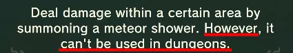 穿刺之光是一个相当不错的法术,拥有可观的伤害。问题在于其蓄力时间——在法术实际激活并开始对指定位置进行轰击前,大约需要3到4秒。 由于它的半径相当小(仅为【HWW】的四分之一),因此在很多情况下很容易打偏。说实话,尽管它能造成多次可观伤害,但你最终还是不会使用这个法术,只因那过长的蓄力时间会让你在实际战斗中失去兴趣。不过这仍然是一个很酷的法术。 评级:C+ - 可观的伤害 - 可观的射程 - 蓄力时间长 召唤陨石 - F-级