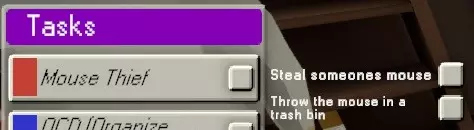 然而,一旦你真的把鼠标扔掉,任务就会完成,同时你也会失去拾取鼠标的能力。 但还有第三个条件,那就是当你的桌子上没有鼠标时,这才是真正的技巧所在。 核心原则 如果你的桌子上没有鼠标(比如有人偷走了你的鼠标),游戏就会允许你拾取鼠标来替换丢失的那一个。 因此,为什么不自己偷走自己的鼠标呢? 首先,你需要进行工作,完成任务直到获得【Mouse Thief】或【Where's the janitor?】。此时不要去拿别人的鼠标,而是拿起你自己的鼠标并扔掉。这样你就成功触发了无限拾取鼠标的能力,属于你的统治就此开始。地图知识很重要,因为你要时刻知道最近的垃圾桶在哪里。如果大厅开启了冲刺功能,那绝对会有帮助,这样你不到一分钟就能清理完一整个附属区域。 最重要的是要熟练掌握鼠标操作,以便快速把鼠标放进垃圾桶,然后“清空”垃圾桶。这会删除里面的东西,让愤怒的主人无法拿回他们的鼠标,从而把他们送到储藏室。 既然你已经知道如何做到这一点,就可以自由地把办公室里的每一只鼠标都捡起来扔进垃圾桶了。 进阶技巧 前面内容的唯一注意事项是,如果你是清洁工,这种情况通常发生在你偷了足够多的鼠标,摆脱了肉体形态并升华为神之后。清洁工在偷鼠标方面实际上反而更糟糕。由于你没有自己的办公桌,无法触发无限偷鼠标的效果,只能依赖不断收到的【清洁工去哪儿了?】任务。 不过,每30秒偷一只鼠标实在太逊了,而清洁工有一套不同的策略。 在无法避免的会议期间,你需要四处跑动收集尽可能多的鼠标,然后把它们扔到地上。这样不会触发【清洁工去哪儿了?】任务,一旦把所有鼠标都扔下,你就能快速将它们收集起来扔掉。 斯德哥尔摩是最好的地图。 当然,鼠标被偷后最简单的解决办法是从箱子里拿一个新的,但如果箱子找不到了该怎么办呢?得益于新斯德哥尔摩地图外部区域的新增,你可以非常轻松地将所有老鼠盒子藏在外面。最简单的方法是把它们通过厨房带到外面的楼梯,或者从楼下女洗手间的门出去。把它们藏在这条小巷的任何地方,如果能拿到钥匙就锁上门,然后开始洗劫办公室。 什么鬼,真的有老鼠?