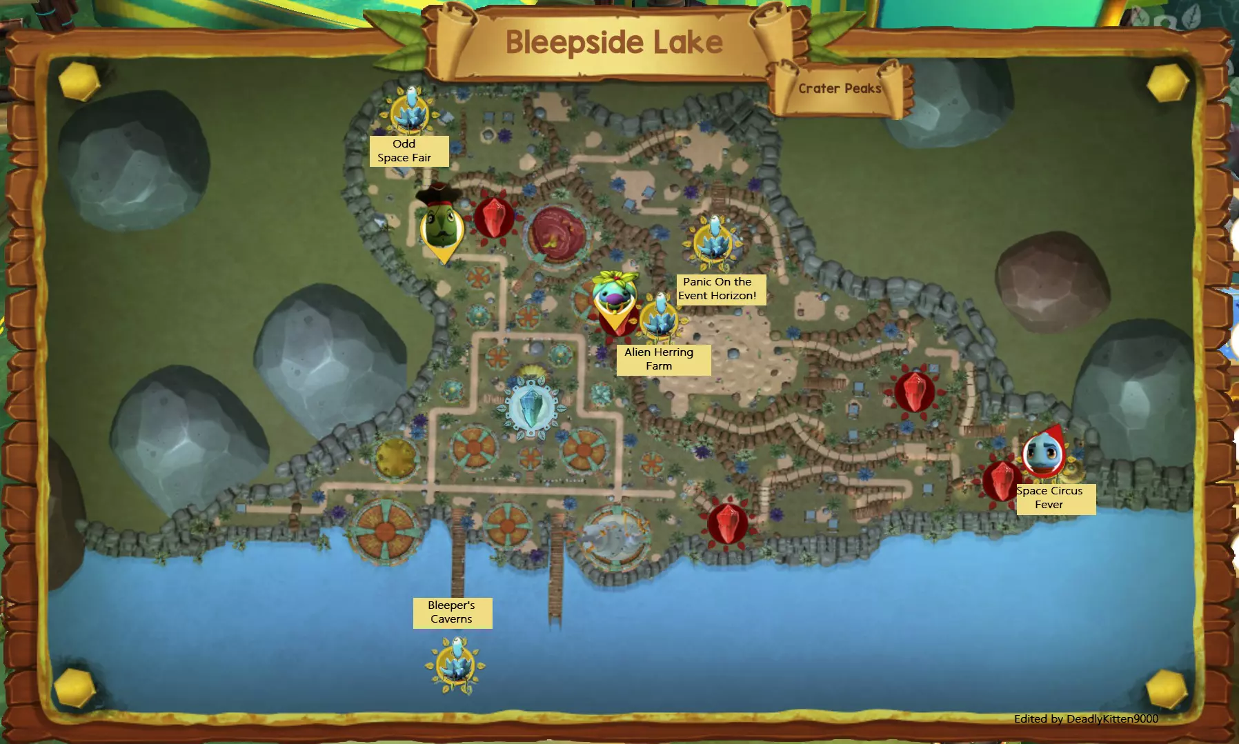 以下是三个枢纽世界的地图:洛林镇、火山口峰和哔哔湖畔。我之所以制作这些地图,是因为在其他地方都找不到。我还在地图上标记了各个区域的名称,这样你就能轻松判断应该前往哪个方向。所有图片都可以点击放大。 洛林镇地图