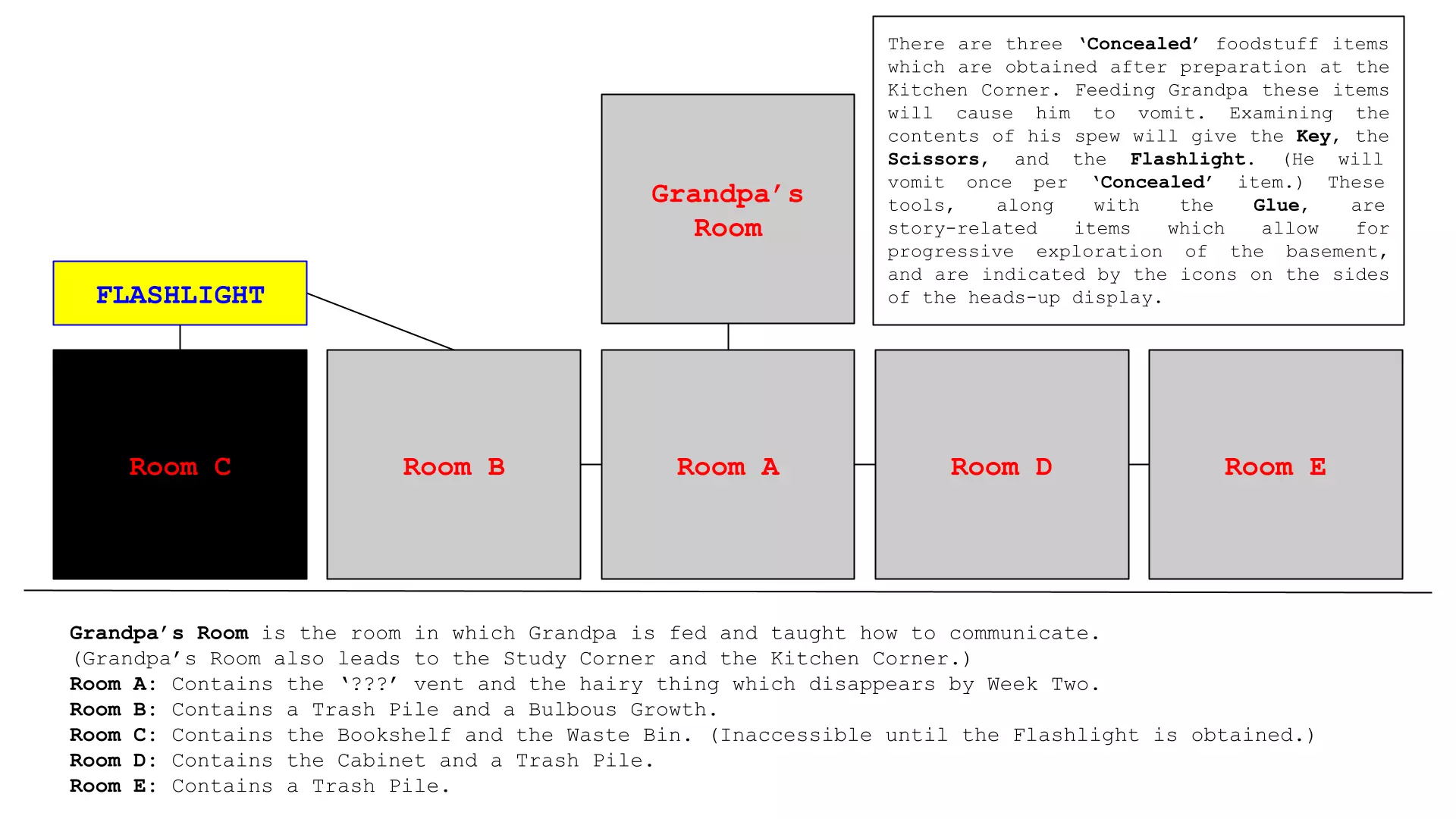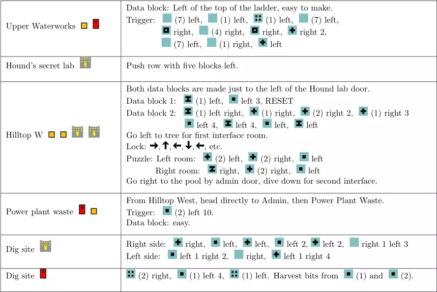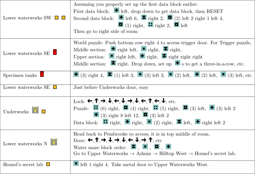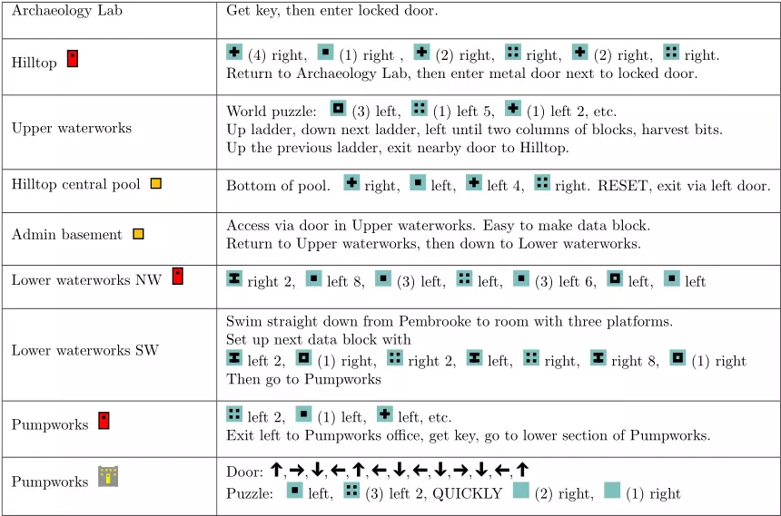 攻略速查表 以下速查表总结了游戏路线,包括所有谜题的解法。你可以查看下方的截图。如果有任何不清楚的地方,或遇到无法正常运行的情况,请参考视频。
