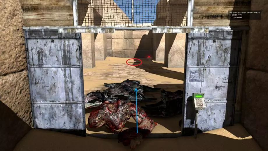 在带绿色指示灯的格栅门(此门通往“山脉”入口)旁边,墙上刻有一块带文字的牌匾。 文字内容:曾有预言:当预言之时到来,知晓之人将带来箭矢,封印便会瓦解。