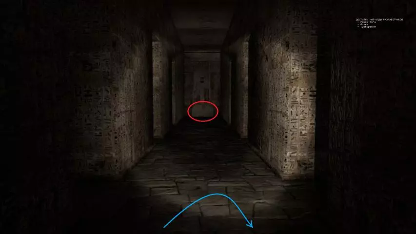 当你面临向左走进入死胡同或向右走向迷你枪的选择时,请向左走。在那里的房间墙上有一块牌子。 内容:神谕曾说:奥西里斯的敌人将给人类的土地带来毁灭。唤醒万年飞船的时刻即将到来。