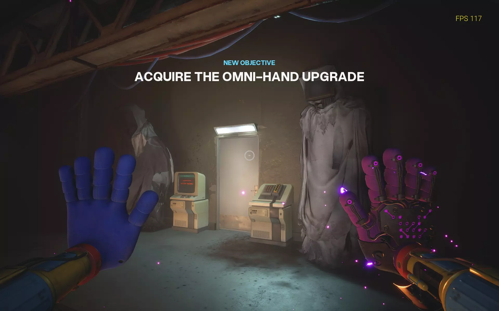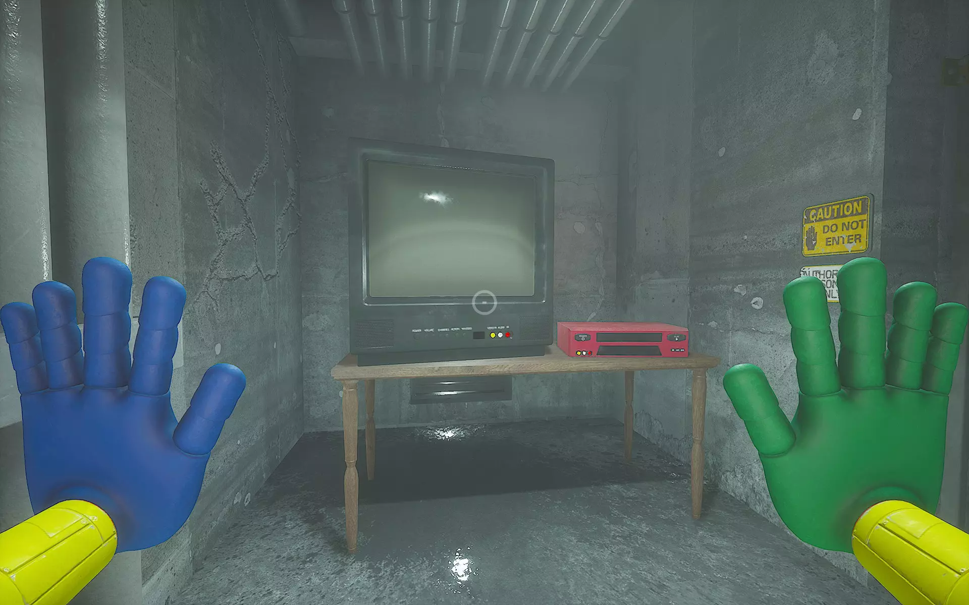 Avid Listener(1/16):闪光手安全视频 正常推进游戏,直到你抵达一扇黄色大门,这扇门需要用【闪光手】才能打开。大门左侧有一个房间,里面既有录像带也有录像机。