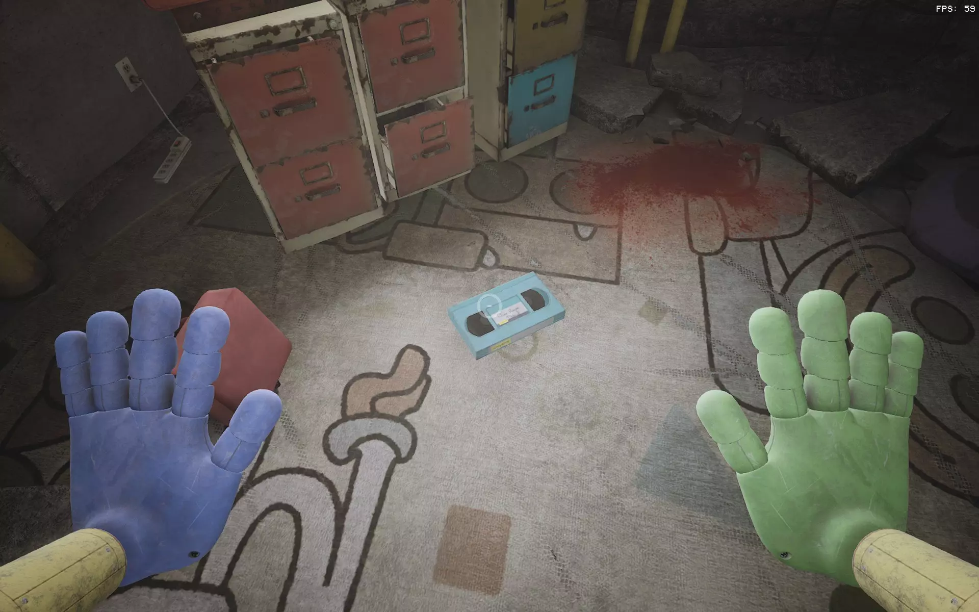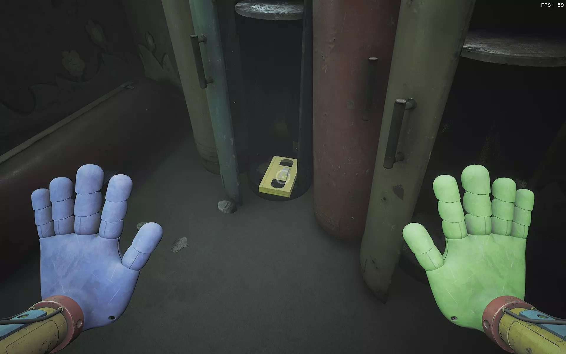 Avid Listener (1/10):克莱尔·哈珀的汇报 第一盘磁带位于休息室的垃圾压缩区(游戏开始时猫 nap 将你扔进压缩机的房间)。录像机就在它旁边。