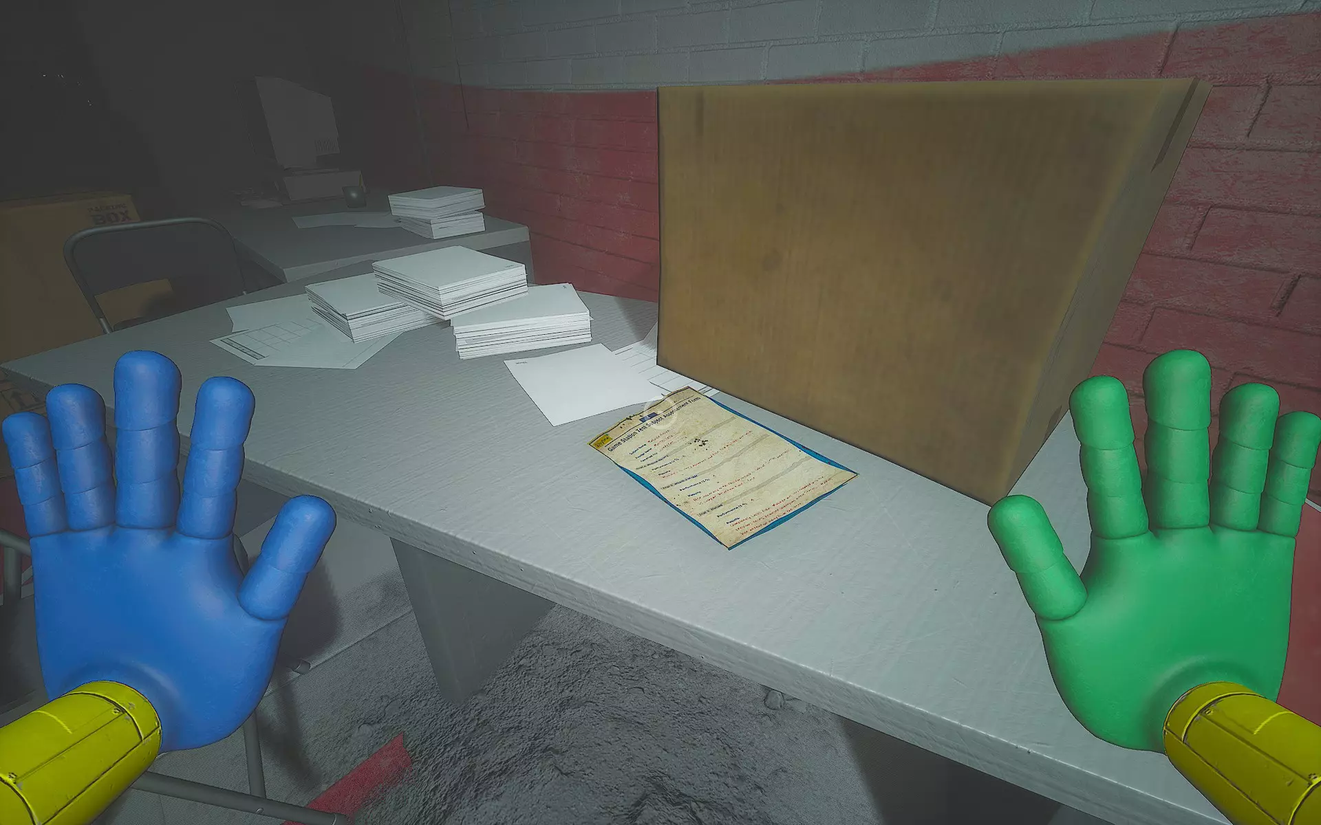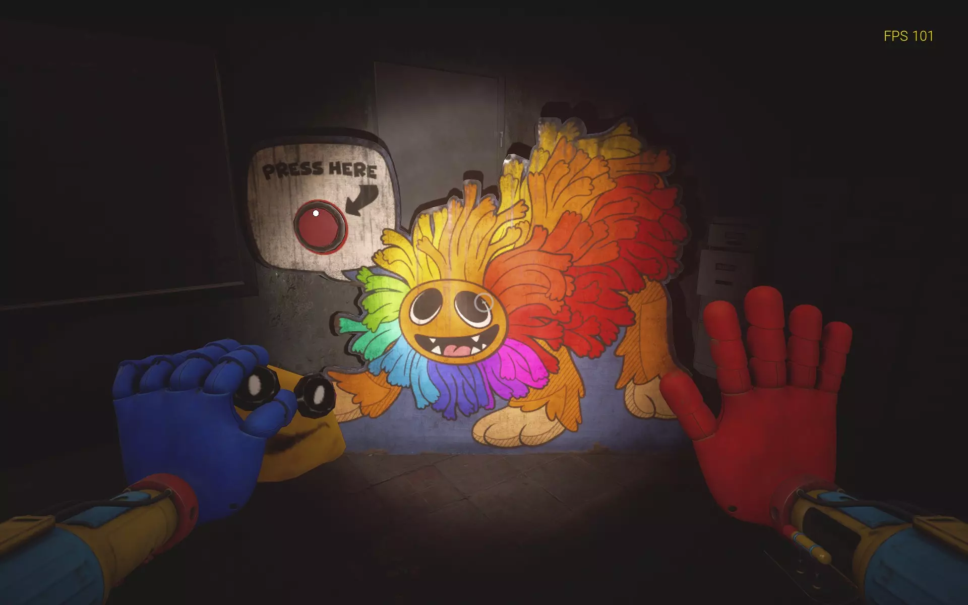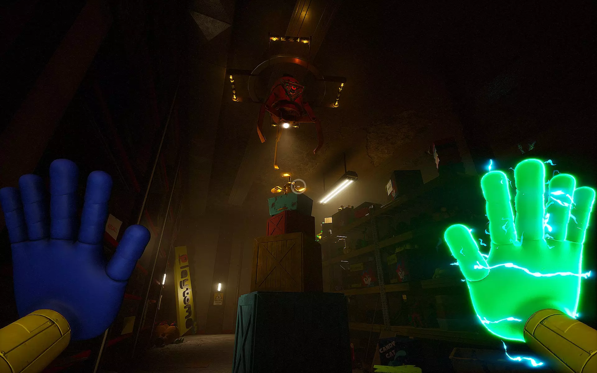 哇哦!前往仓库,你会发现一个纸箱。用火焰手烧掉它,会跳出一个DogDay玩具对你进行JumpScare(别担心,这个JumpScare不会致命)。