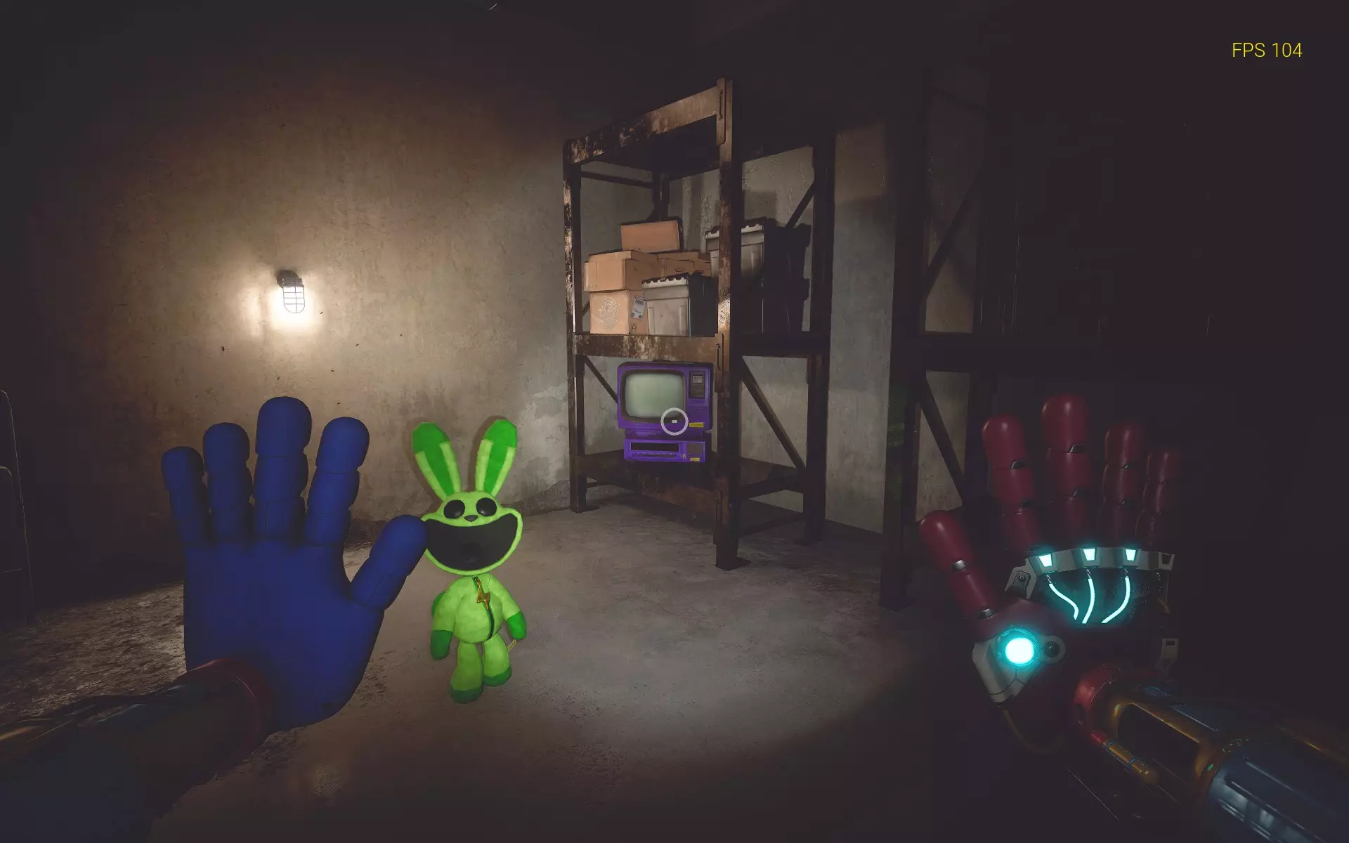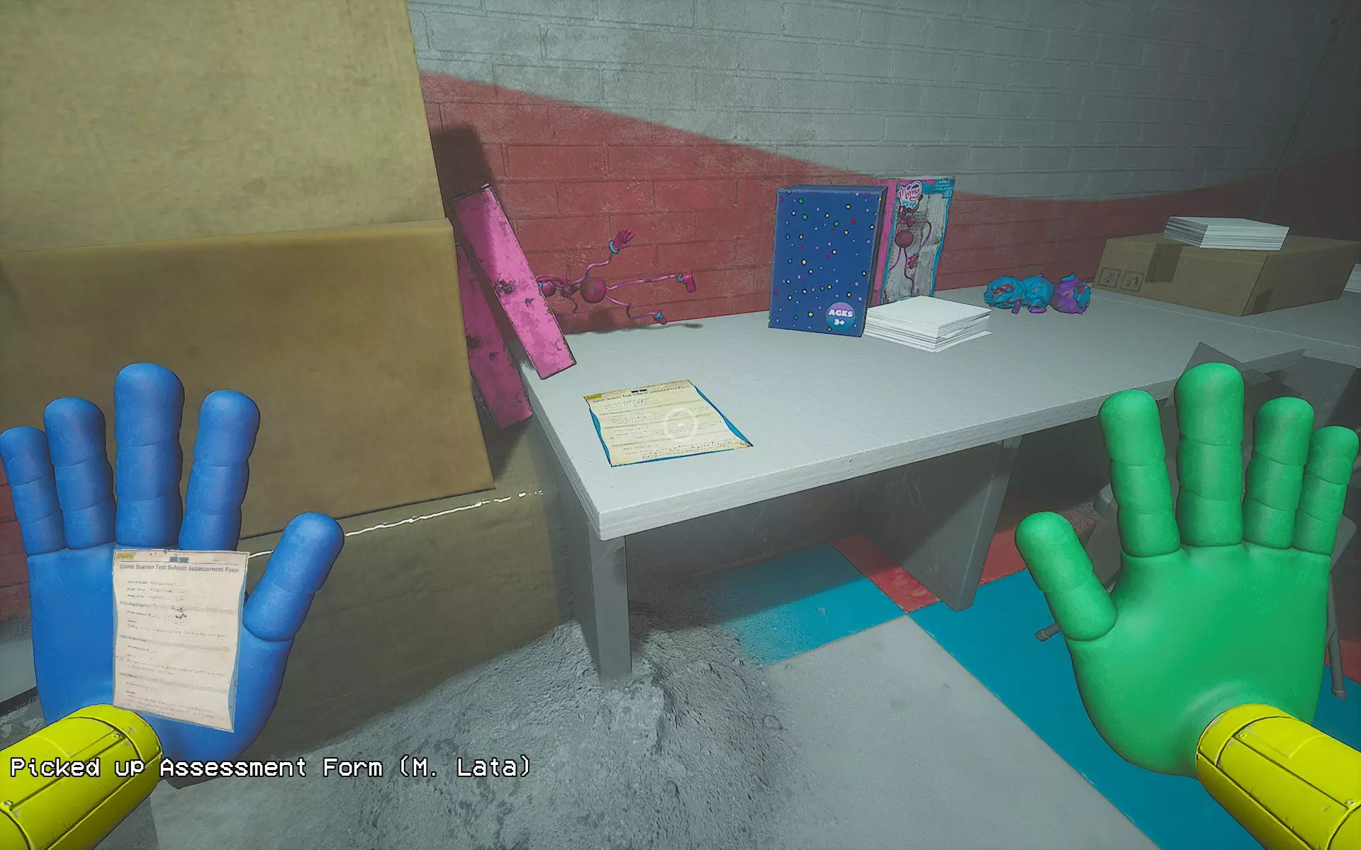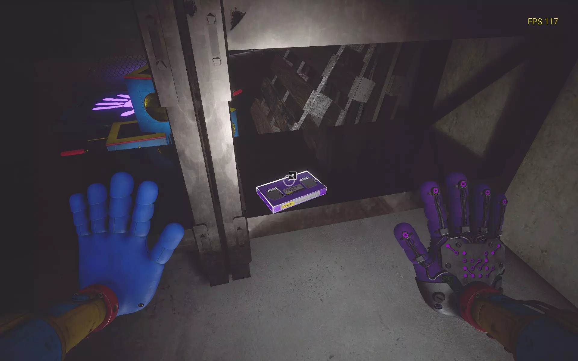 哇哦!前往仓库,你会发现一个纸箱。用火焰手烧掉它,会跳出一个DogDay玩具对你进行JumpScare(别担心,这个JumpScare不会致命)。