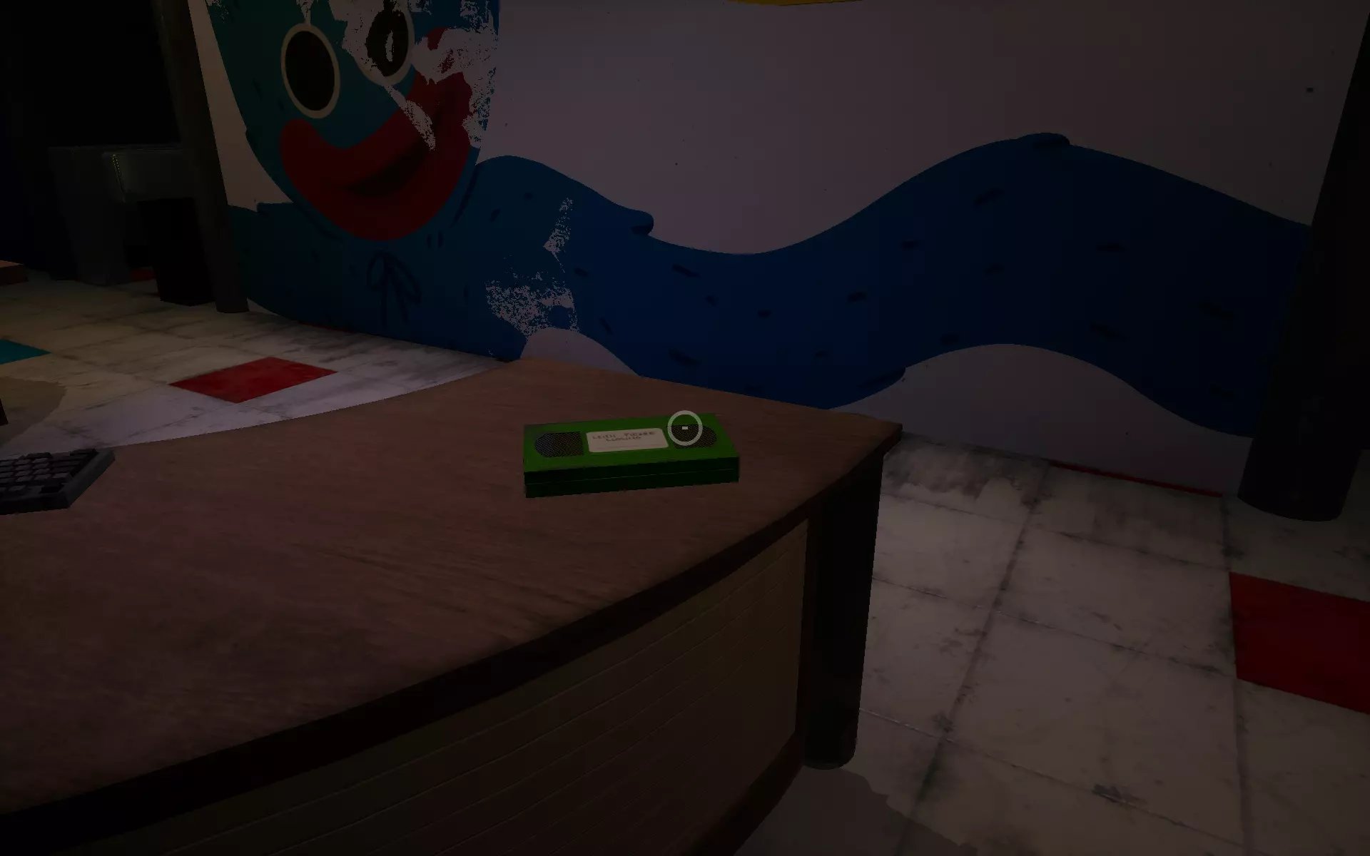 Avid Listener(11/16):实验#1354 在毒气迷宫解谜房间中,你可以在其中一个没有红色毒气的房间内找到磁带。进入该房间的门是蓝色的。房间里有一个跳跳蛙毛绒玩具(不过我记得在第一次游玩时是泡泡象毛绒玩具。也许每次游玩出现的毛绒玩具都不同?我之后会确认)。录像机位于毒气迷宫的另一个房间里,进入该房间的门是红色的。
