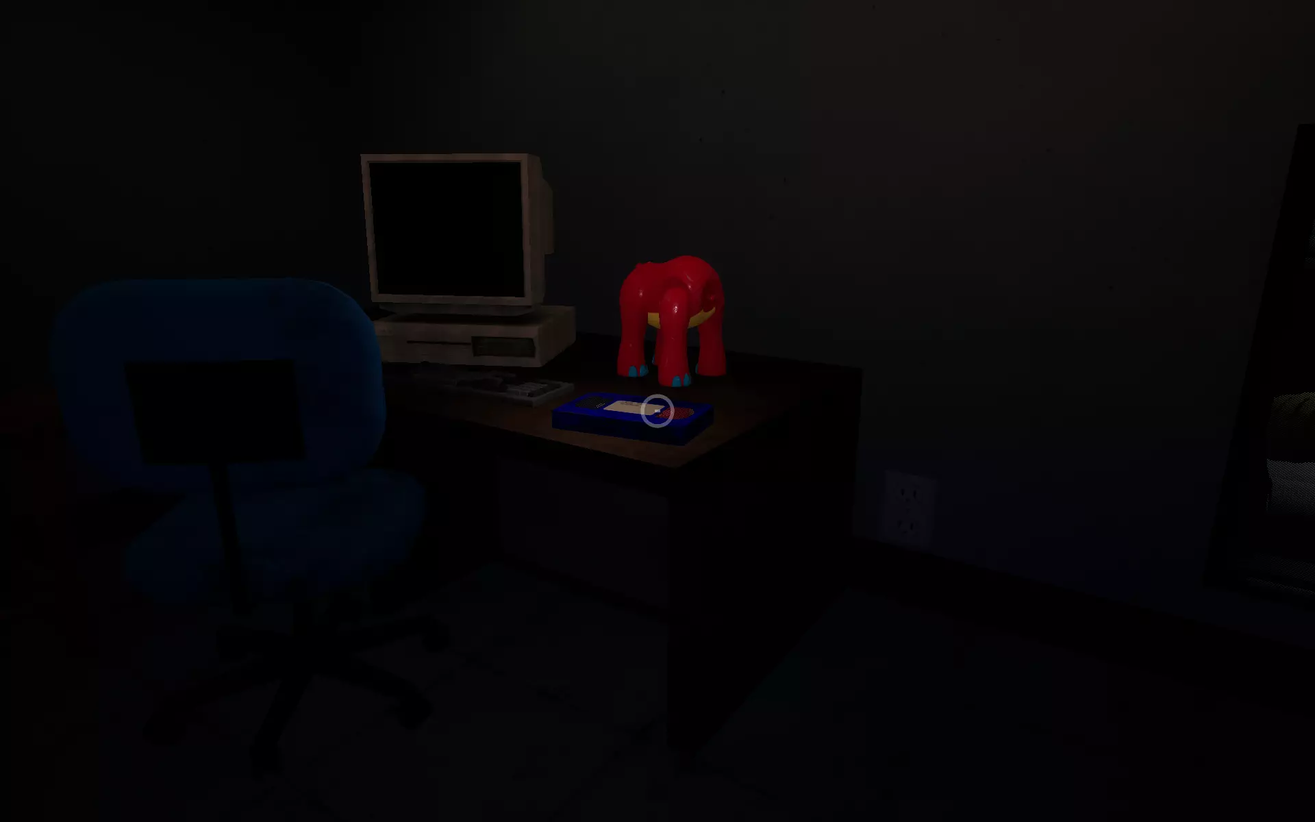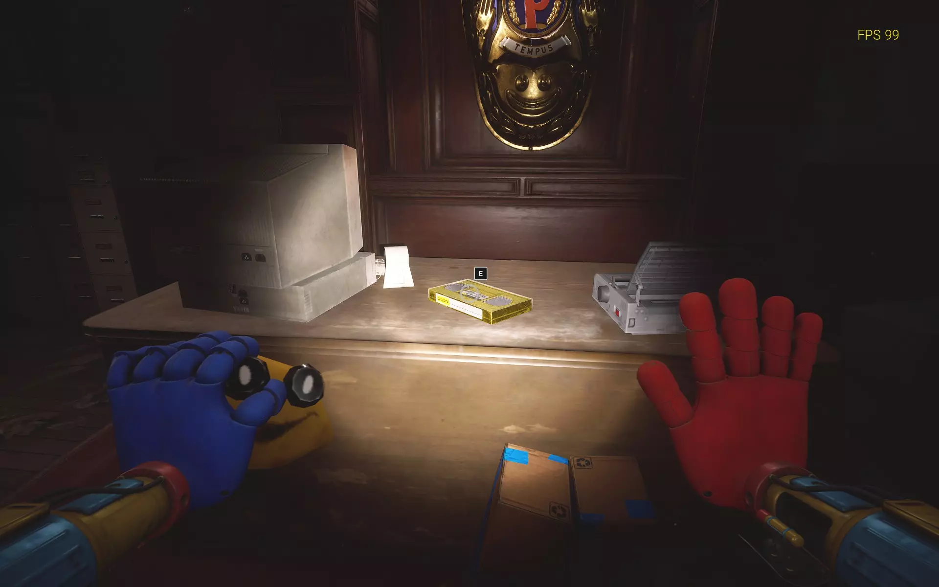 Avid Listener (2/5):抓取包训练 进入安保室后,你会在一张桌子上找到第二盘磁带,旁边是一个损坏的布朗玩具。录像机就在它旁边。
