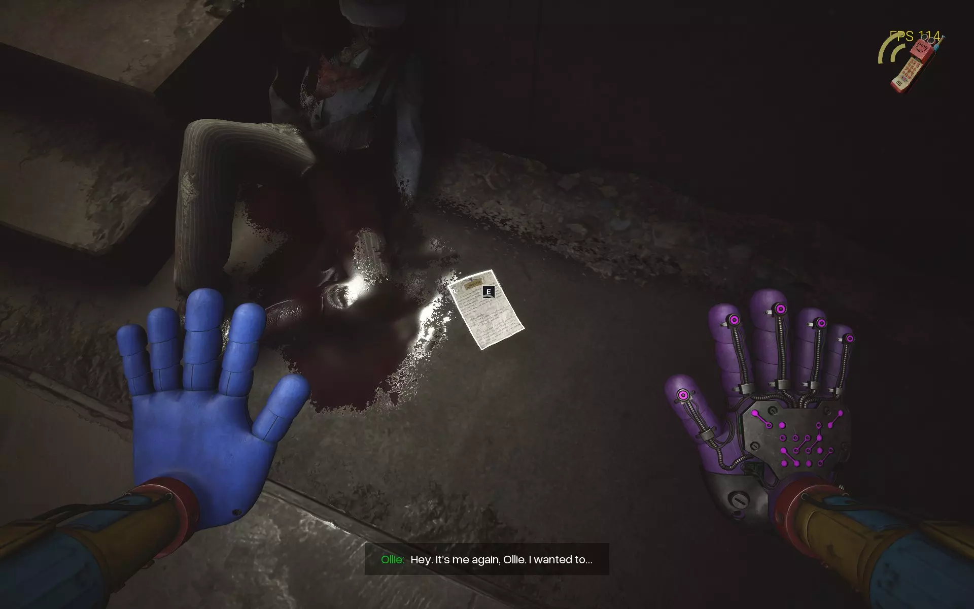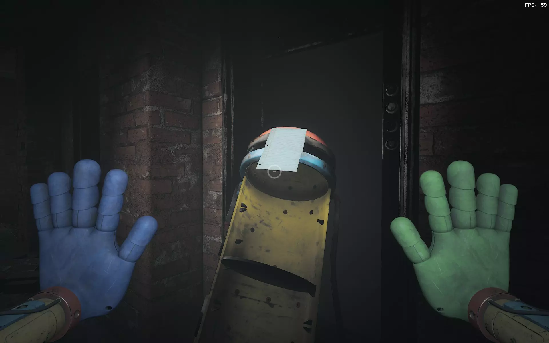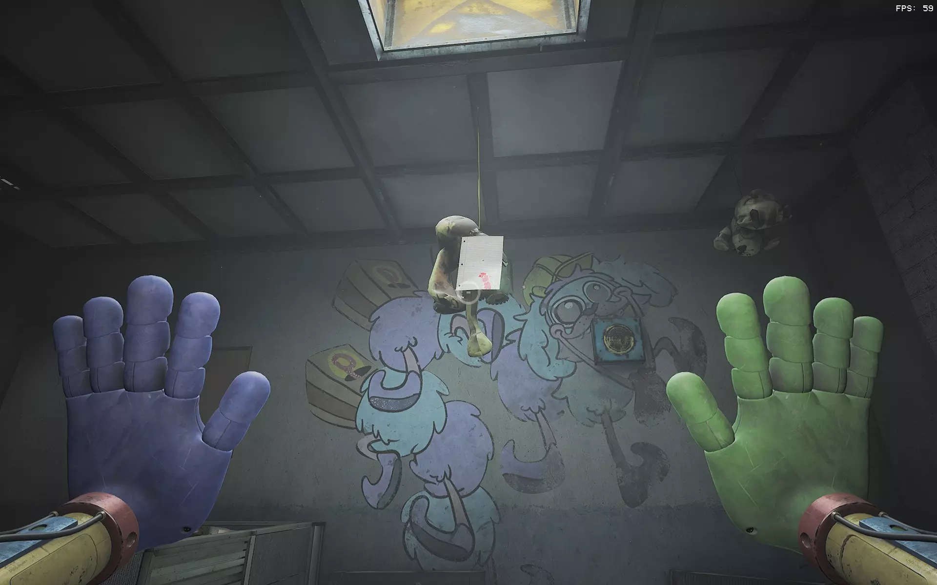 笔记4:你最终会看到喜悦小姐从门的另一边走来。之后你会进入其中一个侧室,看到一个死掉的布佐玩具挂在通风口上。这张笔记就附在他身上。