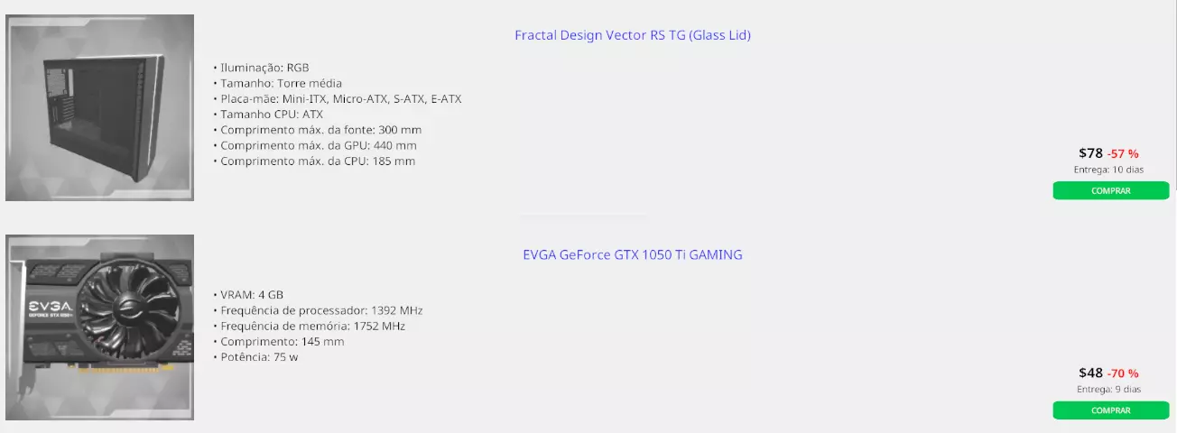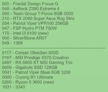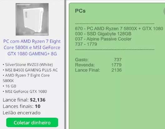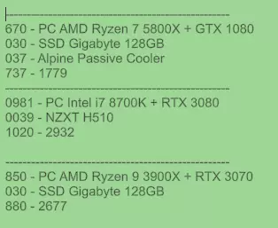PT - 该买什么 既然我们已经知道如何买卖,现在来谈谈最重要的……该买什么? 请记住,目标是用二手零件组装电脑并在PC Bay上出售,同时还要有零件来维修从PC Bay购买的故障电脑。 - 二手零件: 购买二手零件通常是划算的,但有几点需要注意。 处理器几乎不会出现; CPU散热器经常出现; 主板偶尔出现; 内存偶尔出现; 显卡经常出现; SSD/M.2偶尔出现; 电源偶尔出现; 机箱经常出现; 散热器偶尔出现; - 应避免的 高成本处理器(例如线程撕裂者处理器; 针对高端处理器的主板,由于这类处理器在电脑商城中很难出现,你可能需要购买全新的,这样会损失利润; 低于GTX 1070/RX 580或RX 5500的显卡; 低于450瓦的电源; 小型机箱; 所有机箱散热器; - 故障电脑: 值得购买。通常会有可观的折扣,折扣幅度超过60%,而且有时故障部件的更换成本很低,可能会带来3倍于投入成本的收益。 可以通过标题“故障电脑含...”来识别它们。 - 正常运行的电脑: 不值得购买。通常折扣很小,出售时可能会亏损。 故障电脑/正常运行电脑示例: