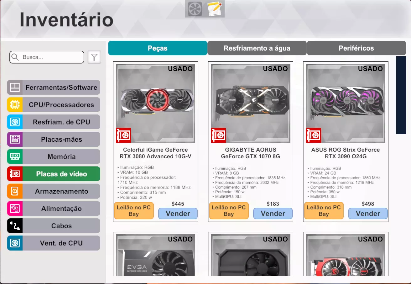 关于PC湾的完整指南——一个赚钱的强大工具! 介绍 欢迎!本指南将分为两种语言,英文部分仍在制作中。 本指南将向你介绍名为【PC湾】的二手零件买卖商店。 该商店是游戏内一个强大的赚钱工具,正确使用它将帮助你获得游戏内的一些成就,它们是: Sentado numa fortuna - 拥有价值200,000美元的库存(隐藏成就) Que tal abrir uma franquia? - 银行存款达到1,000,000美元 它还能帮助你获得另外两个成就: Acumulador - 库存中拥有所有可能的零件 Então é por sua causa que os preços estão altos? - 库存中有100个显卡