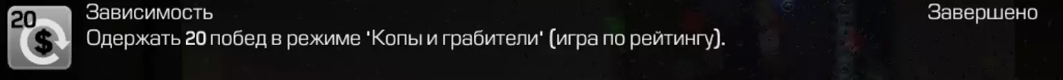 补充说明:车辆驶离时,你在车上的情况下,同样会计入1.5分钟的时间! 方法一(依靠技能): 玩家人数:1人及以上 地图:干船坞 模式:脆弱联盟 按照视频攻略操作,但建议不要独自硬撑,请求队友帮忙沿着同一路线射击敌人。最重要的是,当你第一个跑到车辆旁时,一定要按下Q键。多名玩家可同时获得成就,前提是精准射击并留意计时器。无需收集金钱! 第二种方法(快速): 玩家人数:1人及以上 地图:无线电塔 模式:警察与劫匪 运用“穆赫塔尔”成就中的阿尔法小队战术,沿着左侧路线前进,但要消灭部分碍事的敌人。之后迅速冲向车辆,坐进车里后务必立即按下Q键。已添加第二种方法,因为我们团队中的一名玩家在更长时间地研究和刷取【依赖】成就期间成功解锁了该成就。此方法是否有效,请在评论区告知。 狗的快乐