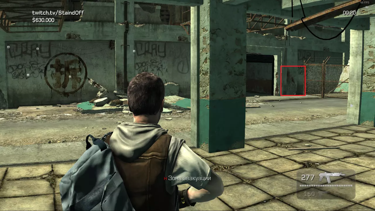 玩家数量:5人及以上 地图:无线电塔 模式:警察与劫匪 关联成就:Sобачьи консервы 获得成就的队伍:贝塔队 每轮每名玩家平均击杀数:14-21 阿尔法队(劫匪)行动: 研究地图并找到所有煤气罐(共10个); 沿着左侧路线奔跑!找到一条能从敌人身边经过且不击杀任何人的路线; 两名玩家在二楼捡起两个最近的气瓶,将它们扔向照片中的柱子或身后的栅栏,然后站到角落里(红色矩形区域); 不要忘记按回车键快速复活。贝塔小队(警察)行动:研究地图并找到所有10个煤气罐;第一名玩家从左侧出口拿起最近的煤气罐,冲向角落用它攻击其他玩家,并射击阿尔法小队留下的其他煤气罐;第二名玩家从二楼右侧拿起最近的煤气罐扔下去,再拿起第二个煤气罐,将其存放起来供第一名玩家使用;或者第二名玩家直接带着煤气罐前往第一个玩家和你轮流前往最近的气球(厕所、地窖、坑洼),之后进行常规射击;当阿尔法玩家出现时,务必等待1-2秒的无敌时间,然后再射击。 阿尔法小队(警察)的行动: 挂机、互相唱歌、表白……贝塔小队(劫匪)行动: 两名玩家需爬到二楼栅栏间的缺口处,当屏幕变为深红色时——跳跃(快速死亡)。 提示/漏洞修复: 1. 如果贝塔小队玩家看不到气瓶,那么阿尔法小队玩家(被气瓶炸死的玩家)必须将其拿在手中。 2. 如果贝塔小队玩家开始朝180度方向射击,让他蹲下并转向相反方向。阿尔法小队需要确定方向并前往交火地点,同时需要亲自拿起油罐并指挥贝塔小队玩家的火力。 3. 如果贝塔小队玩家出现灰色屏幕,应立即重新创建大厅。 依赖关系