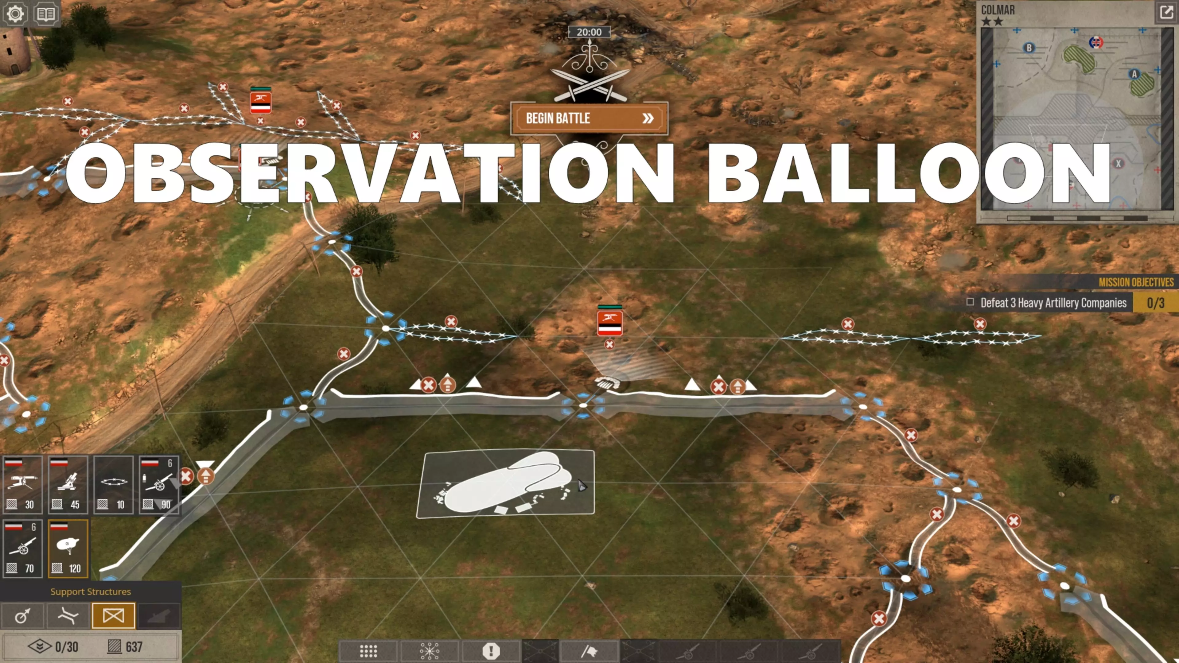 第三件事是在中心位置部署一个观测气球,帮助我监视整个无人区,了解敌人从哪里发起进攻,当然还要用我自己的炮火减缓敌人的进攻速度并压制他们。