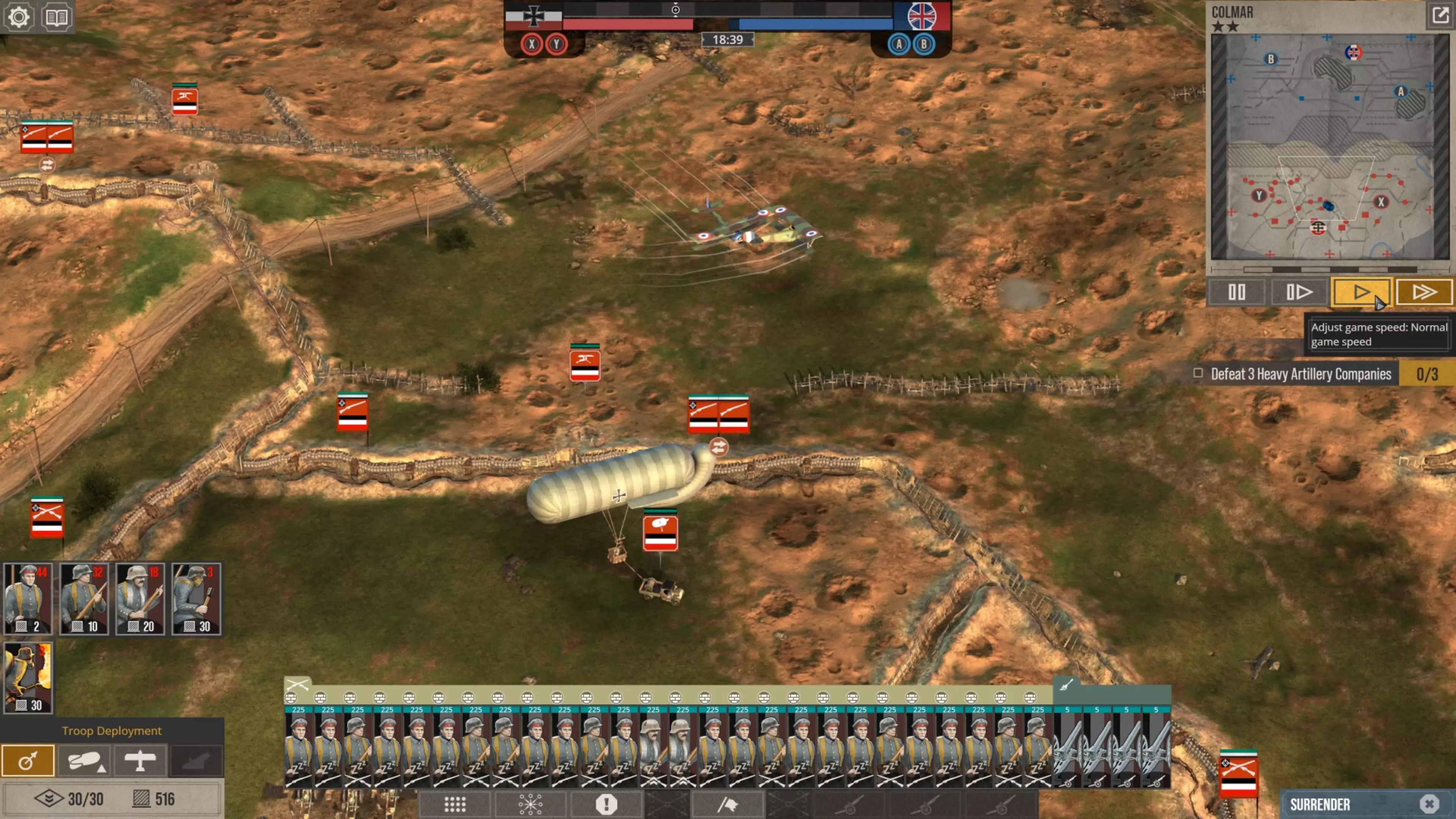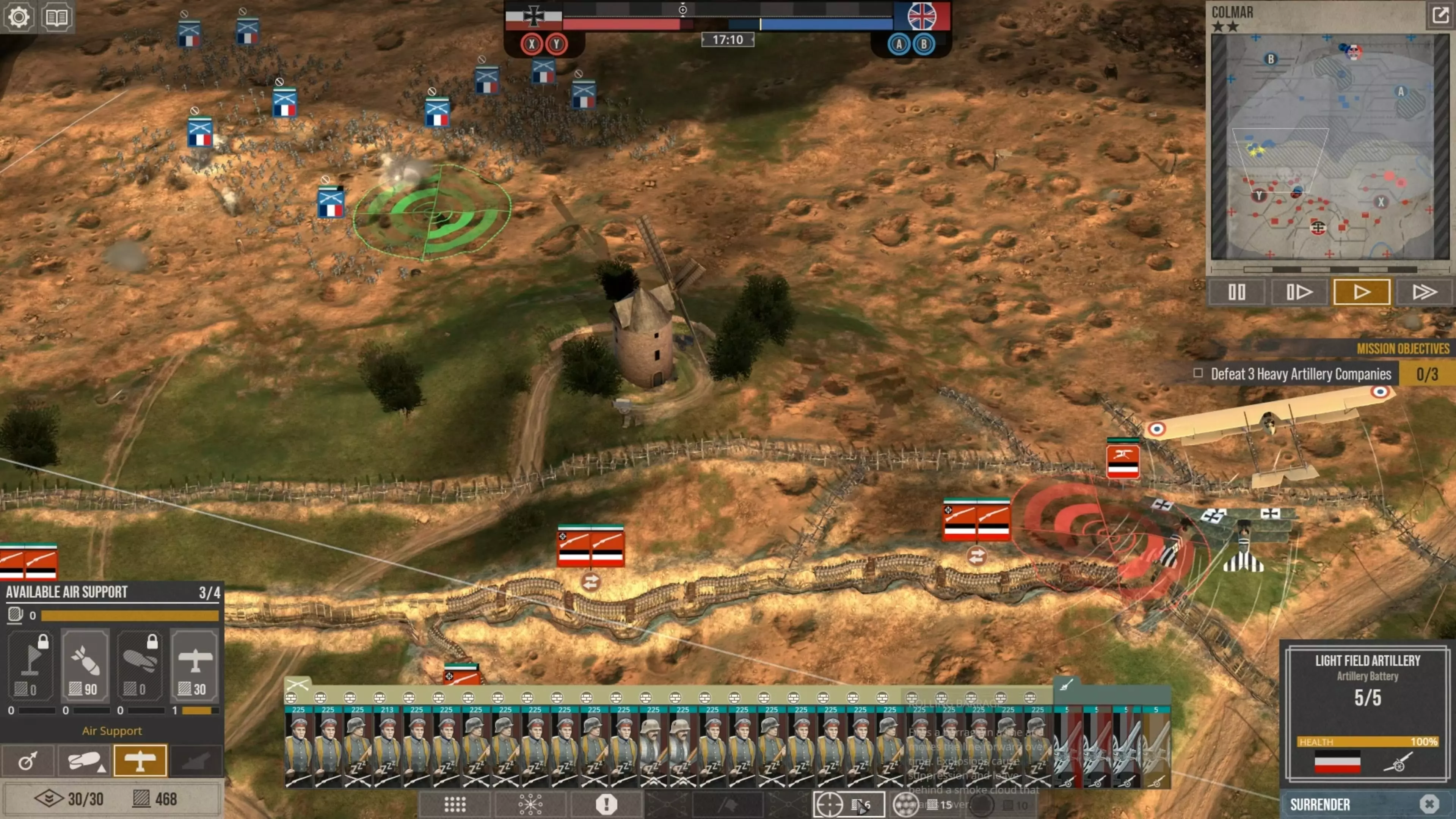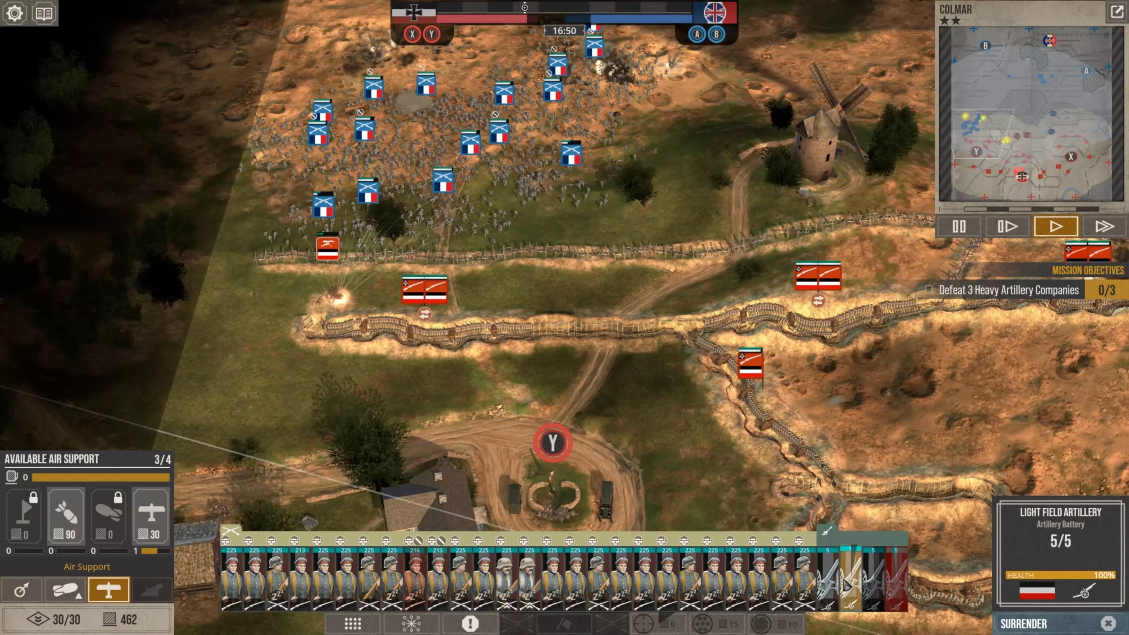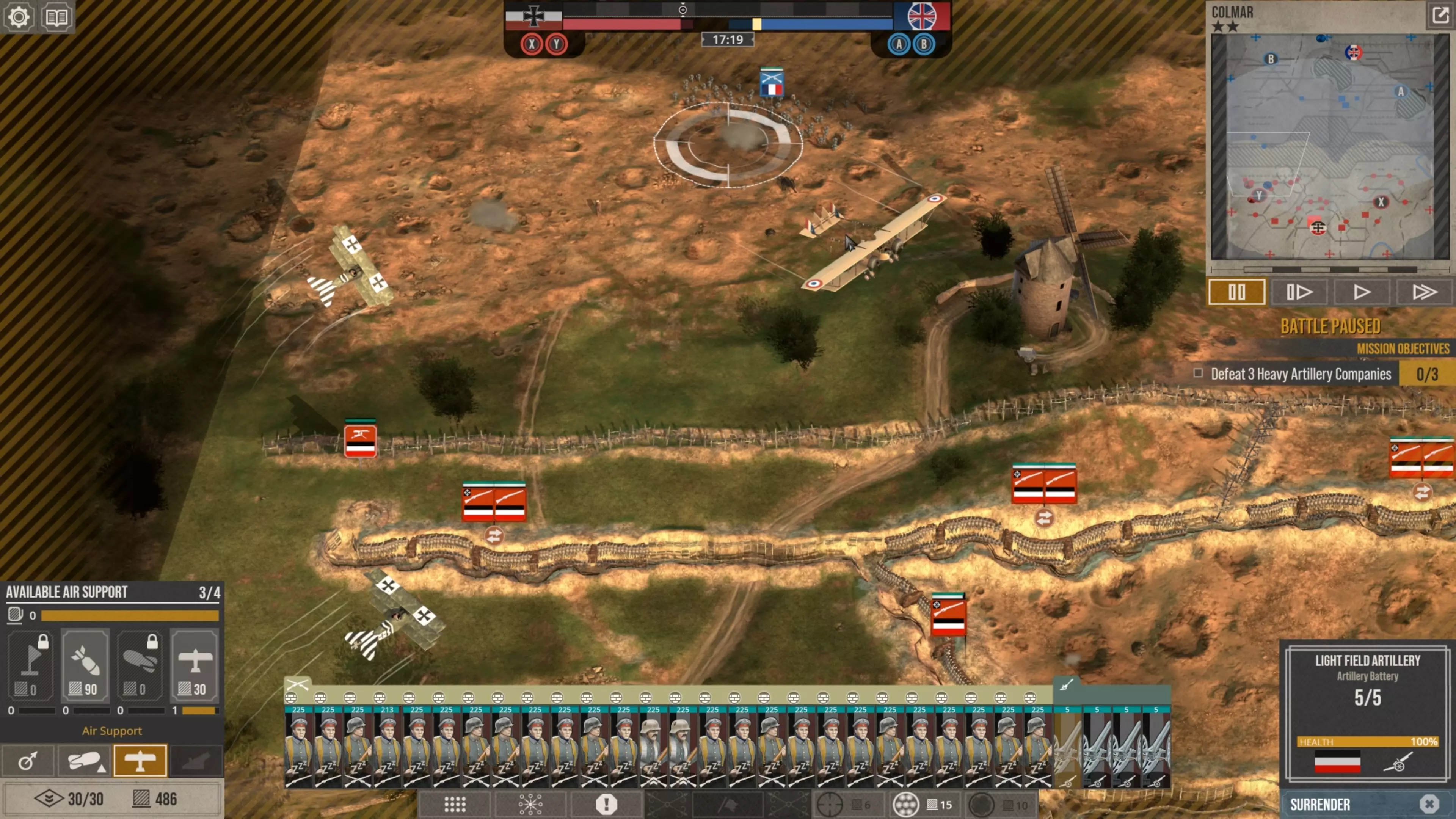 这会让他们消耗的补给点比你部署它们时还要少,而且当它们被半个地图外的炮火轰击时,你根本无法让它们开火。所以在这款游戏中防守时,你实际上必须采取一种与你对这种一战风格策略游戏可能设想的截然不同的防御方式。
