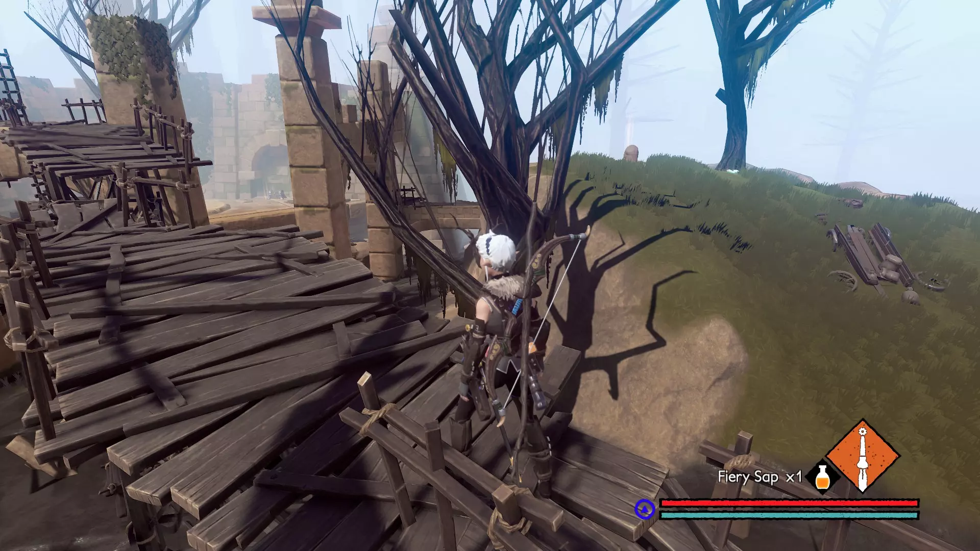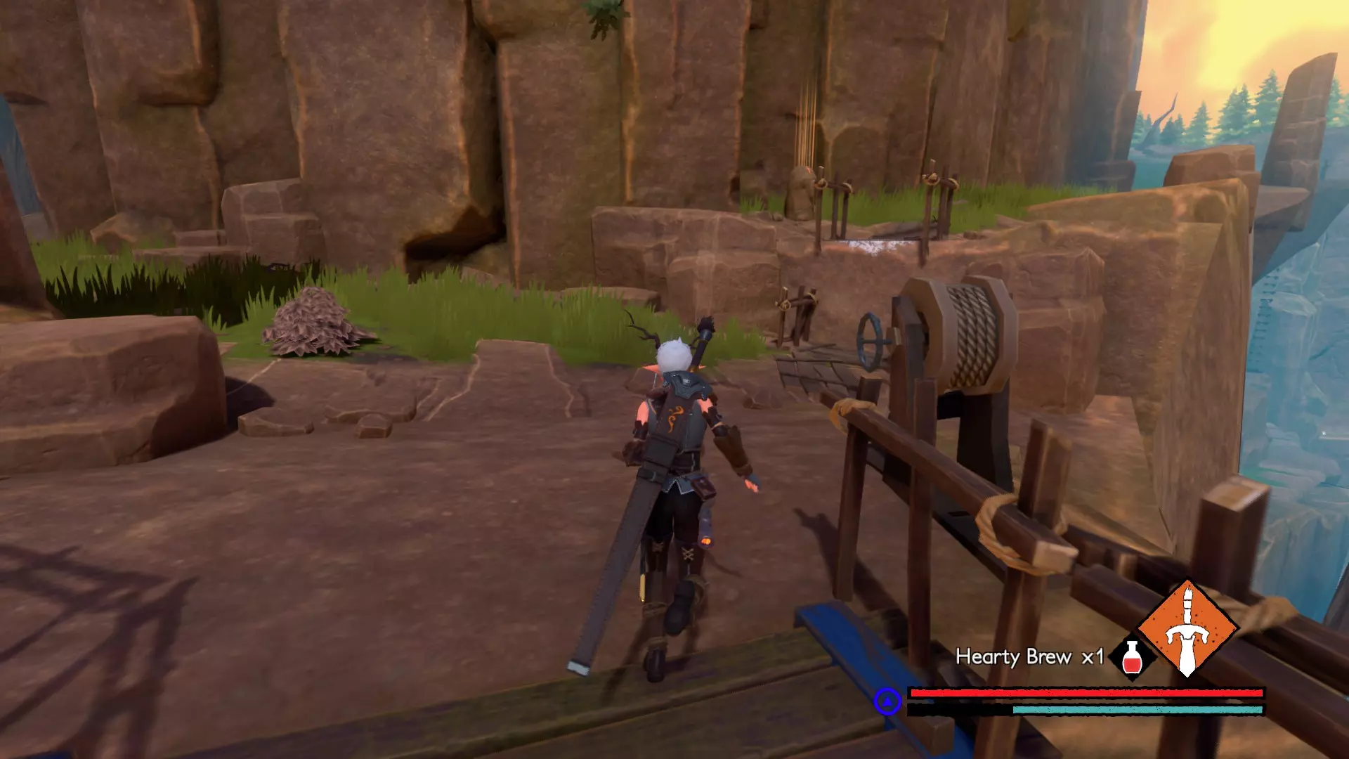 地点#16:确保爬上尖顶,解救风车笼子里的男孩,然后与那个男孩交谈以放下吊桥。石头就在峡谷对面。