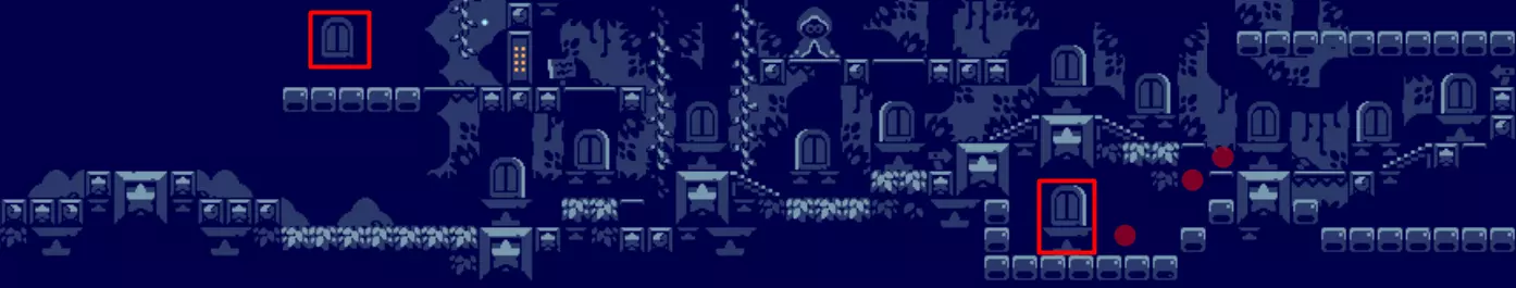 但请慢慢来,还有图书馆。 要进入它们,请前往世界2的尽头,注意那里有一个藤蔓可以悬挂,向下走进入区域1,向上跳再向右跳进入区域2。 区域3