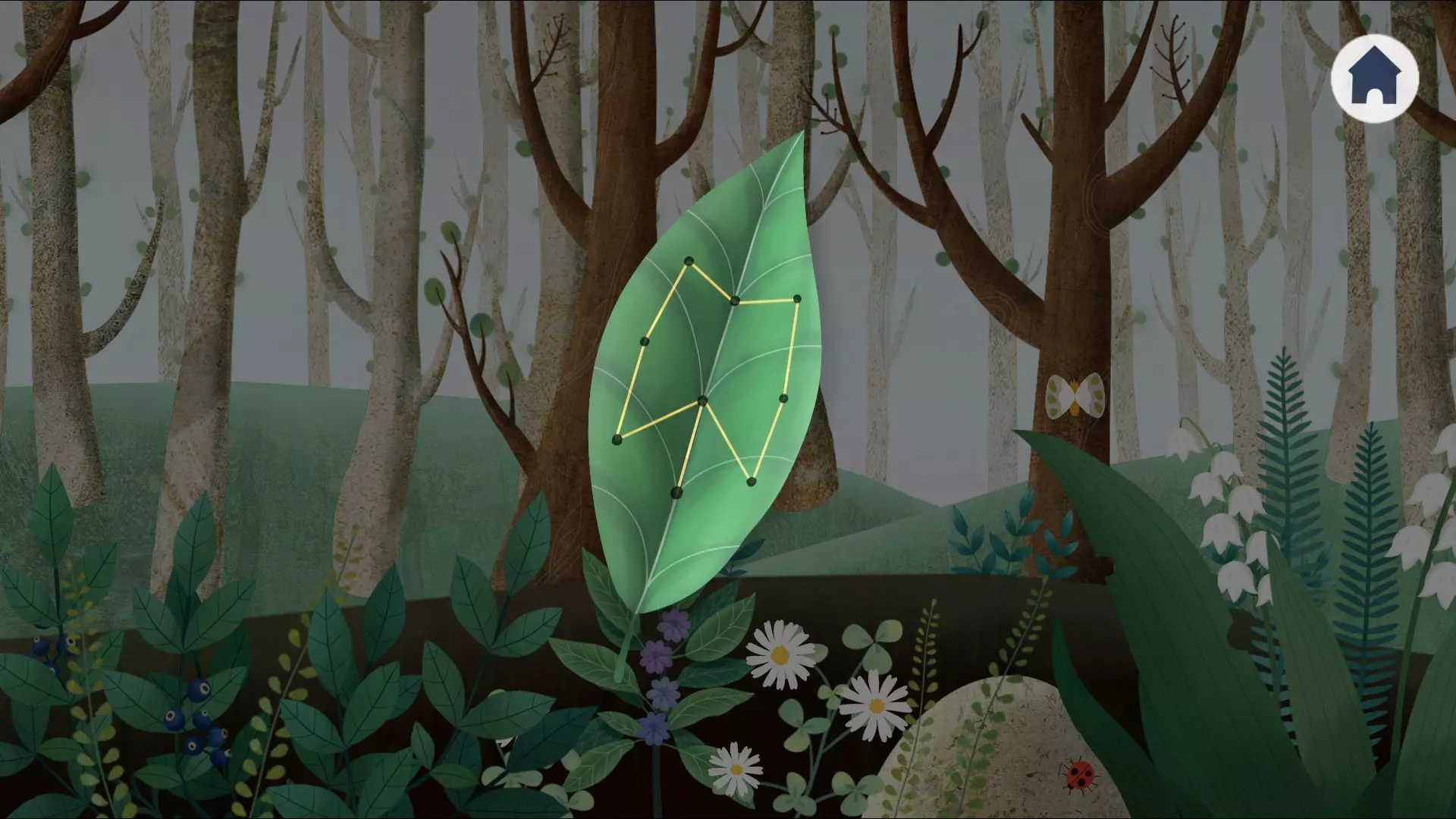来自Доктора Хлопка的这款游戏很有趣,整体难度不算高,但需要一定的专注力和应变能力。操作十分简单,包括拾取物品、打开背包、按住物品并使用。 故事的开端是一场悲剧。 游戏开头有一小段序章,一名男子从干草堆旁走过,没有注意到身后跟着一只狼。 之后你会出现在房子附近的森林里,接着会进行简单的操作教学。向右走,会看到一条蛇正试图偷鸟巢里的蛋。 一只鸟飞过来感谢你,同时提醒你阴影中潜藏着危险,所以应该回父亲那里去。 进入另一个区域的位置由闪烁的点标记。可以进入房子里查看,但目前里面没什么可做的。于是向右走向父亲。他已经快忙完工作了,让你去打桶水,然后他们就去吃晚饭。 走进房子,从蓝色柜子左边拿起水桶,走出房子后向左走,把水桶挂在井边的绳子上,试着打水。但这时听到声响,音乐也变了,水桶掉进了井里。 向右走,看到父亲躺在血泊中,看起来已经死了。背景中传来一声尖叫,狼逃跑了。点击父亲,这时飞来了一只我们曾救过蛋的鸟。它说有出路,森林深处有这片森林的主人,只要经历过所有季节,她就能让时间倒流。它还讲述了白鹿走过的小径。 秋季 你看到了另一场悲剧,一只长着鹿角的白色生物死亡了。 从黄色的叶子来看,这正是秋天。我们面前是一片森林,一只鹿正在林间奔跑。先别急着点击它,首先要确定三个后续需要用到的符号。