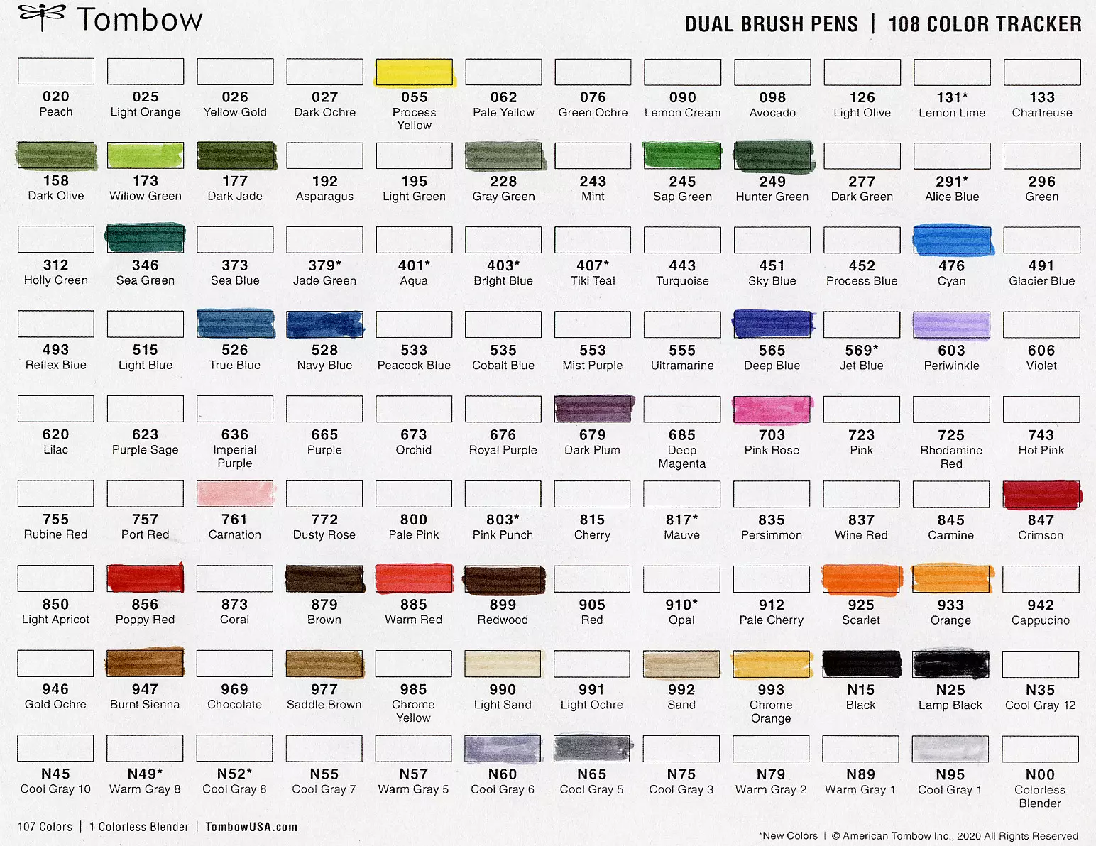 不过需要注意的是,Tombow 随时间改变了 Landscape 套装中包含的颜色。此外,还购买了大约六种额外的散装画笔,以补充这些套装。这些毛笔的使用寿命惊人。我已经用它们绘制了 2400 个精灵,而最初的套装在 5 年多后仍然状况良好。