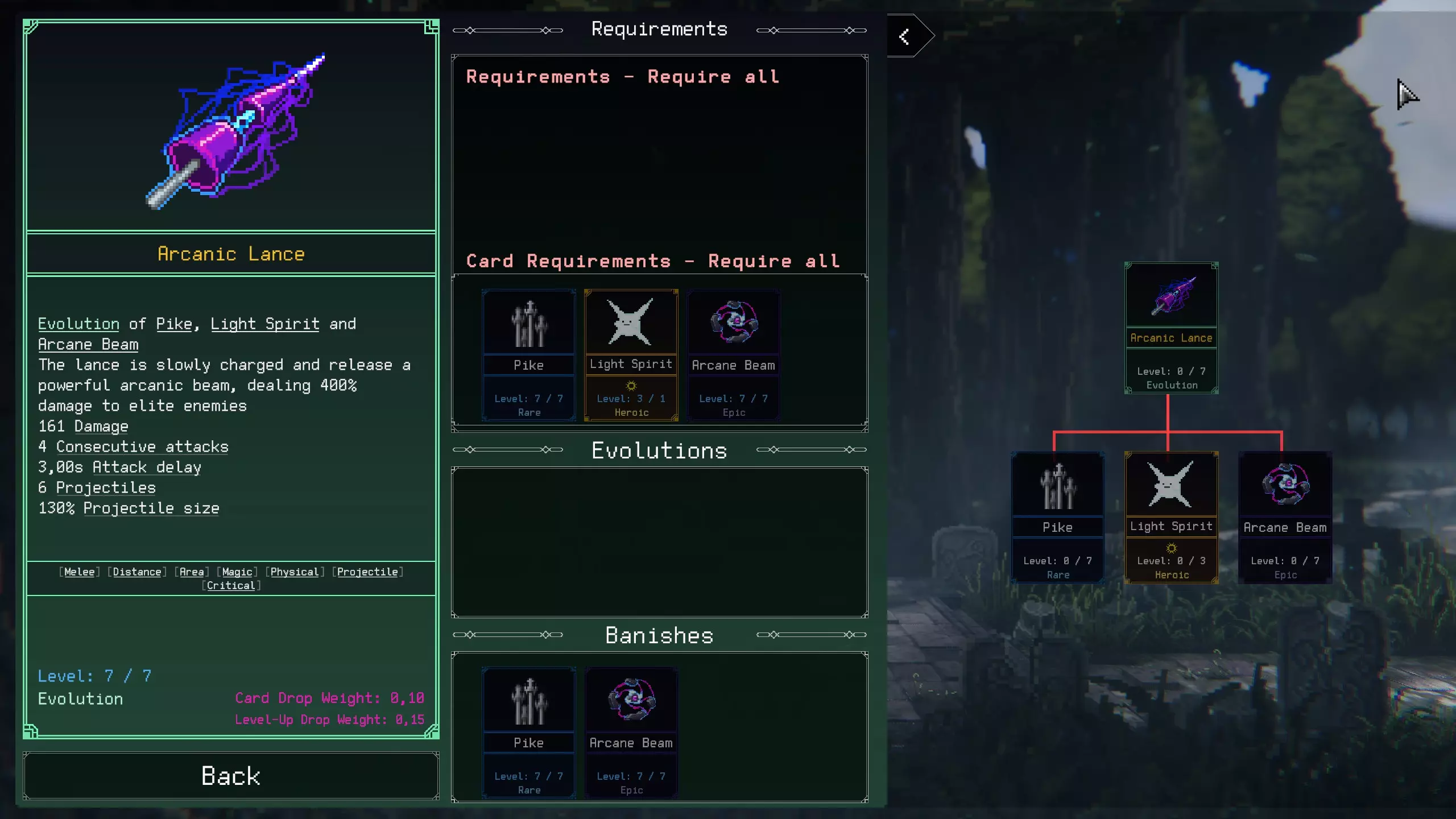 (当前内容可能略有过时。我并未核对所有内容至最新版本,但大部分信息应是准确的) 以下是武器进化所需的武器材料速查列表。 制作此表的主要目的是方便你在游戏中快速查看各武器进化所需的材料。 当然,要解锁这些进化,你需要先将武器提升至8级。 天使棱镜
